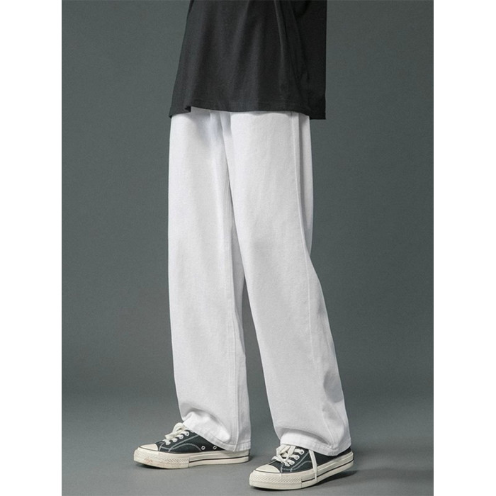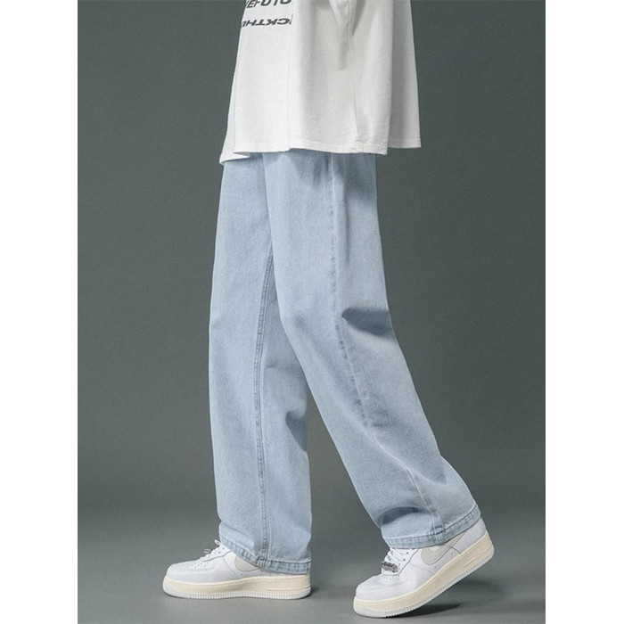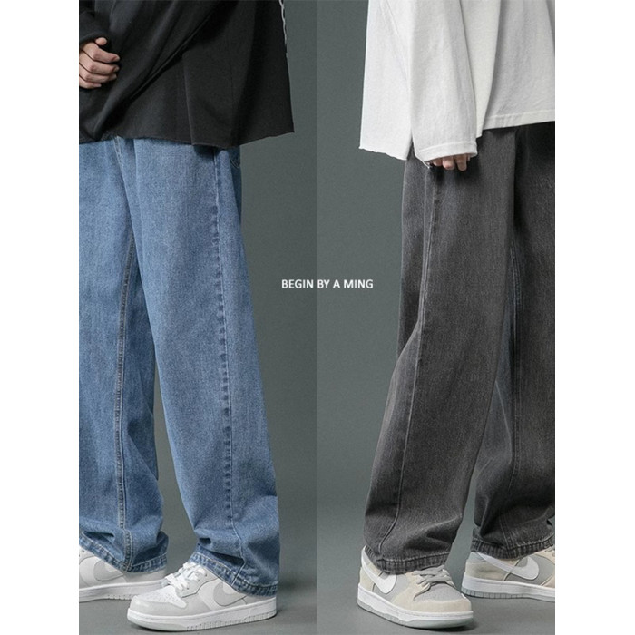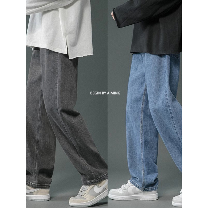 美式復古牛仔褲子男新款港風ins純色潮牌寬松濶腿基礎百搭直筒褲