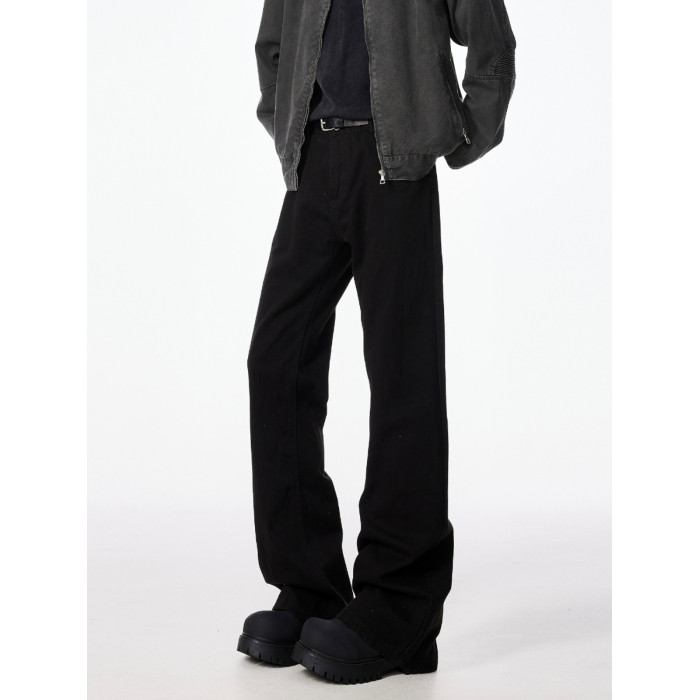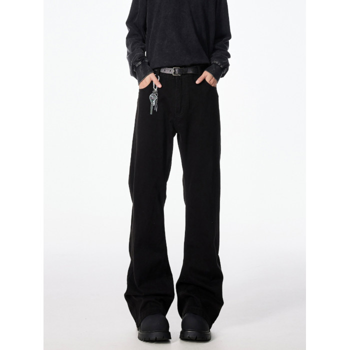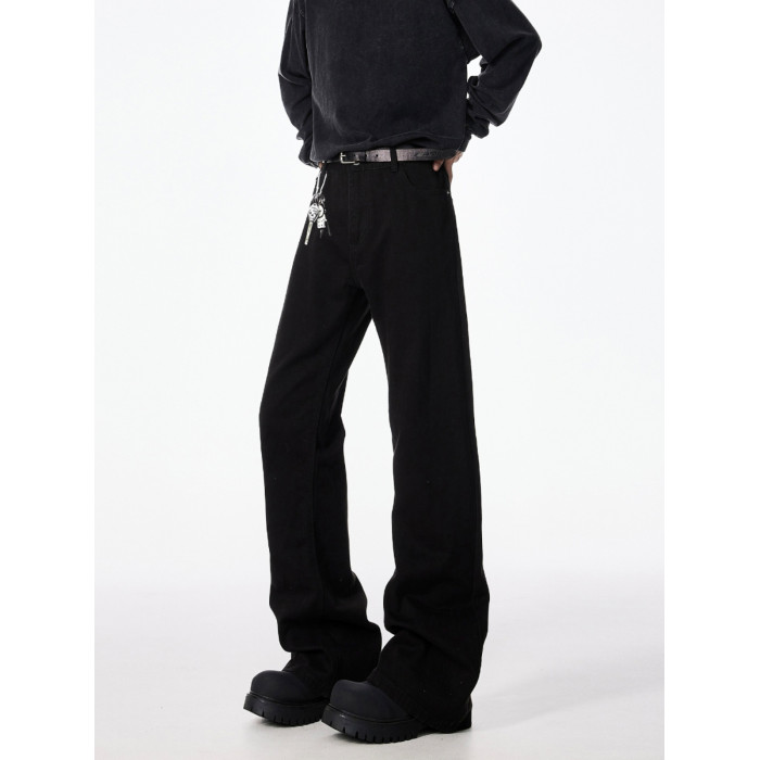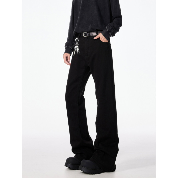 cleanfit秋冬黑色彎刀微喇加絨加厚牛仔褲男vibe美式修身顯瘦褲子