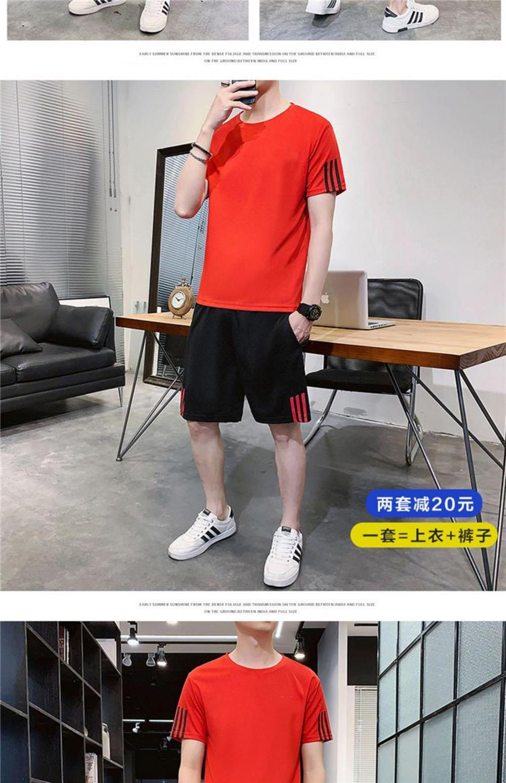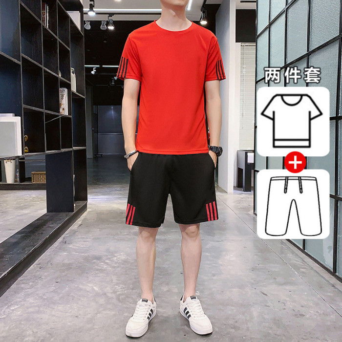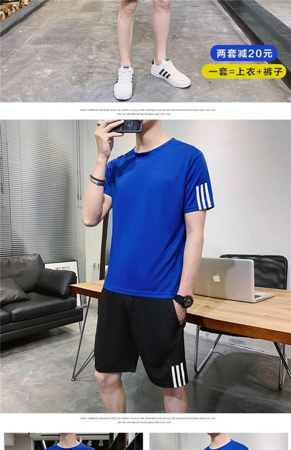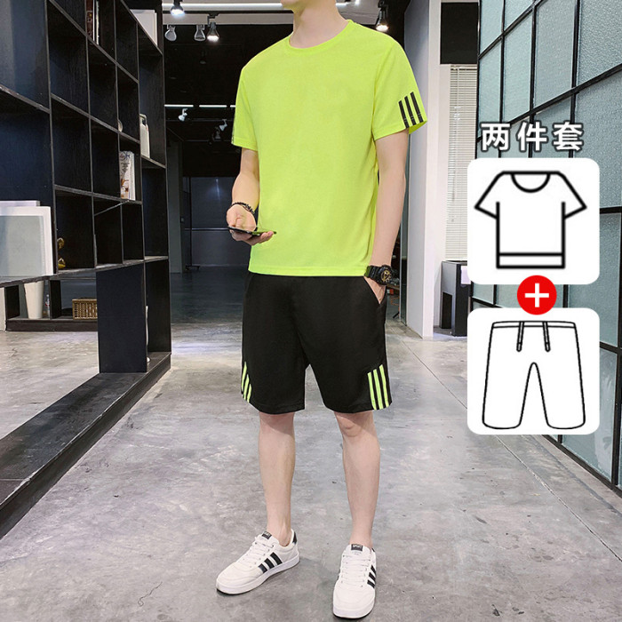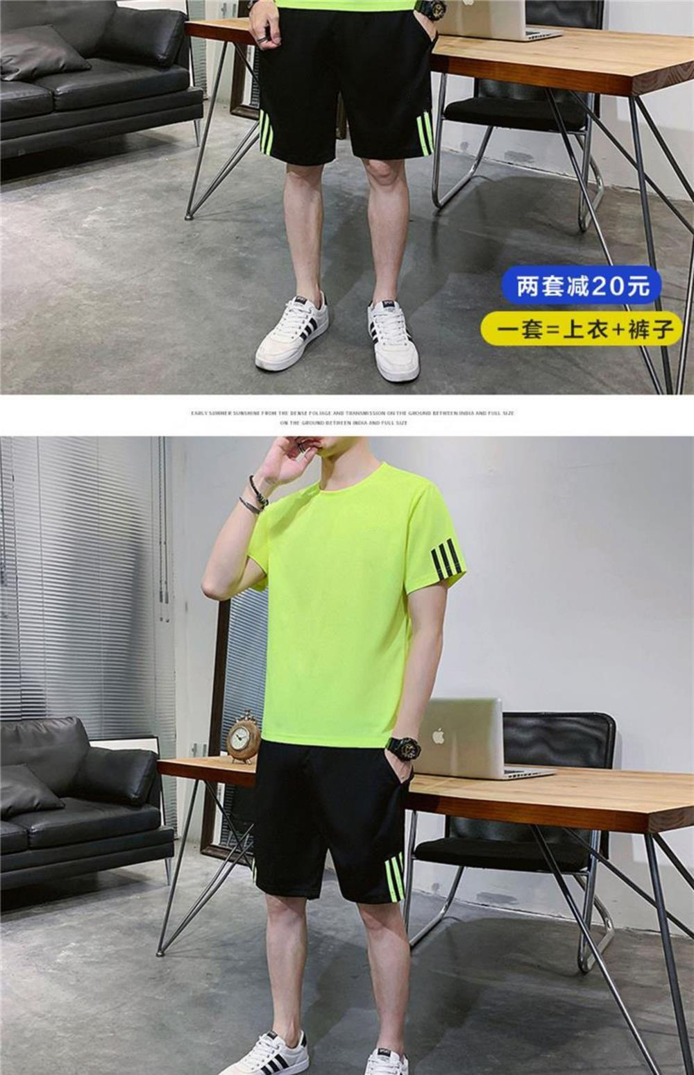 稻草人運動套裝男士休閒夏季冰絲速乾短袖短褲跑步運動服套裝男