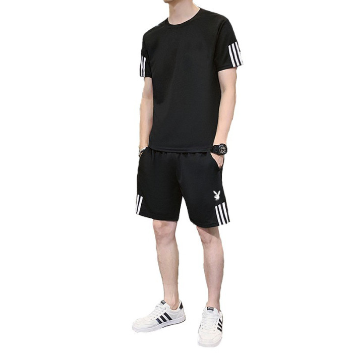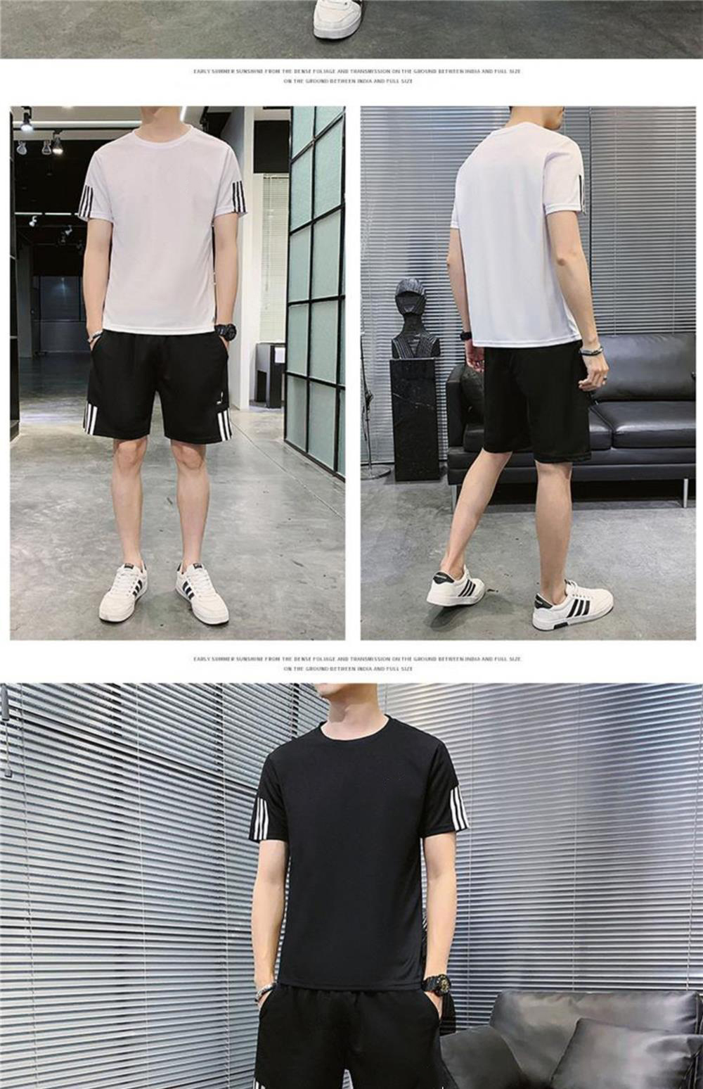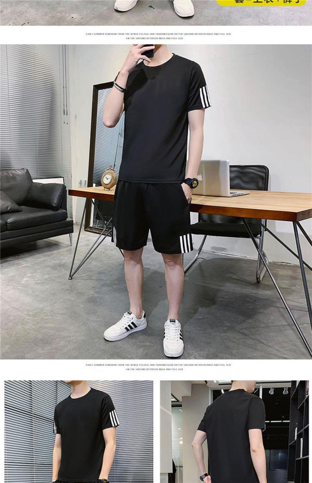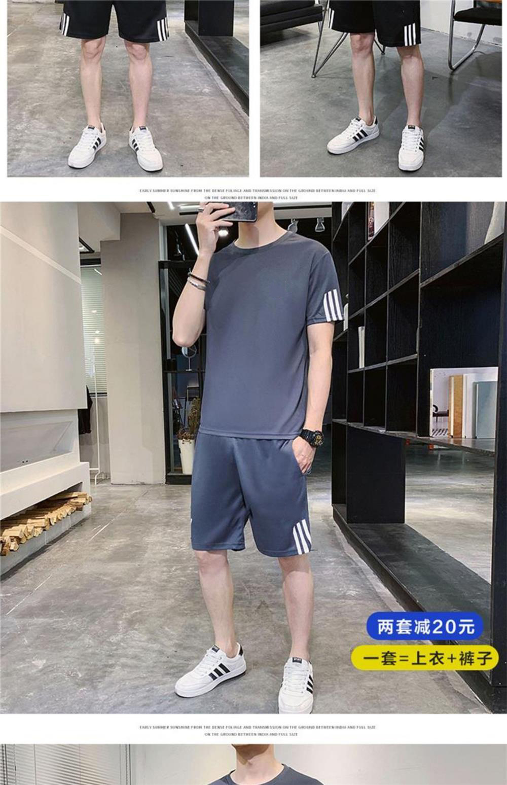 稻草人運動套裝男士休閒夏季冰絲速乾短袖短褲跑步運動服套裝男