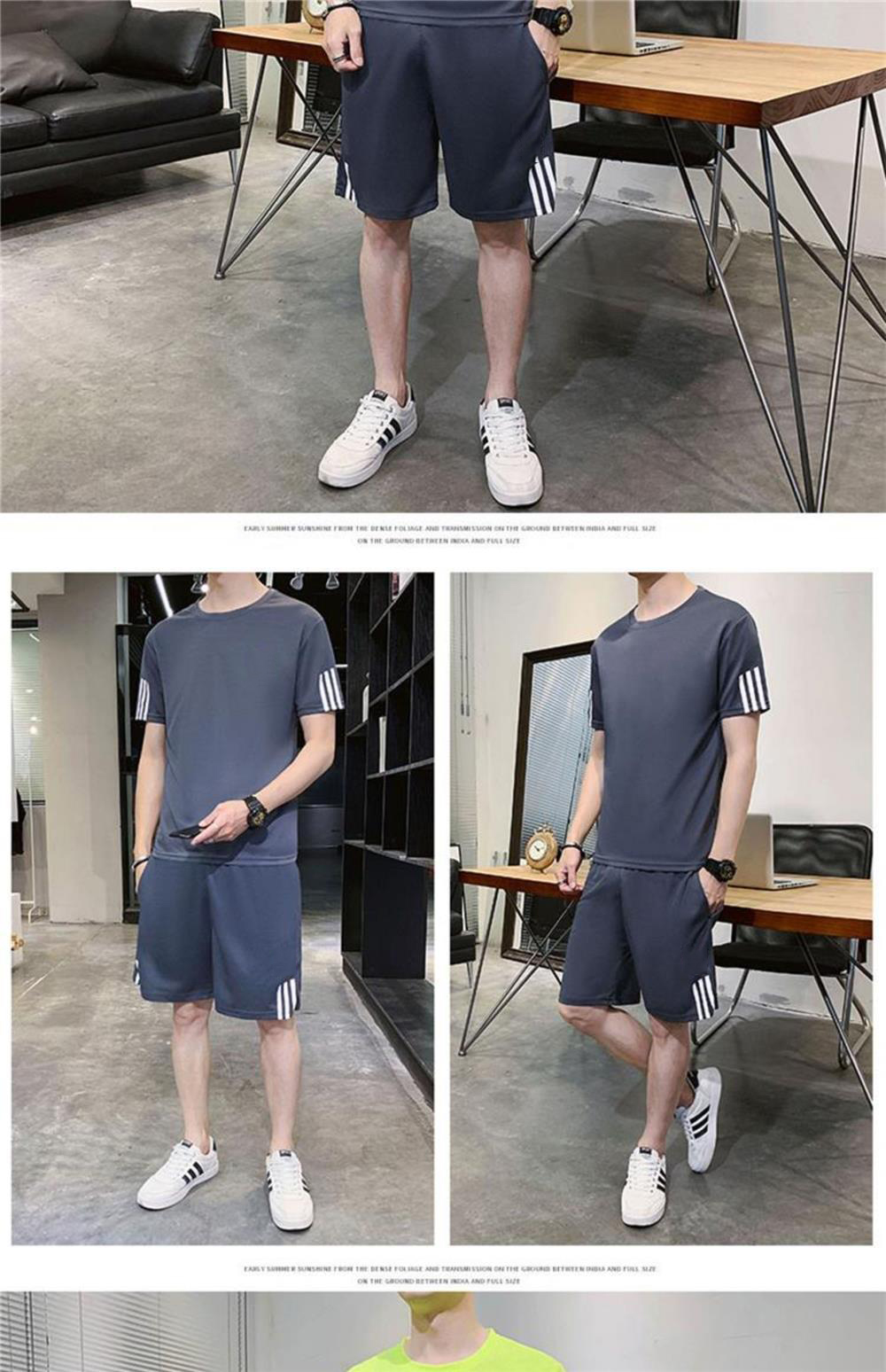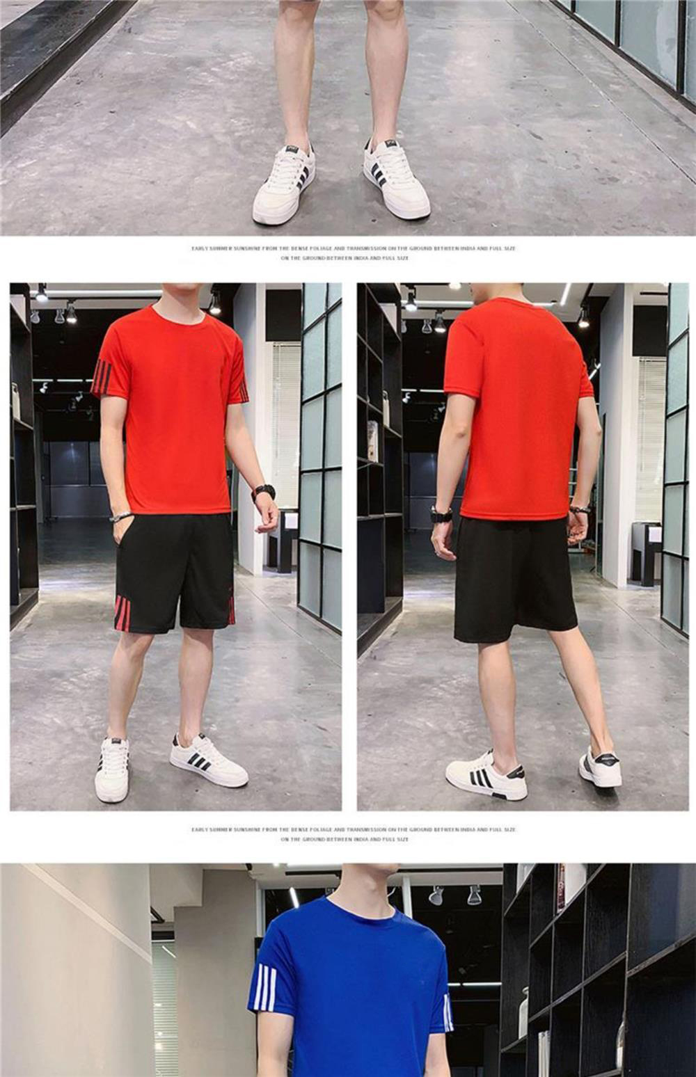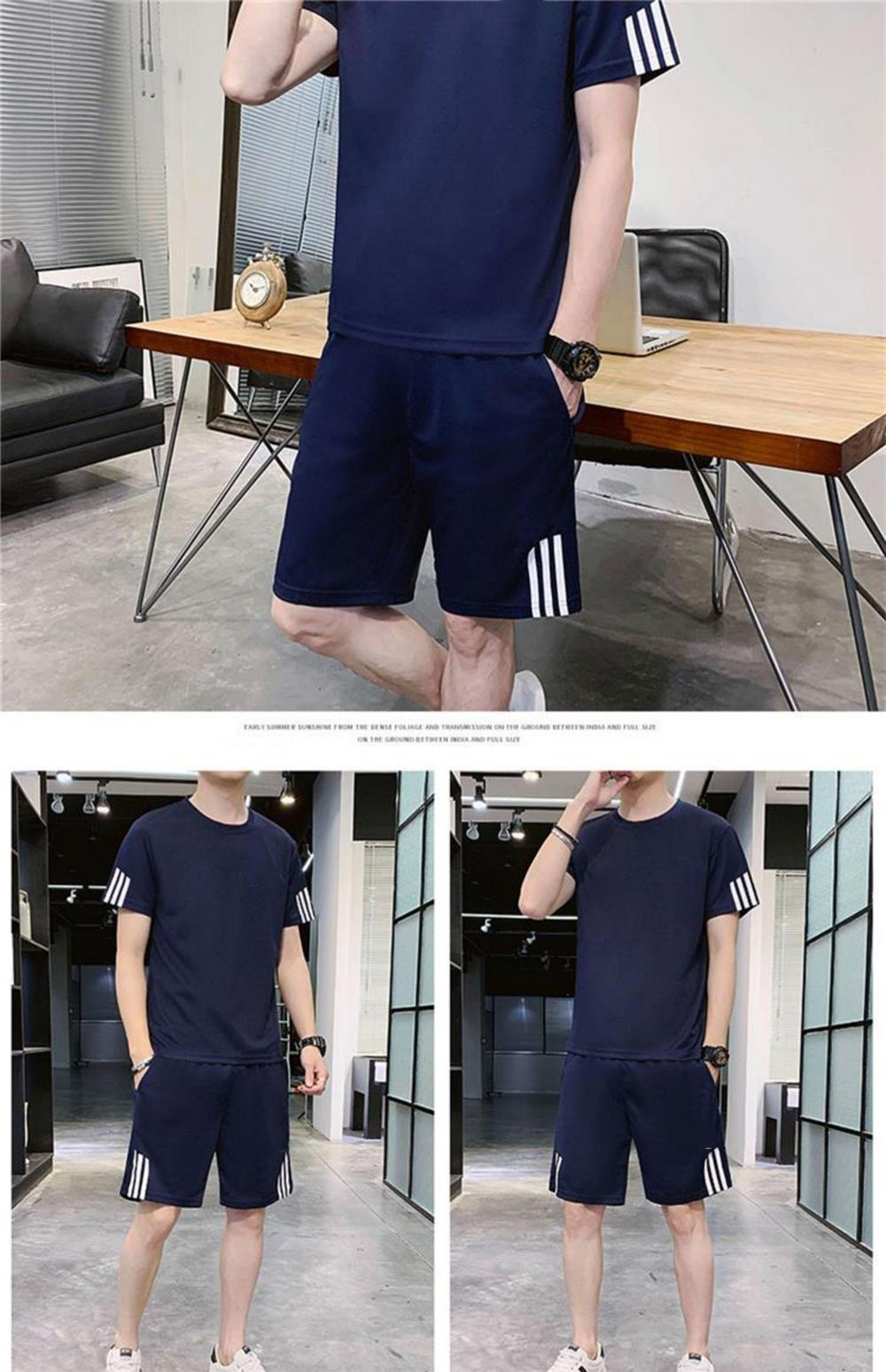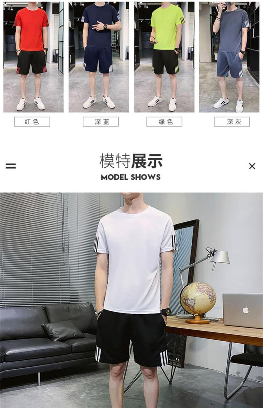 稻草人運動套裝男士休閒夏季冰絲速乾短袖短褲跑步運動服套裝男