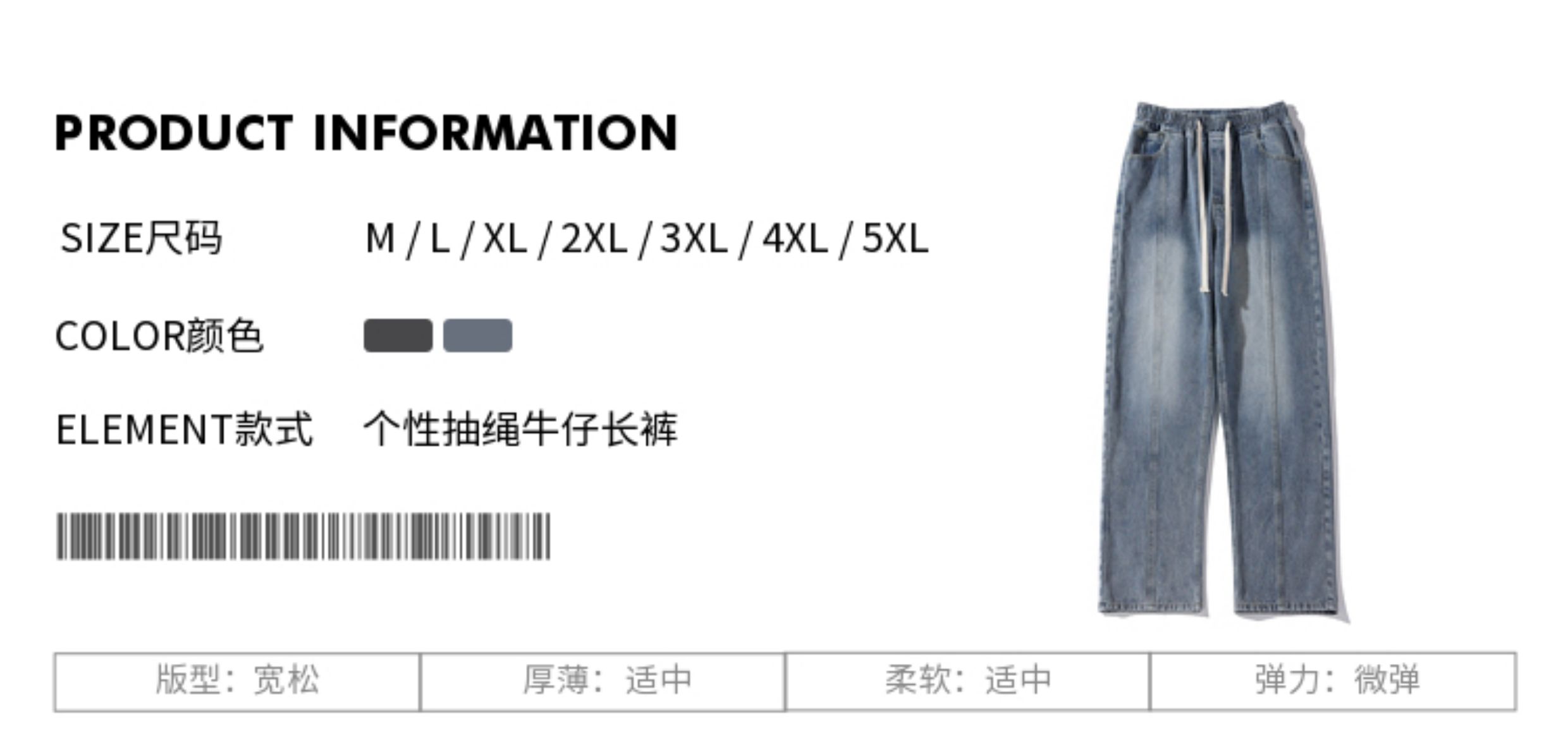 | 面料 | 牛仔布 |