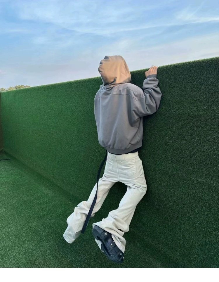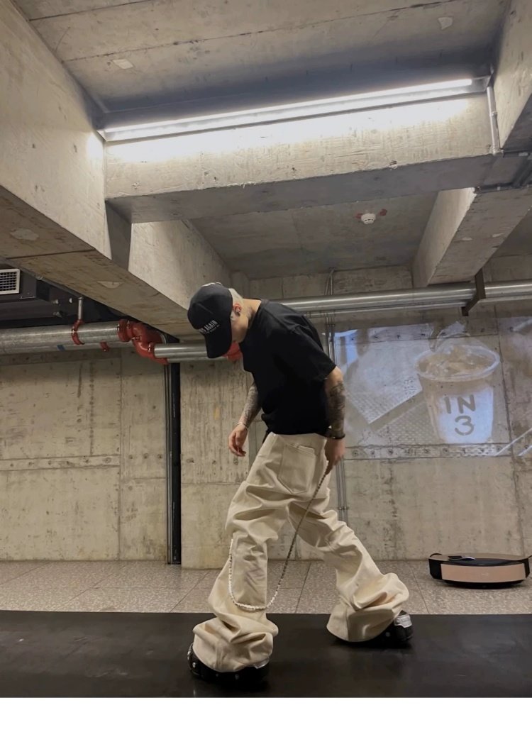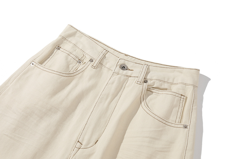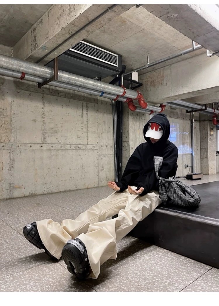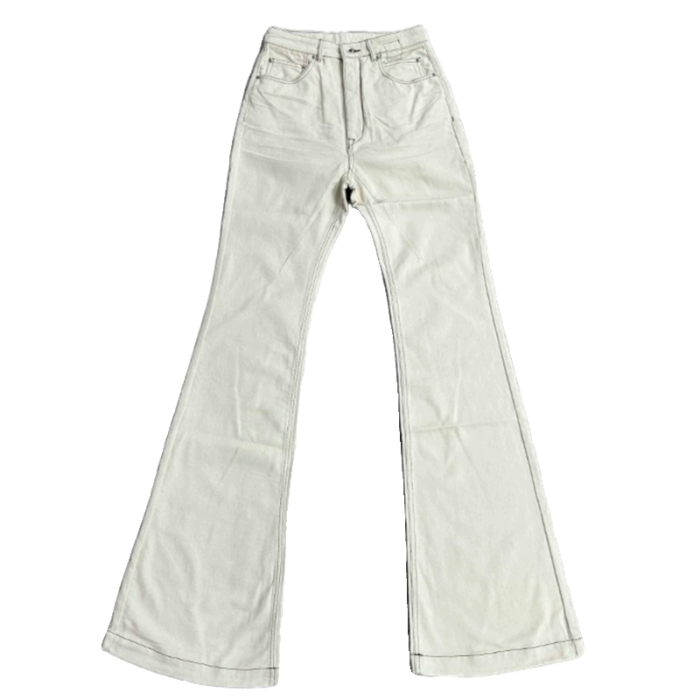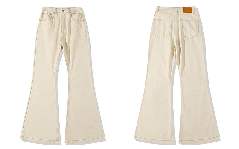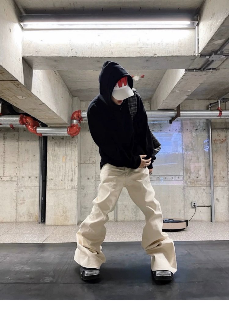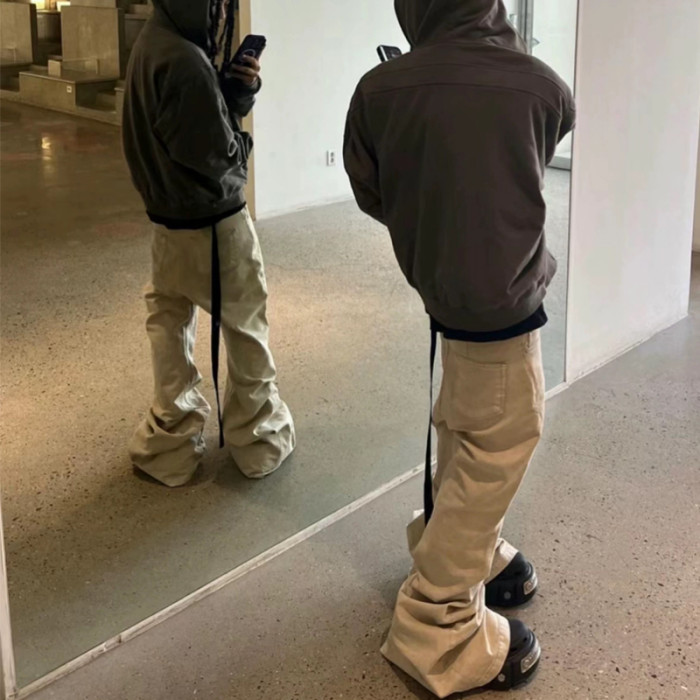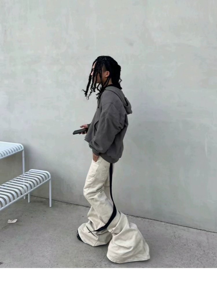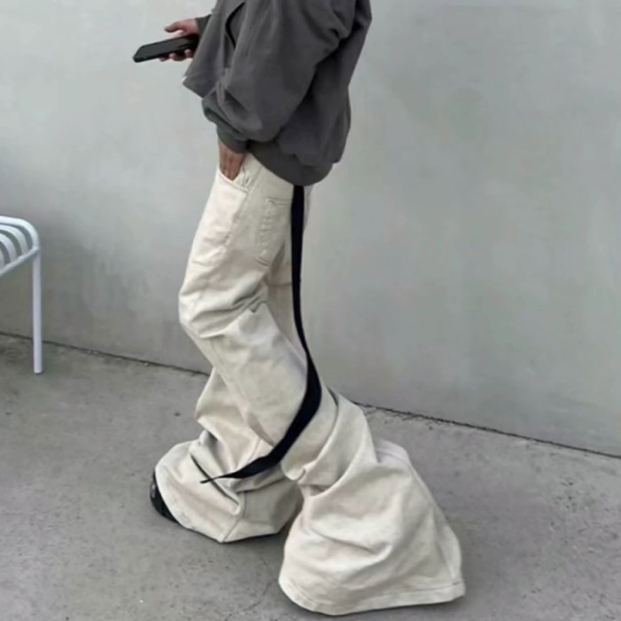 RO風小衆暗黑高彈力拖地米白色磨毛喇叭牛仔褲男潮牌顯瘦濶腿褲子