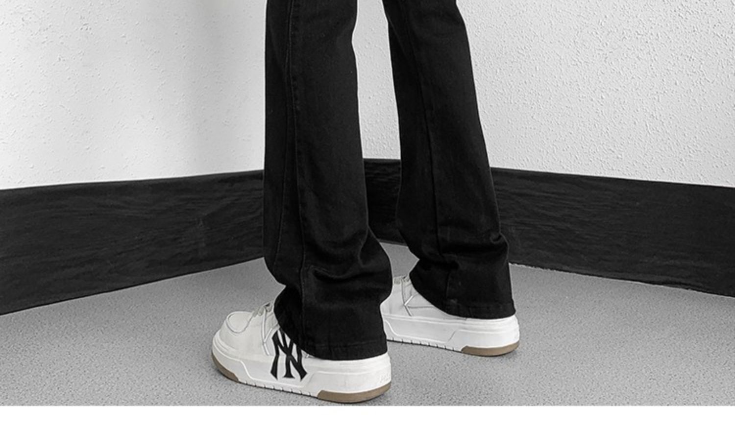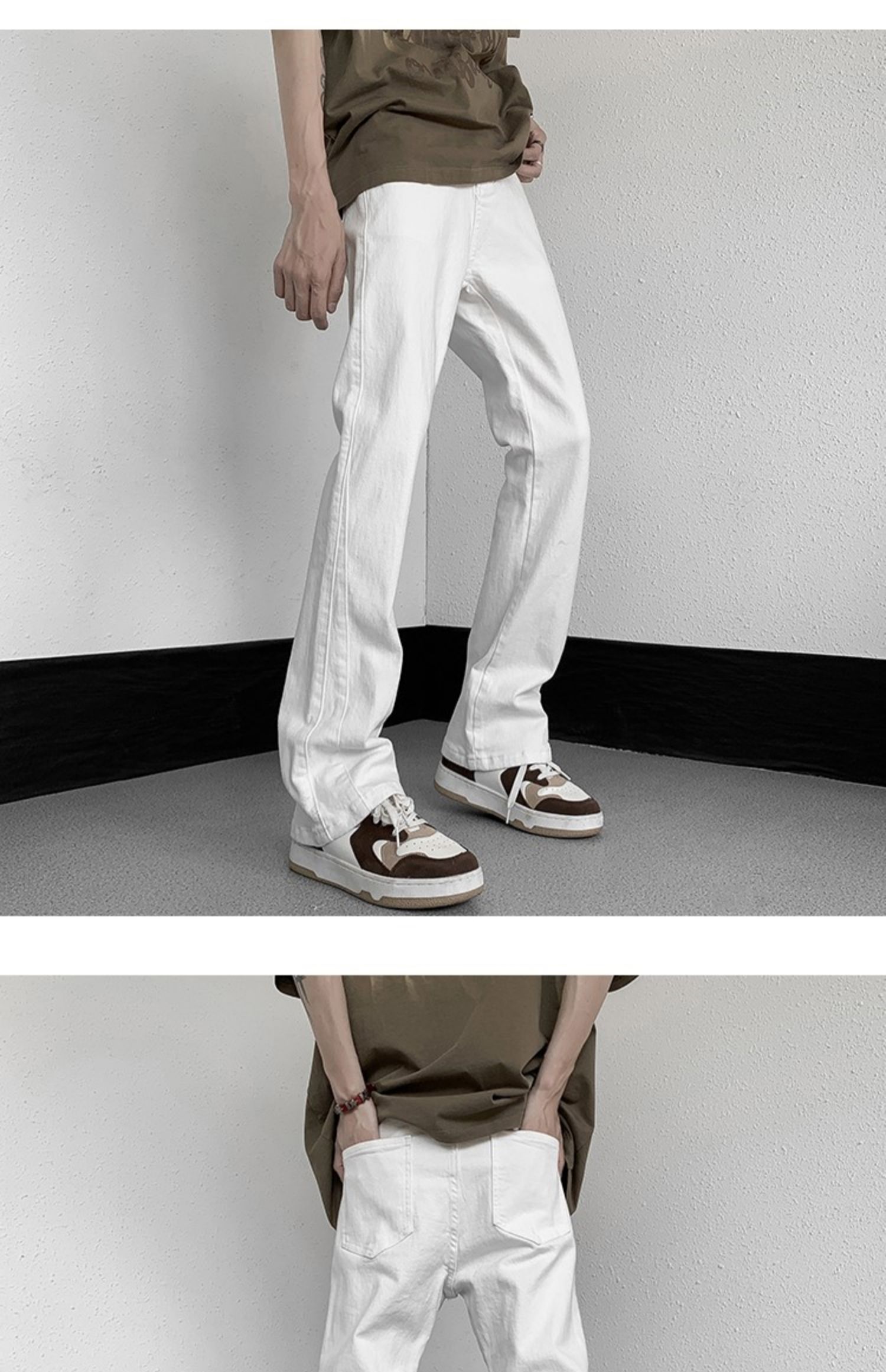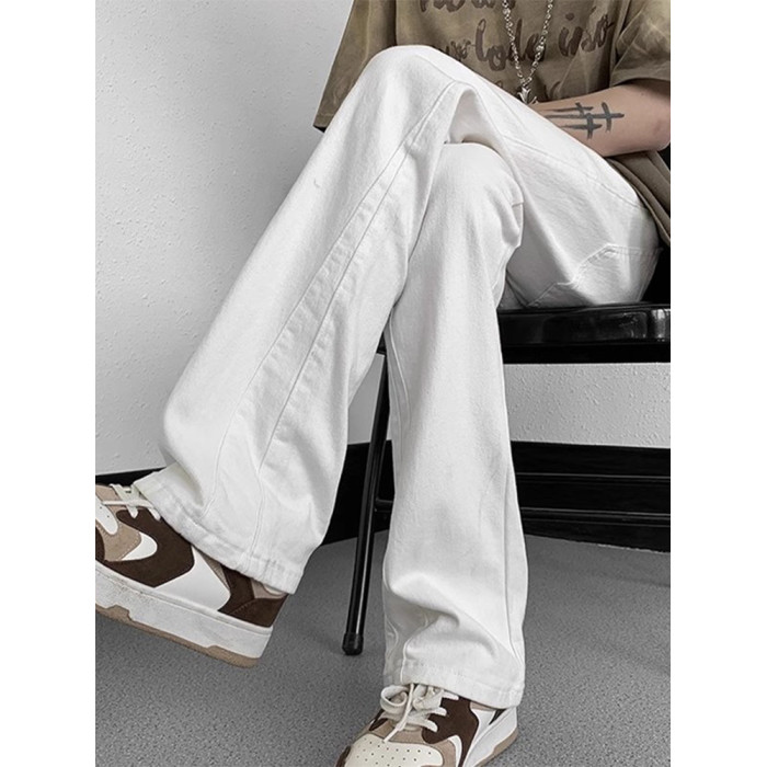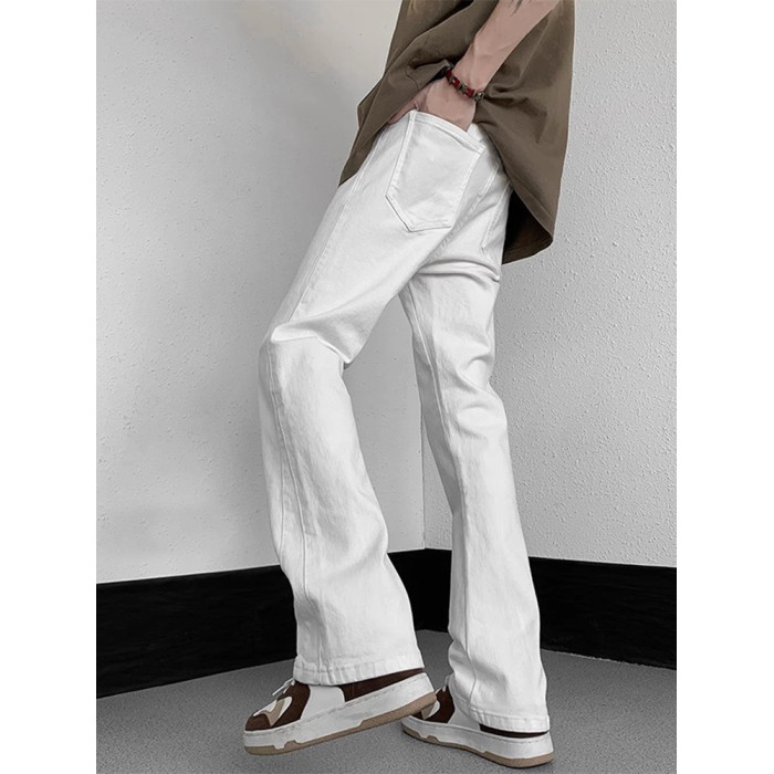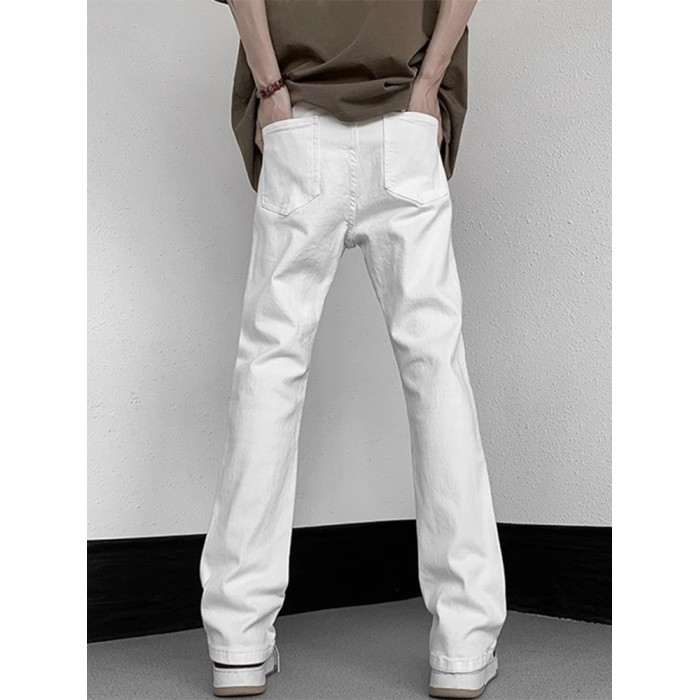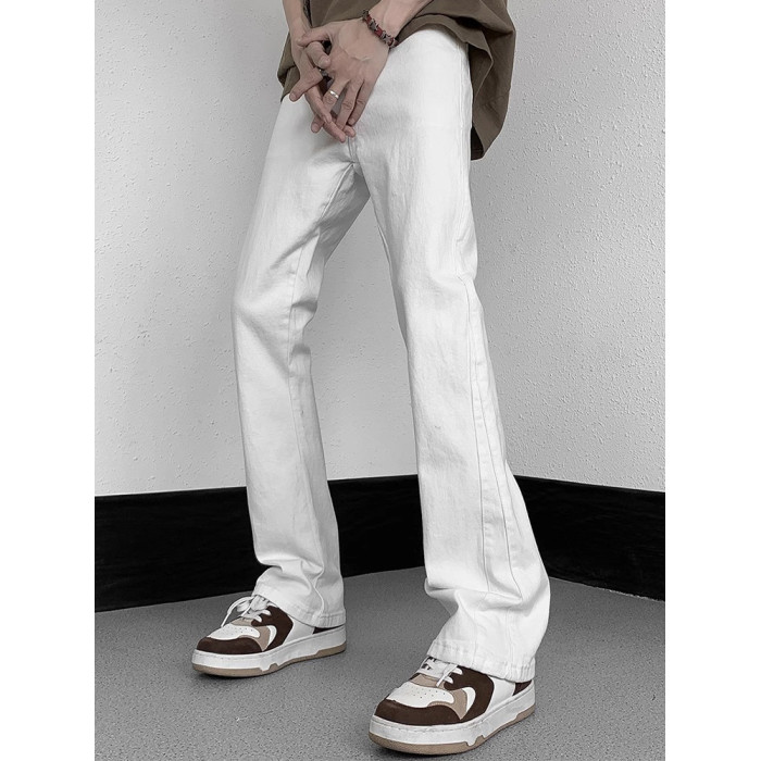 白色微喇牛仔褲男美式潮牌高街cIeanfit純色百搭修身直筒休閒長褲