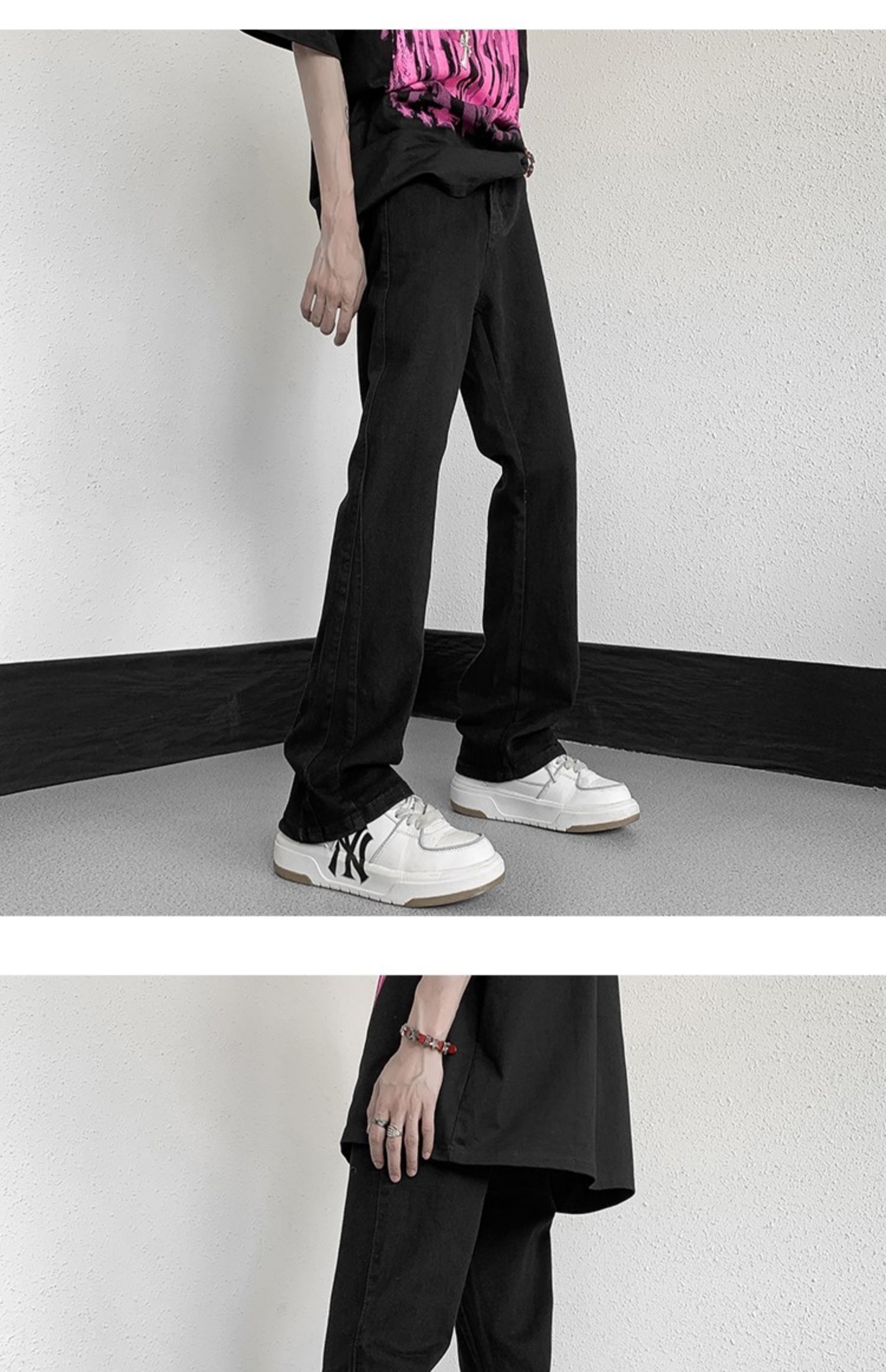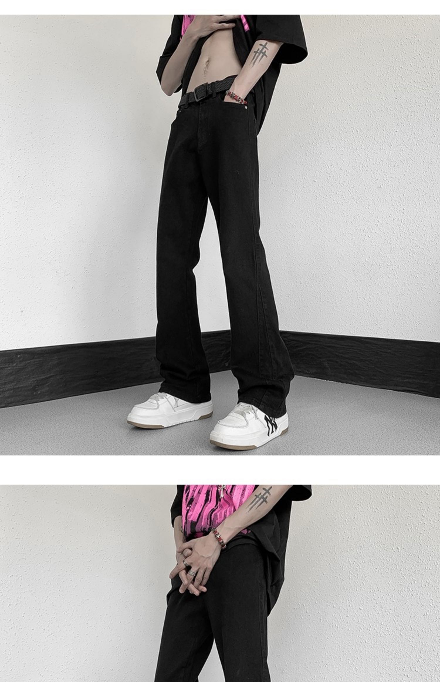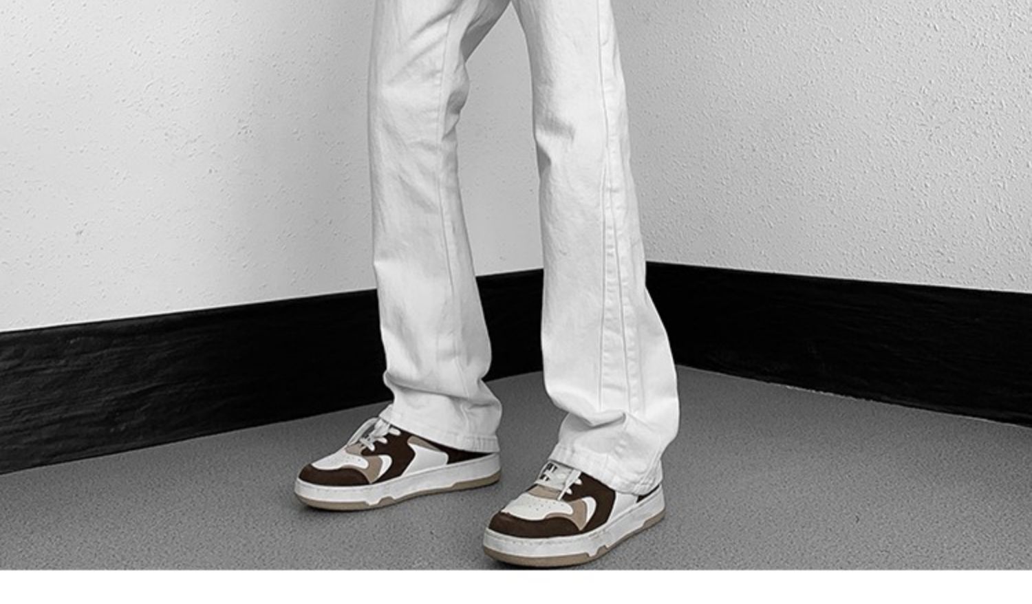 白色微喇牛仔褲男美式潮牌高街cIeanfit純色百搭修身直筒休閒長褲
