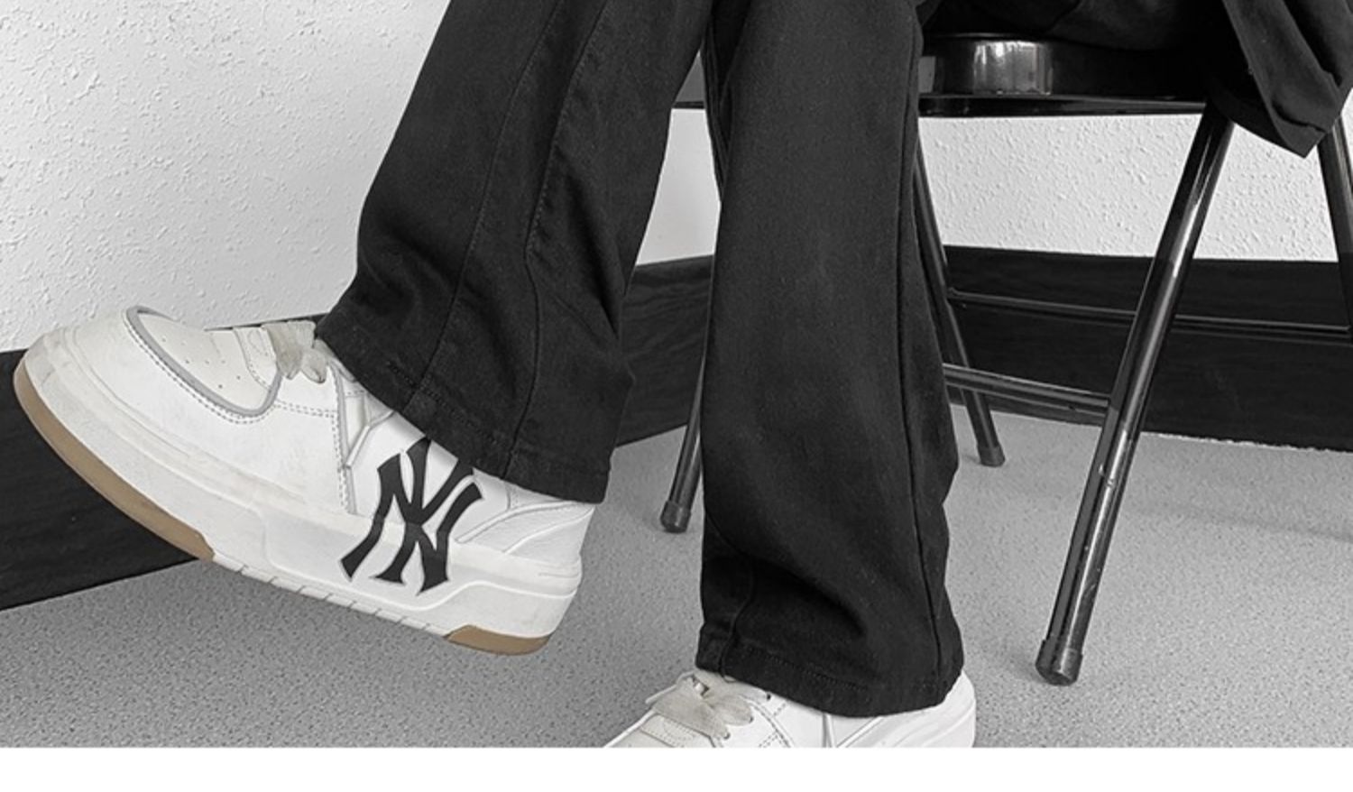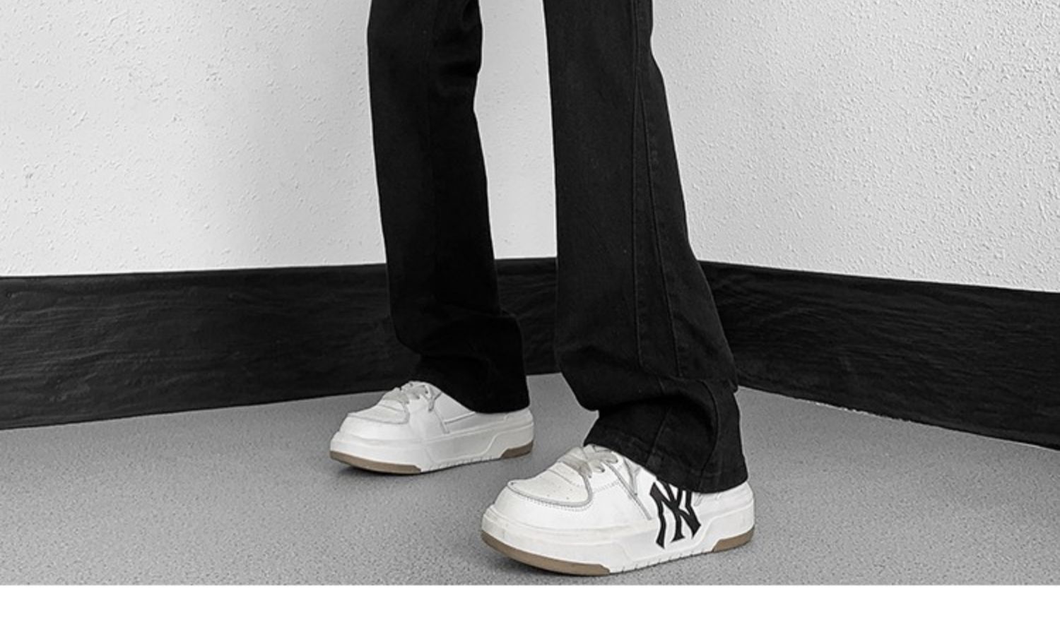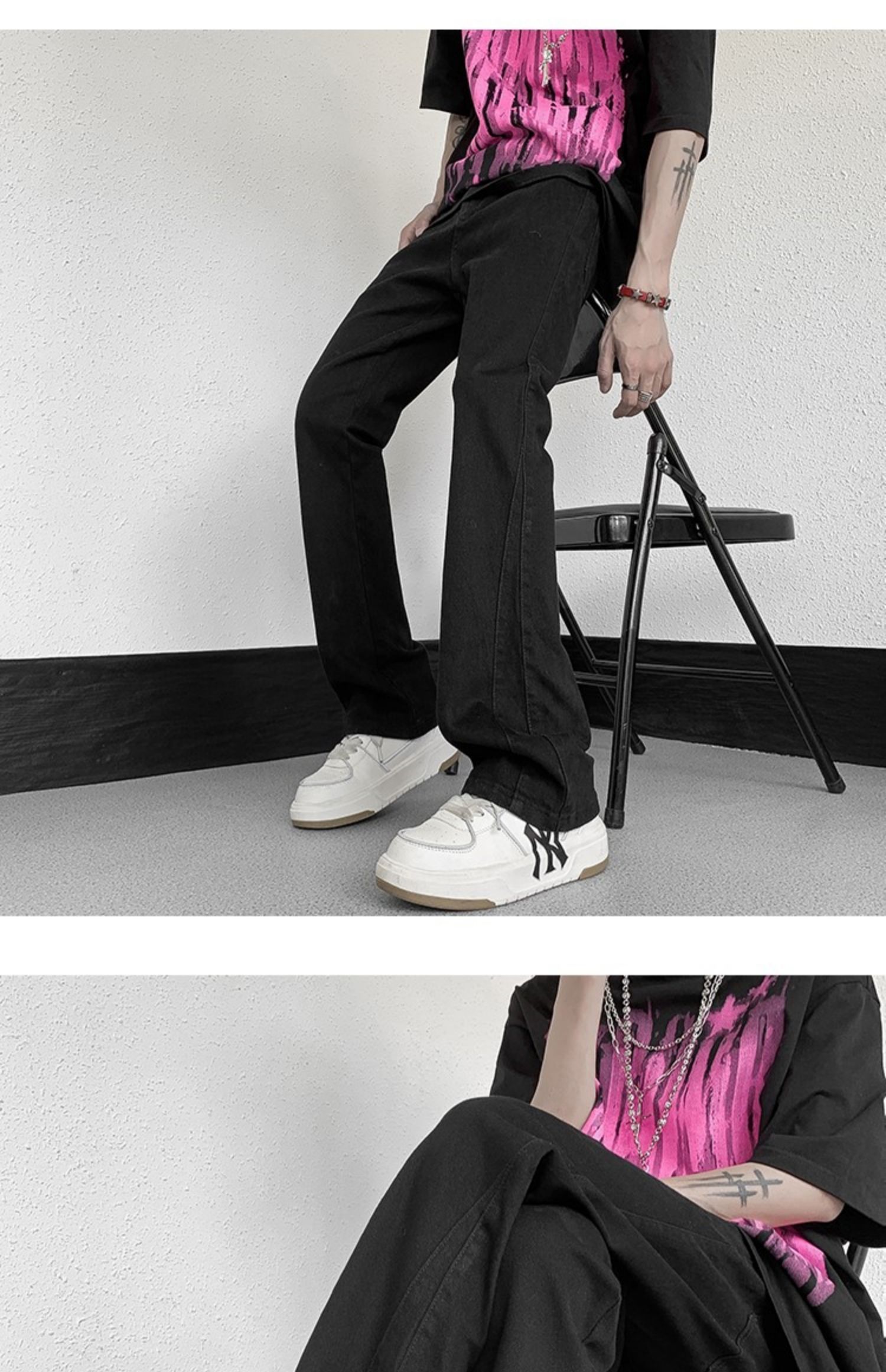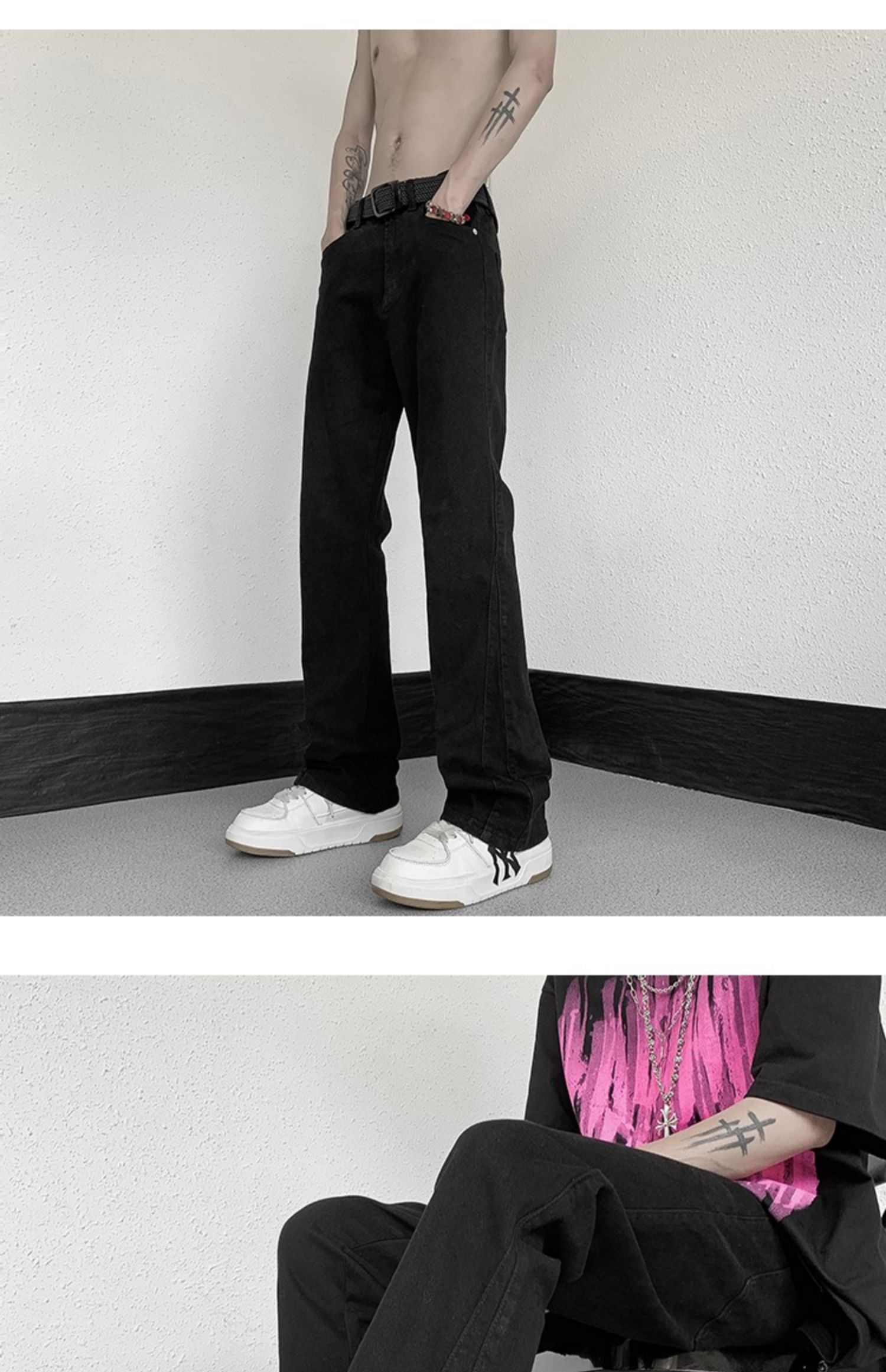 白色微喇牛仔褲男美式潮牌高街cIeanfit純色百搭修身直筒休閒長褲