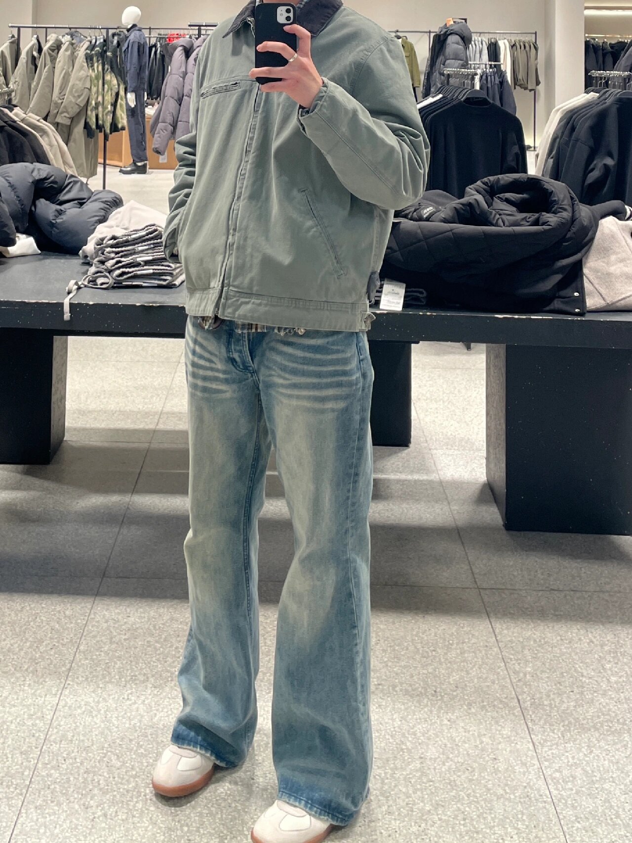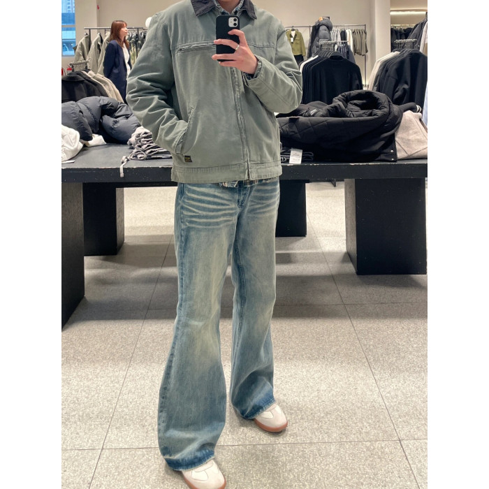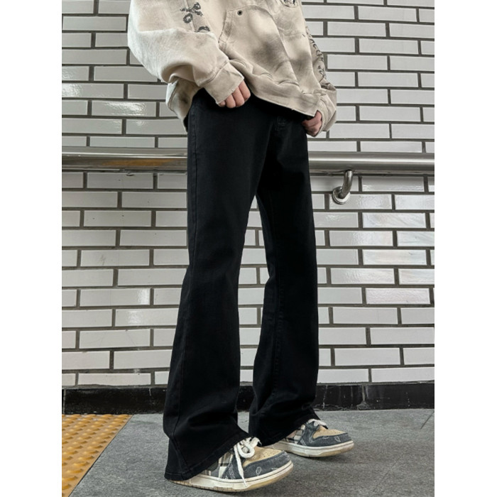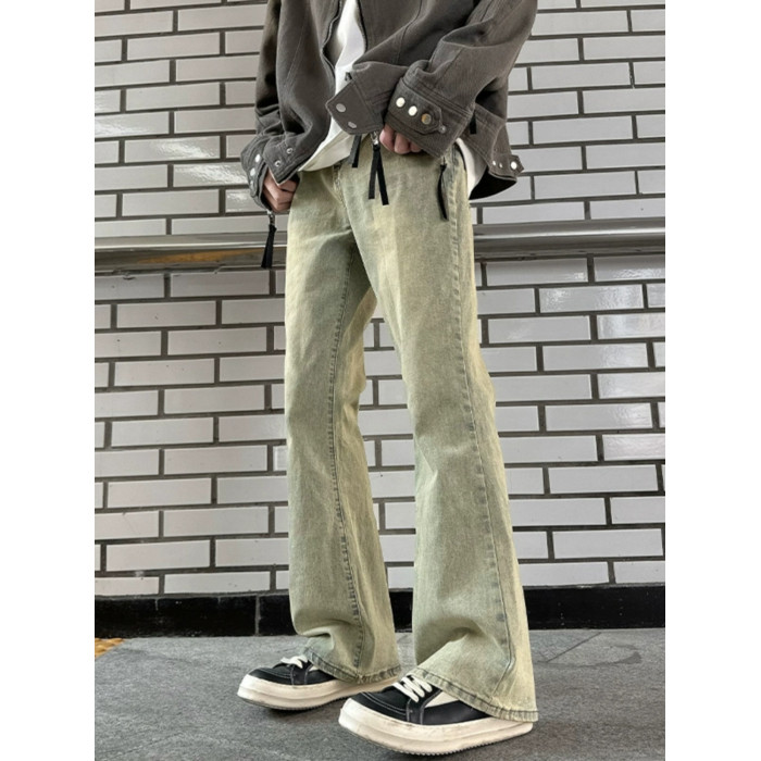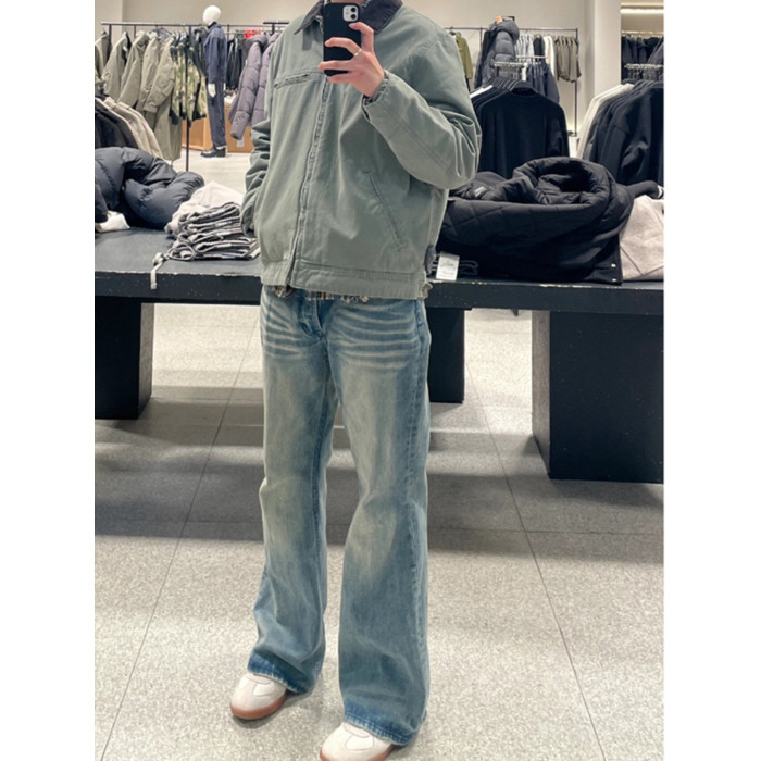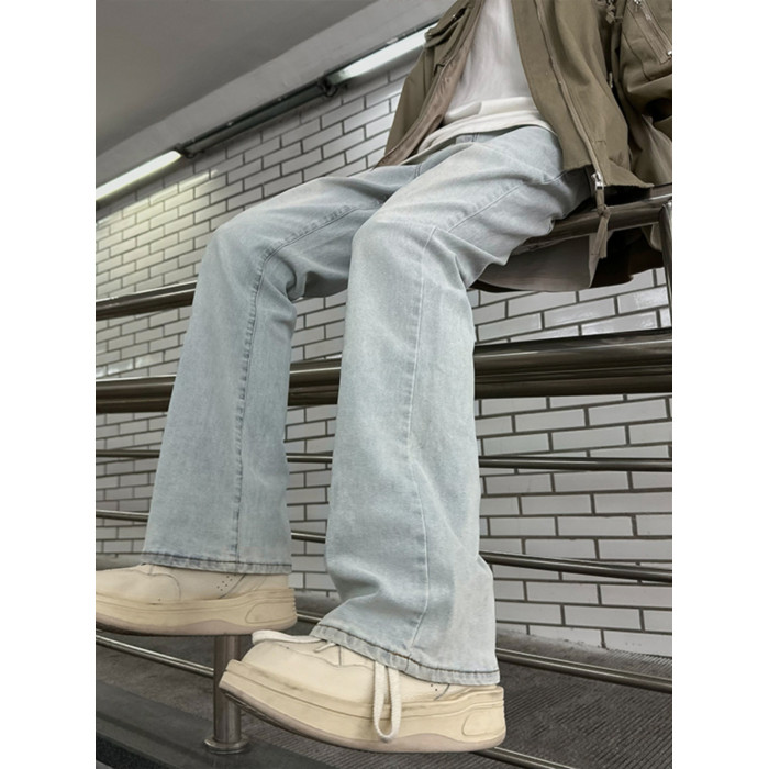 男生穿搭秋季褲子cleanfit美式高街藍色牛仔褲男式微喇直筒褲潮