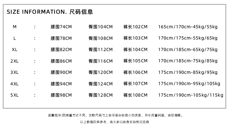 | 褲長 | 長褲 |