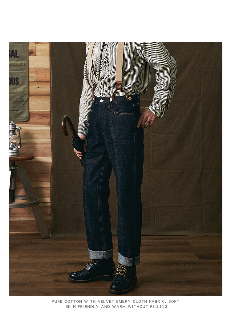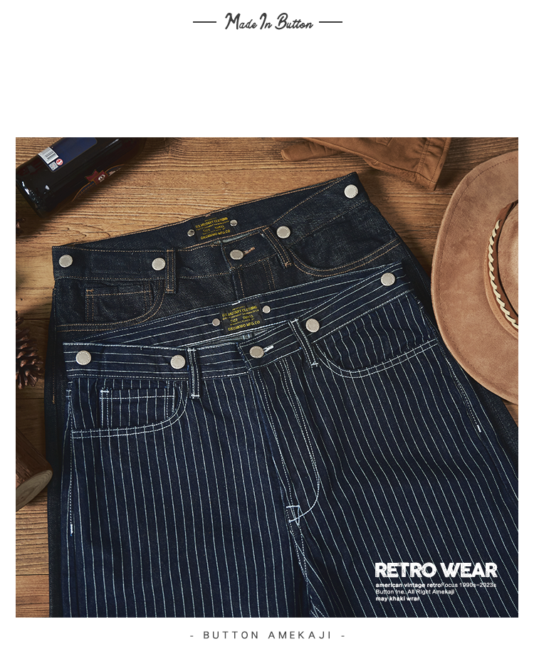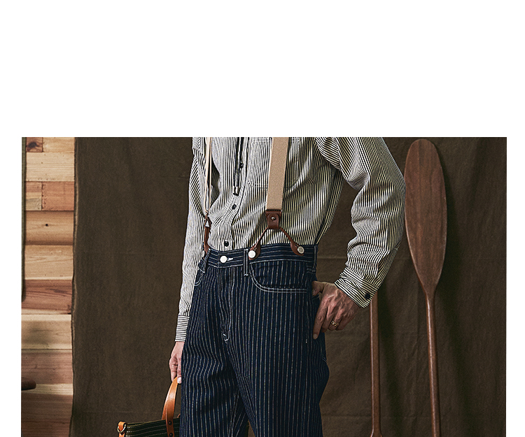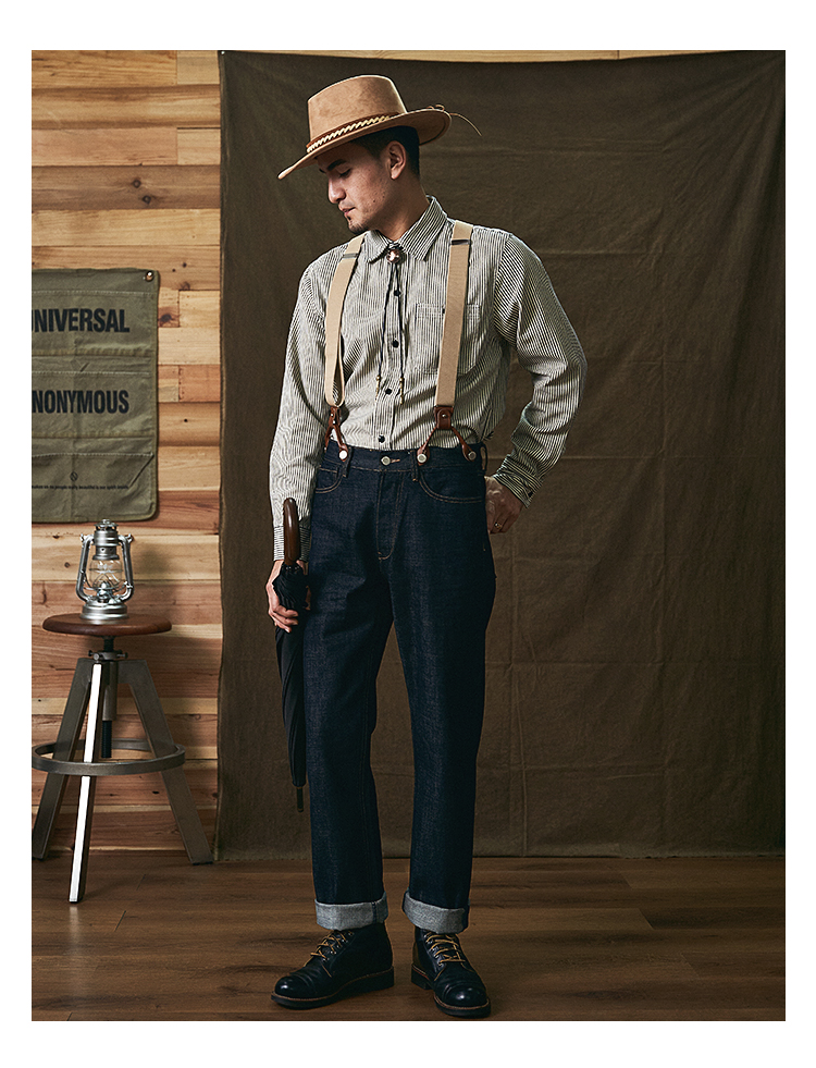 美式復古重磅條紋牛仔背帶褲阿美哢嘰吊帶日系寬松直筒工裝長褲男
