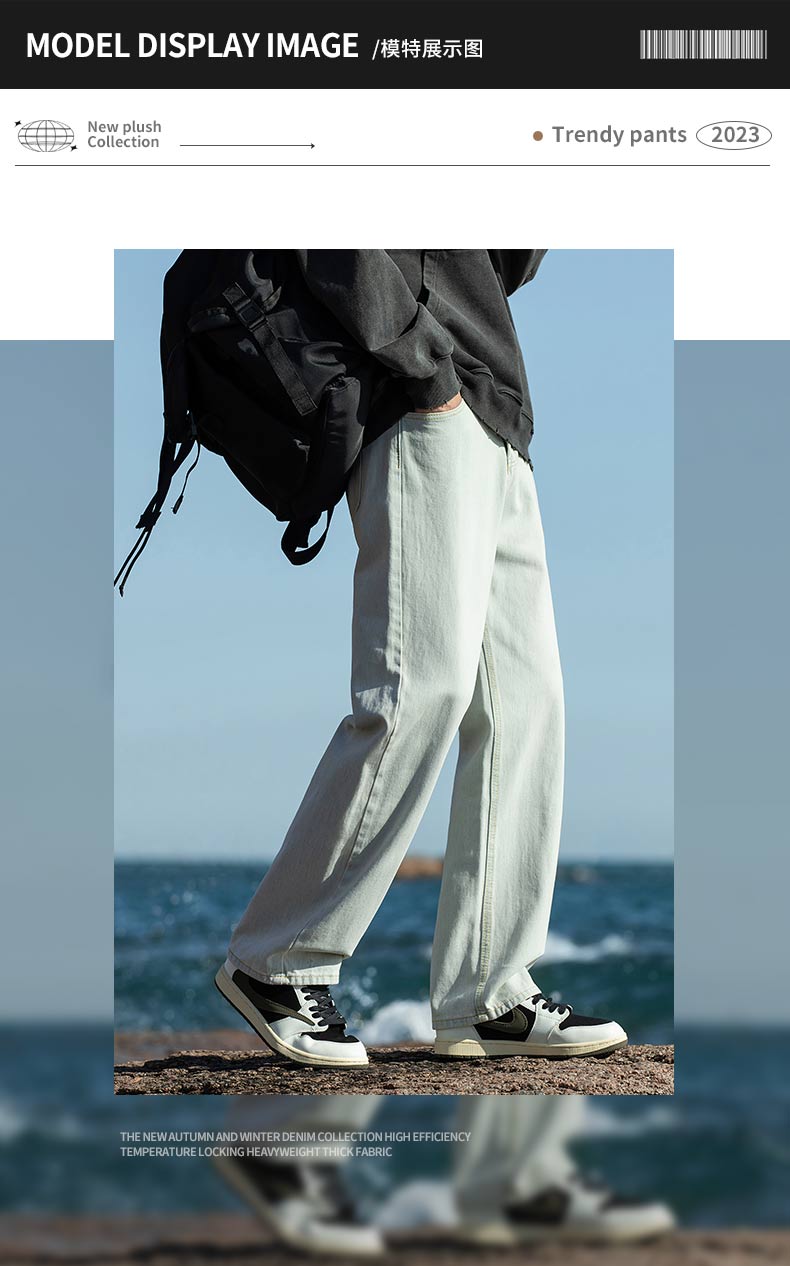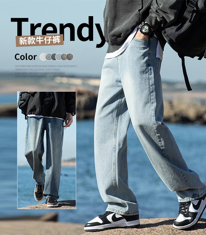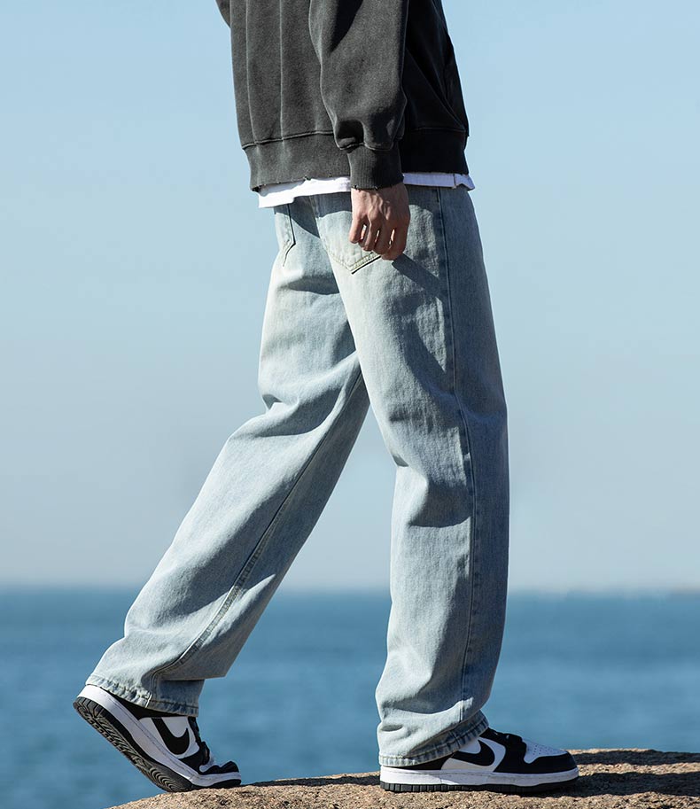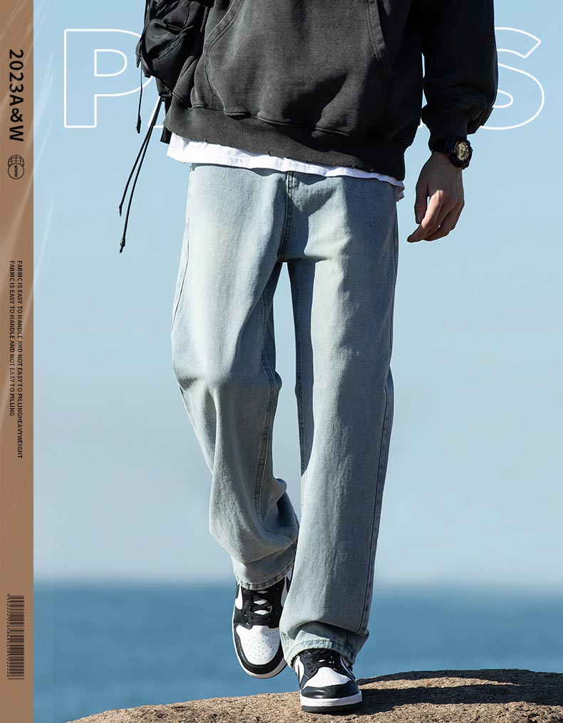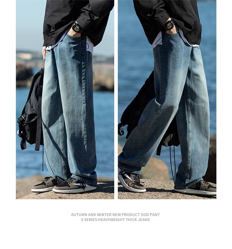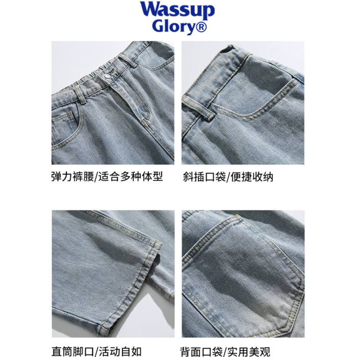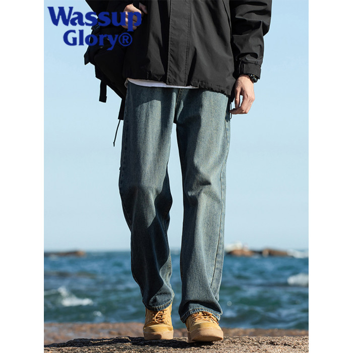 WASSUP GLORY美式復古牛仔褲男春秋季潮牌寬松直筒褲休閒男裝褲子
