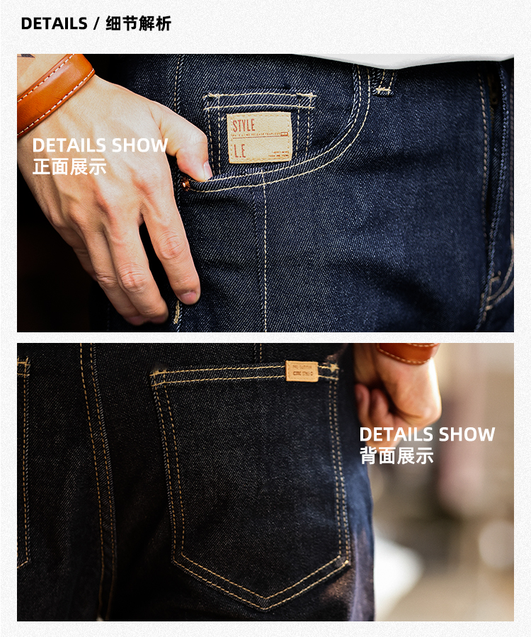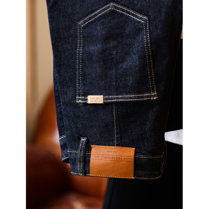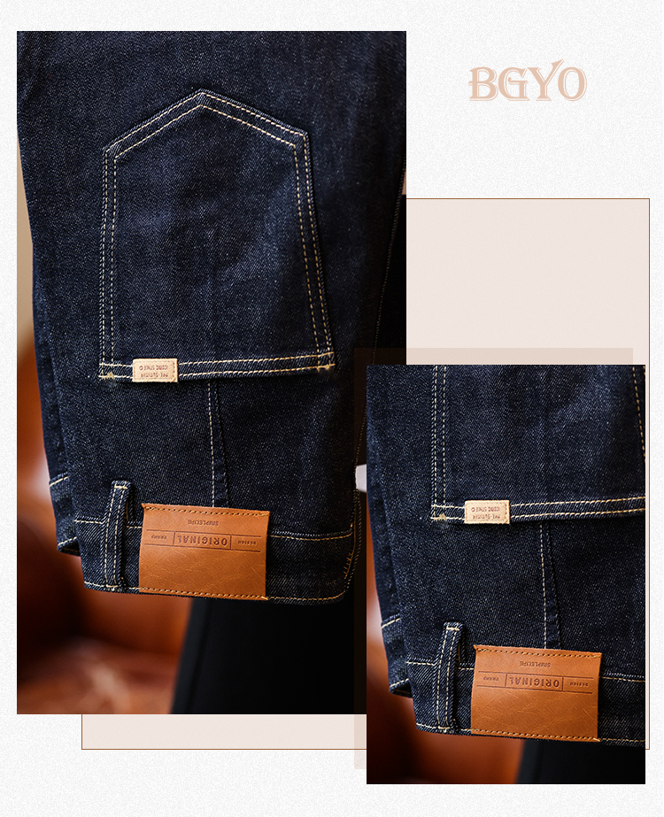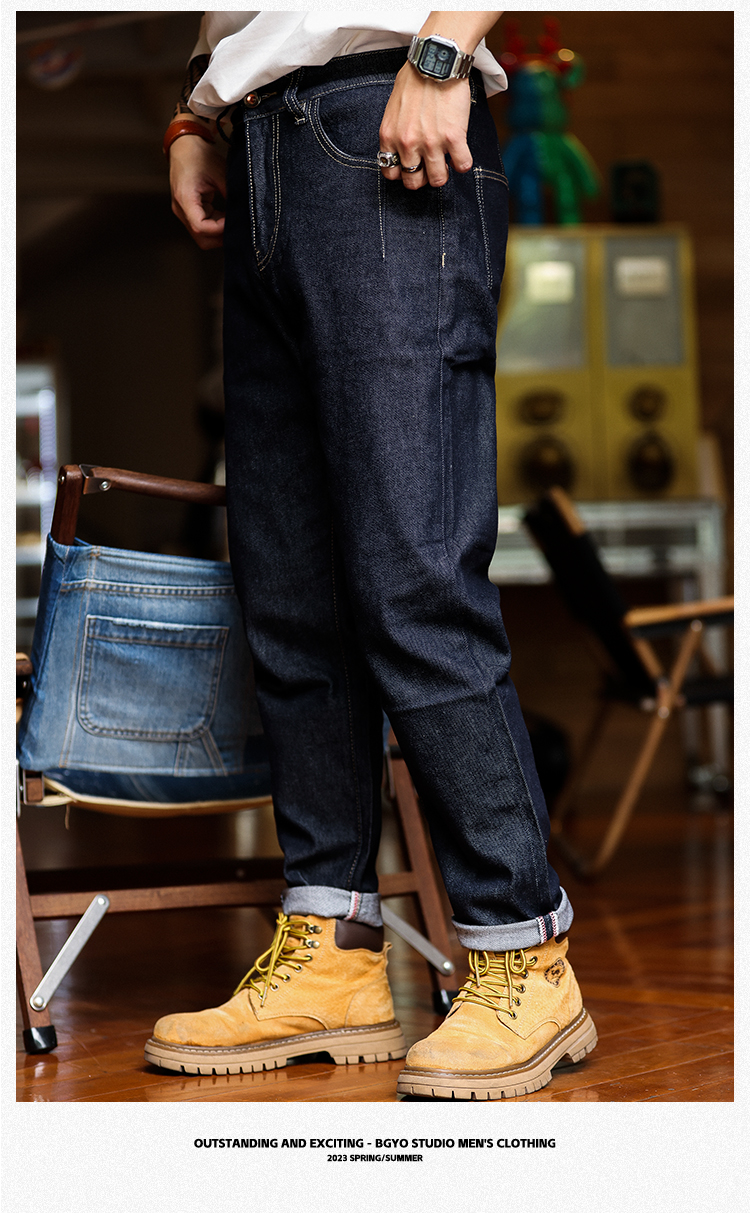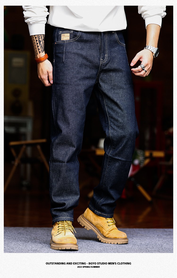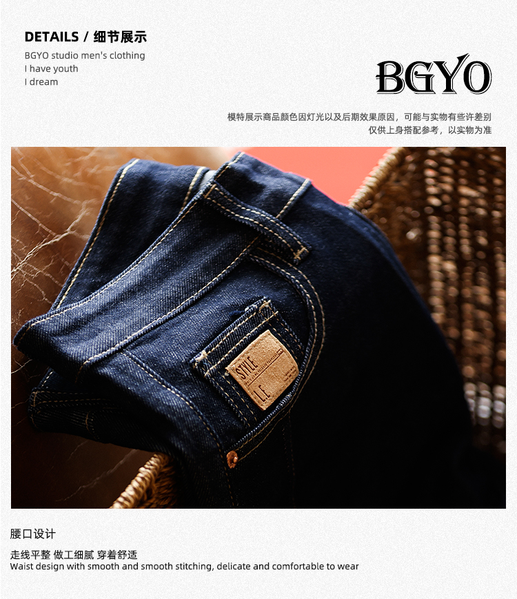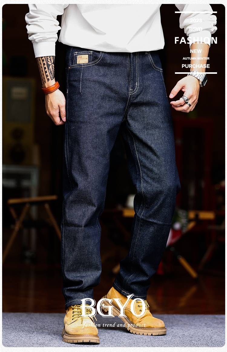 BGYO鹿起 美式復古深藍牛仔褲男士重磅彈力休閒阿美哢嘰丹甯長褲