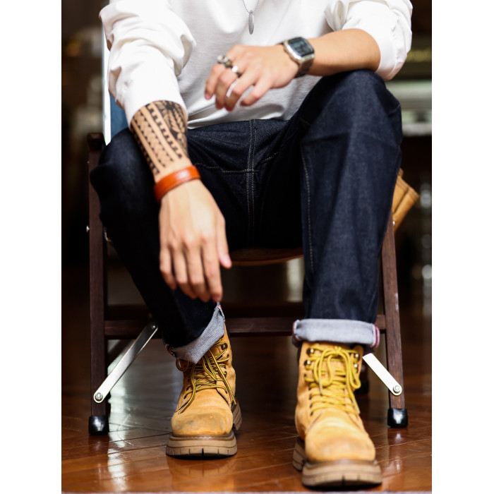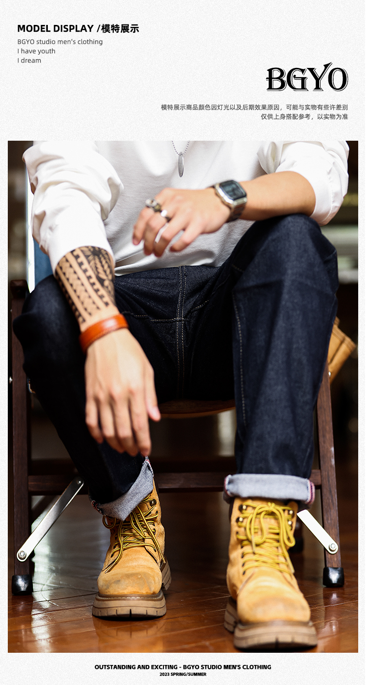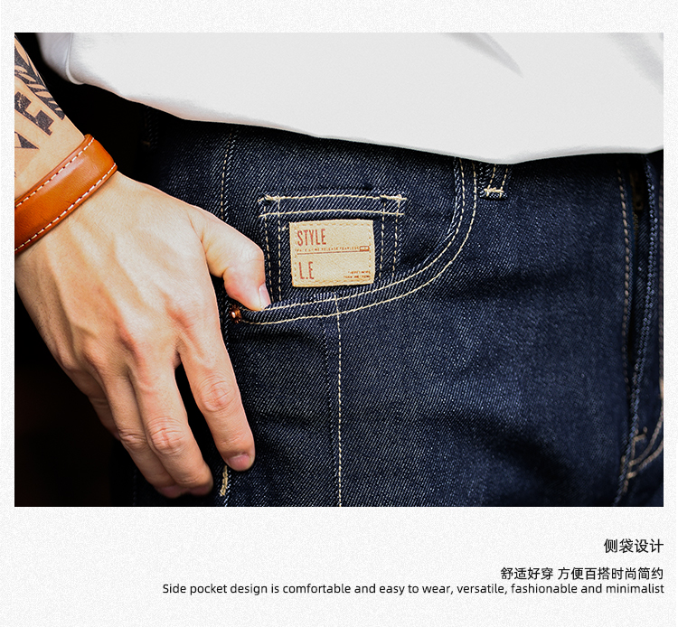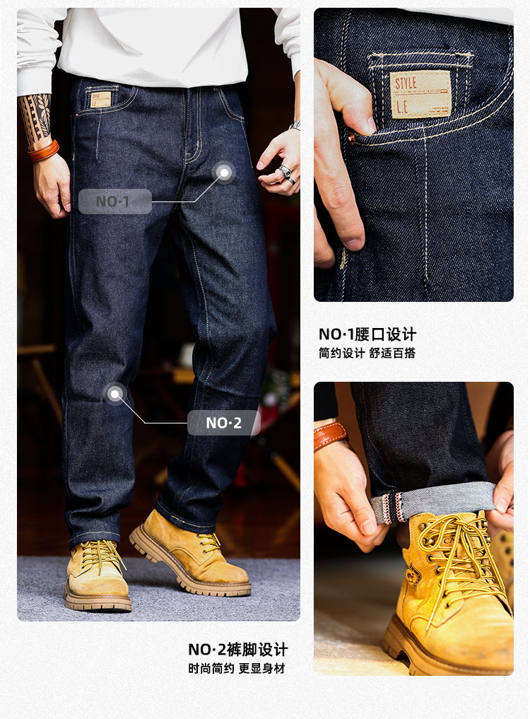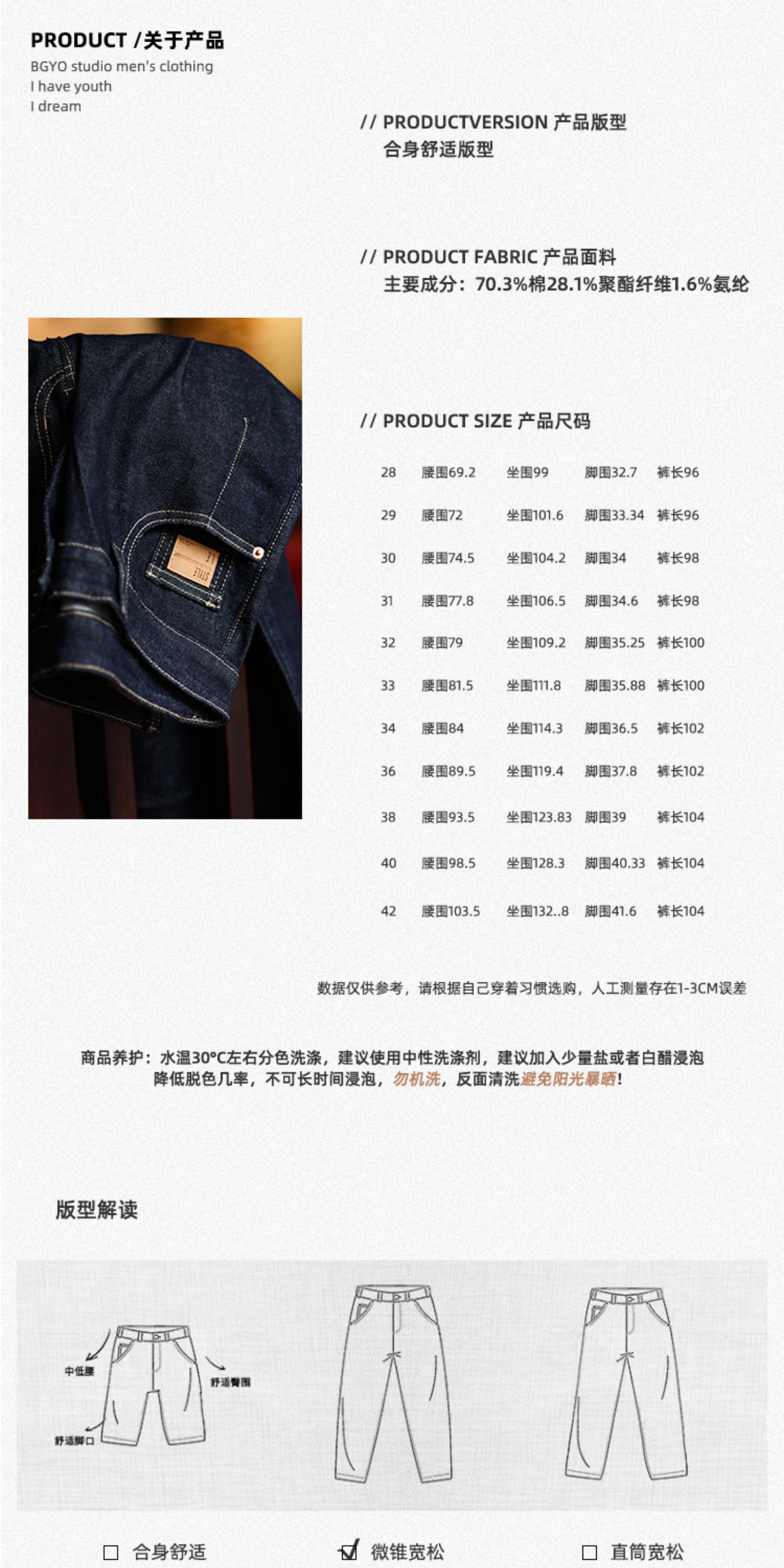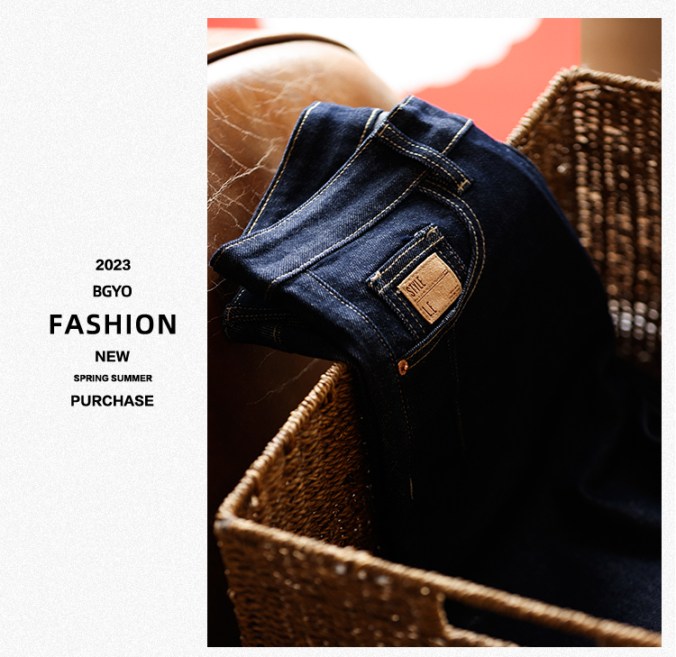 BGYO鹿起 美式復古深藍牛仔褲男士重磅彈力休閒阿美哢嘰丹甯長褲
