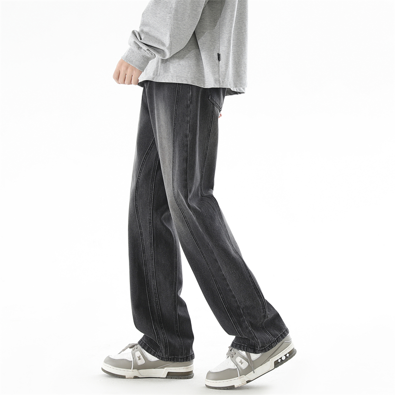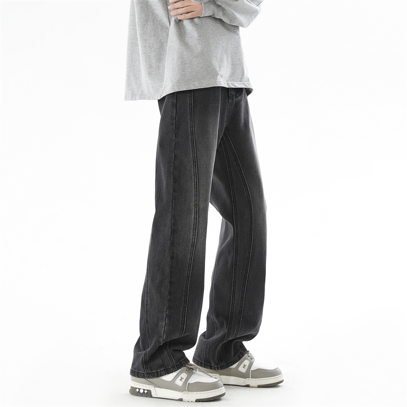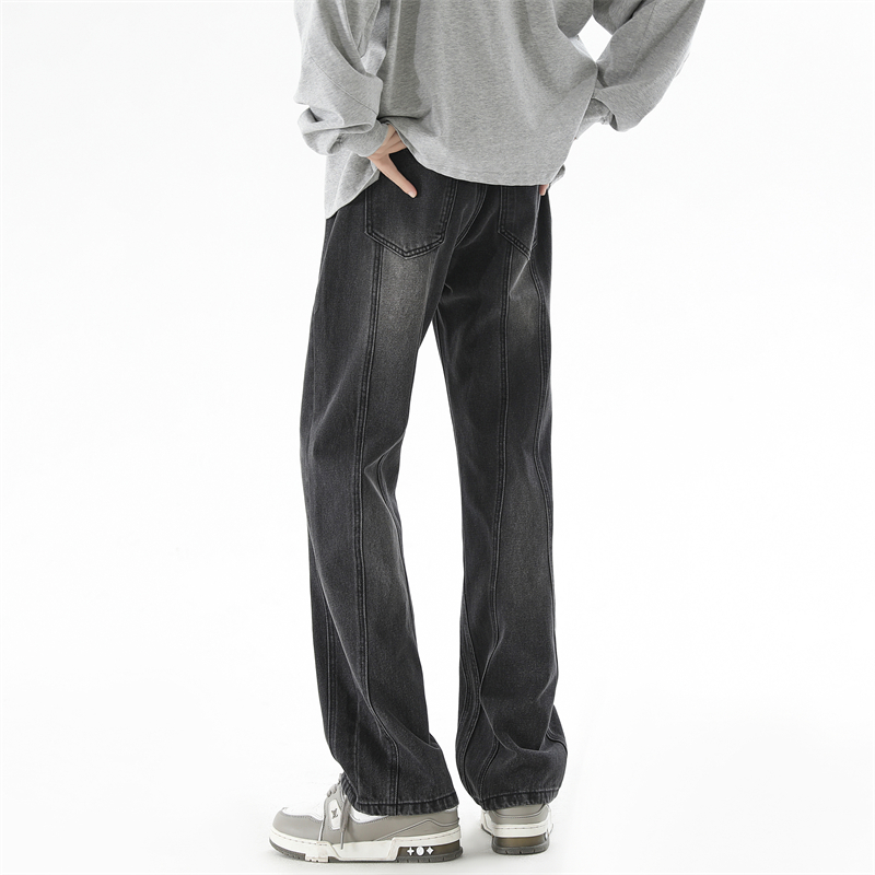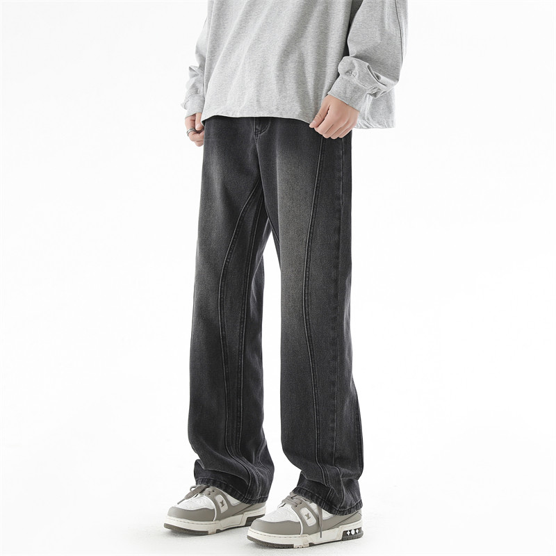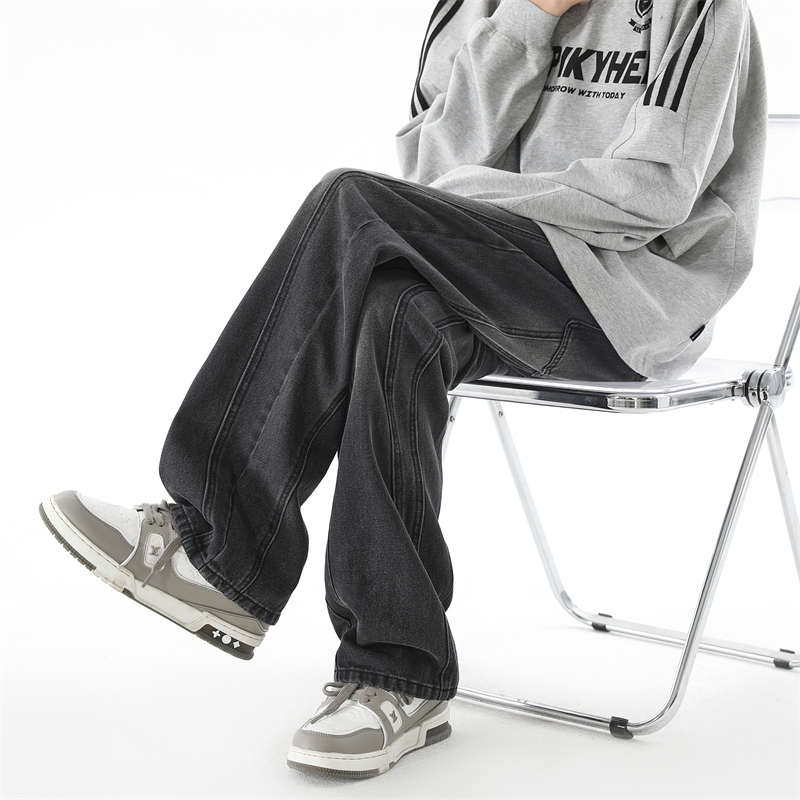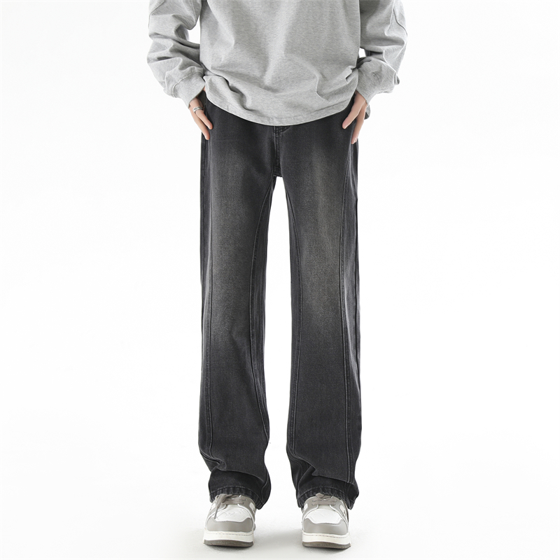 QOTRIOCK美式黃泥染微喇牛仔褲男女秋季潮拼接直筒褲大碼休閒長褲