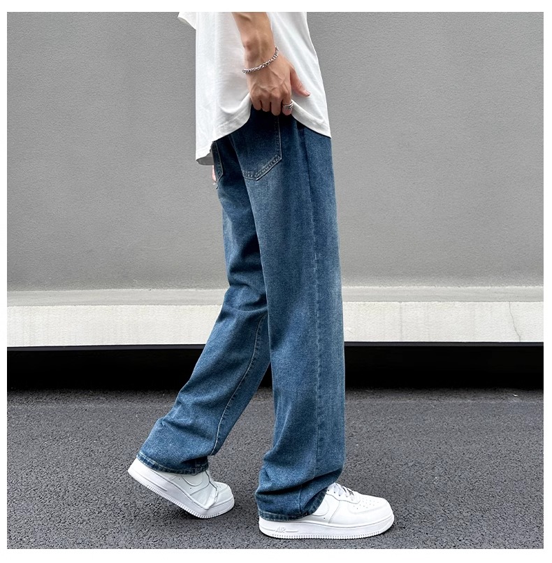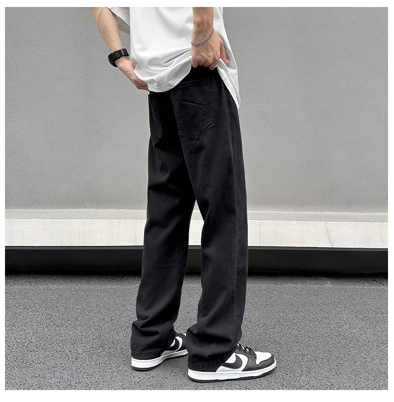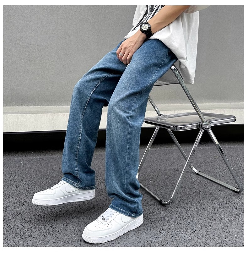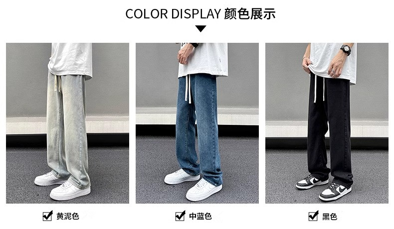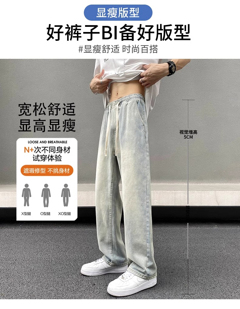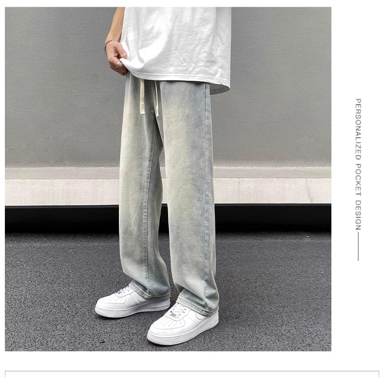 美式黃泥牛仔褲男士秋季冬秋潮牌高街直筒寬松做舊休閒濶腿長褲子