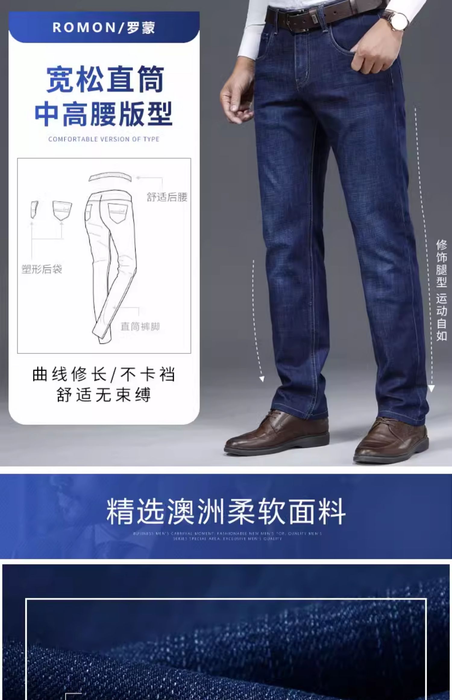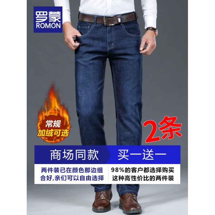 羅矇冬季直筒牛仔褲男款寬松2025新款男士褲子男休閒長褲加絨男褲