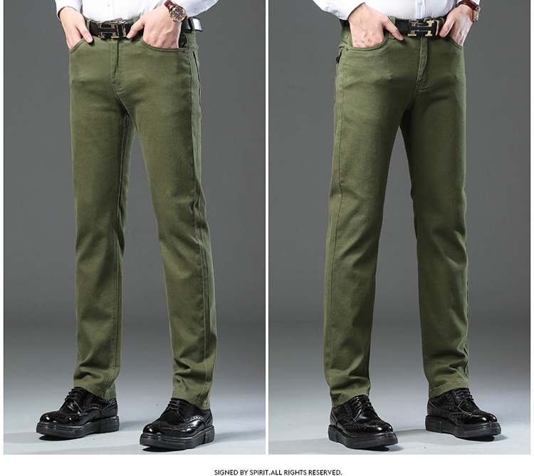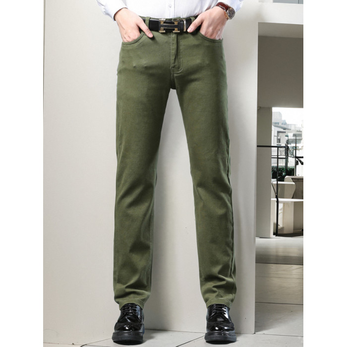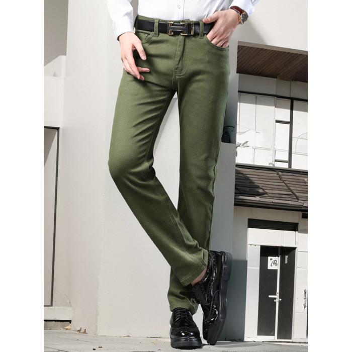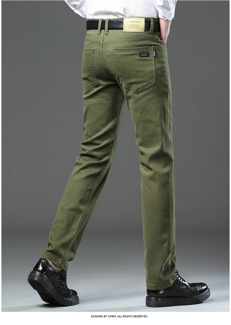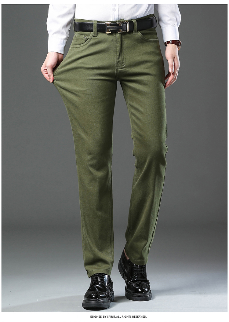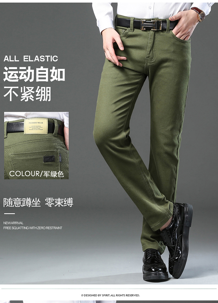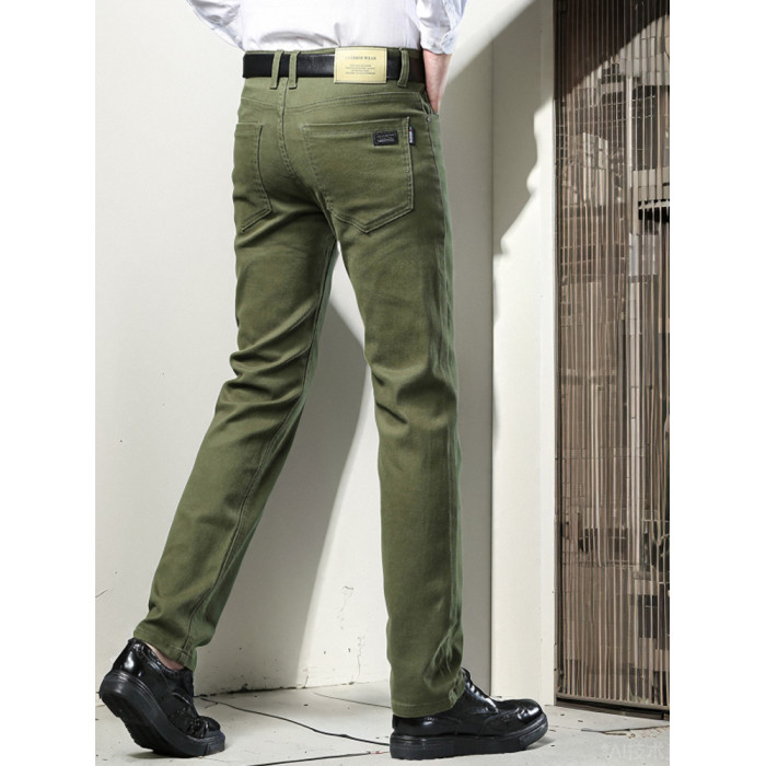 秋冬季彈力牛仔褲男直筒修身青年百搭休閒褲2025新款上班長褲軍綠