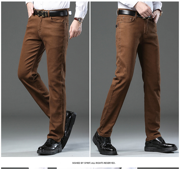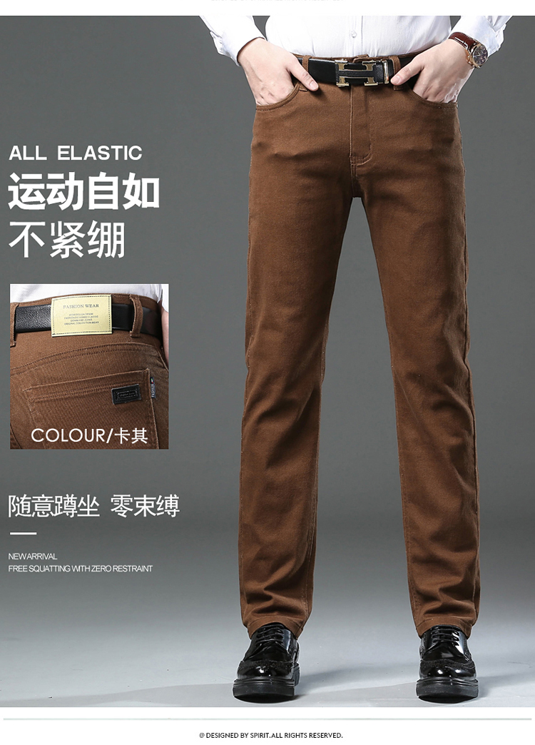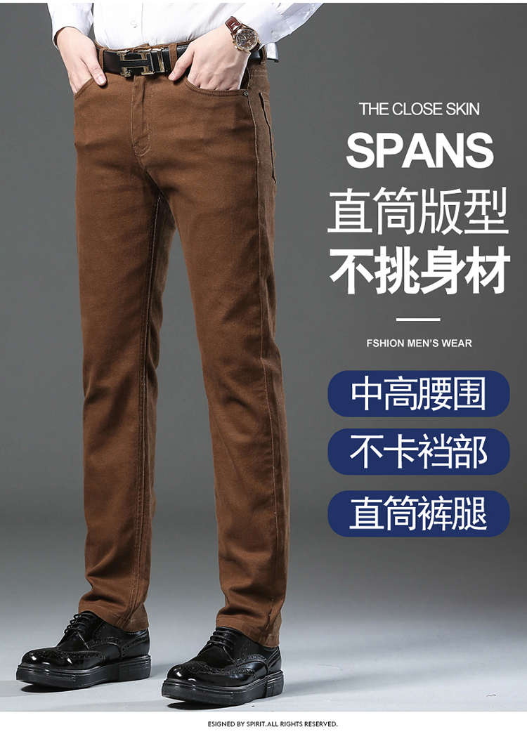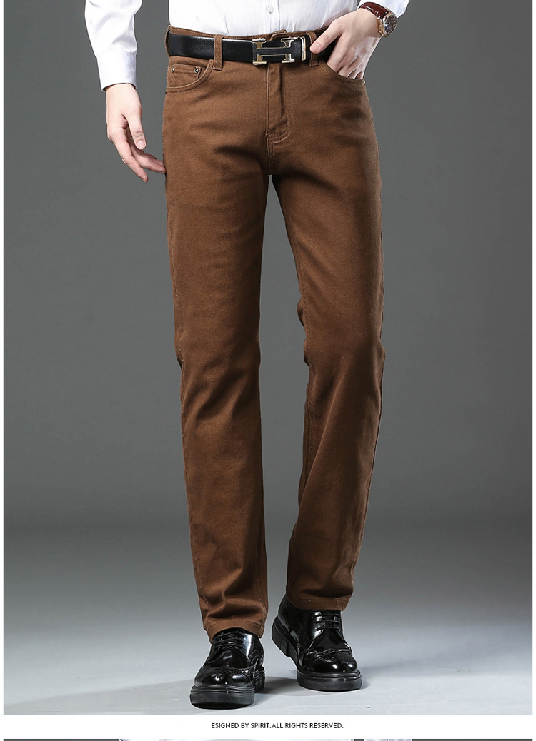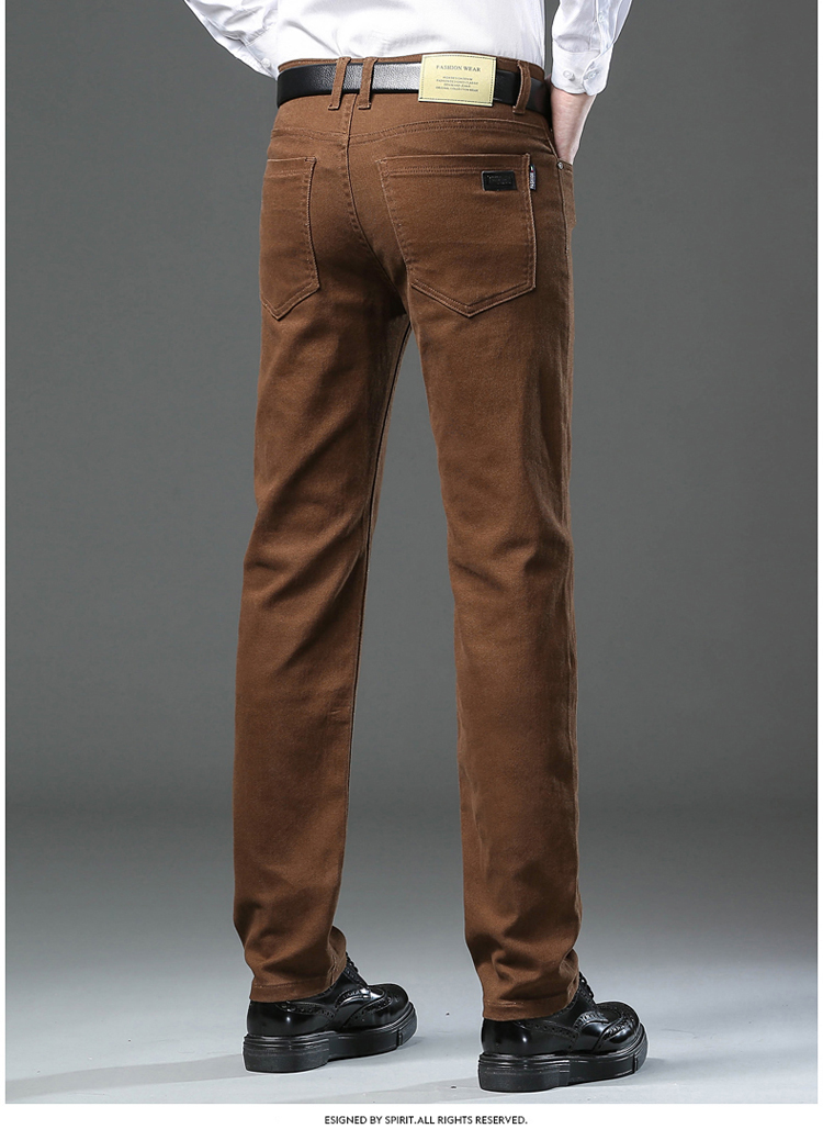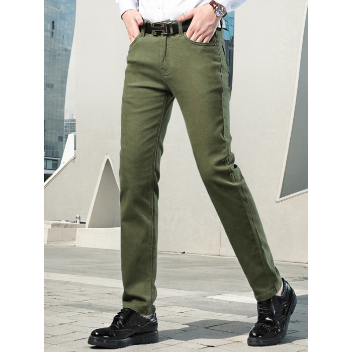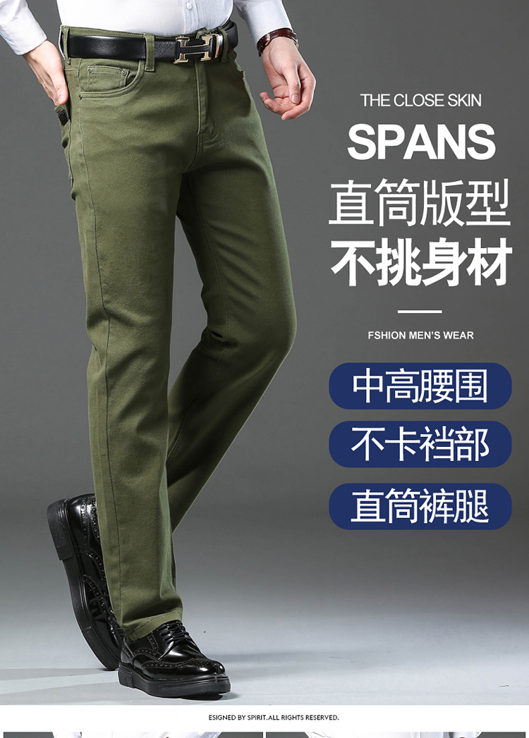 秋冬季彈力牛仔褲男直筒修身青年百搭休閒褲2025新款上班長褲軍綠