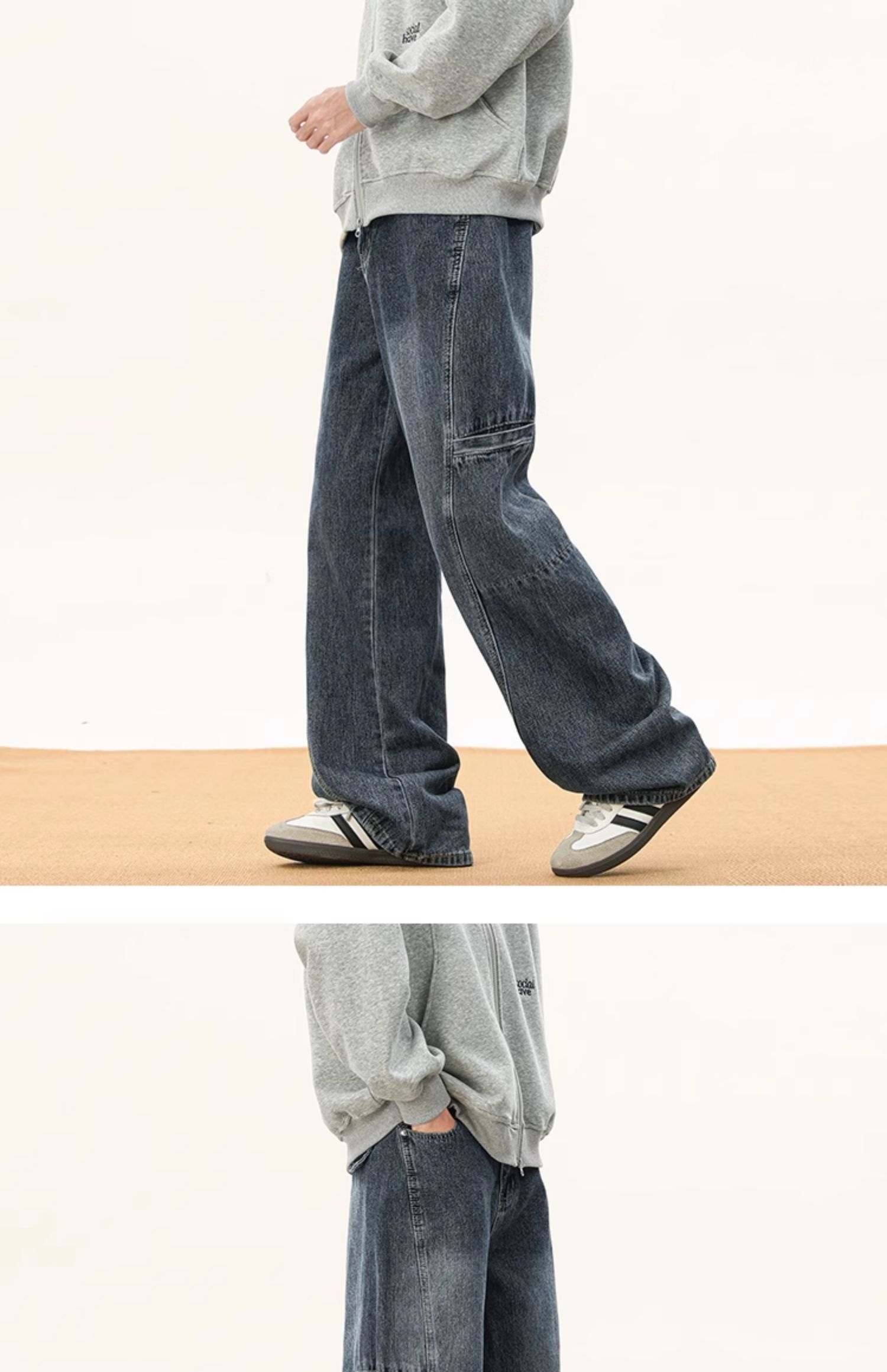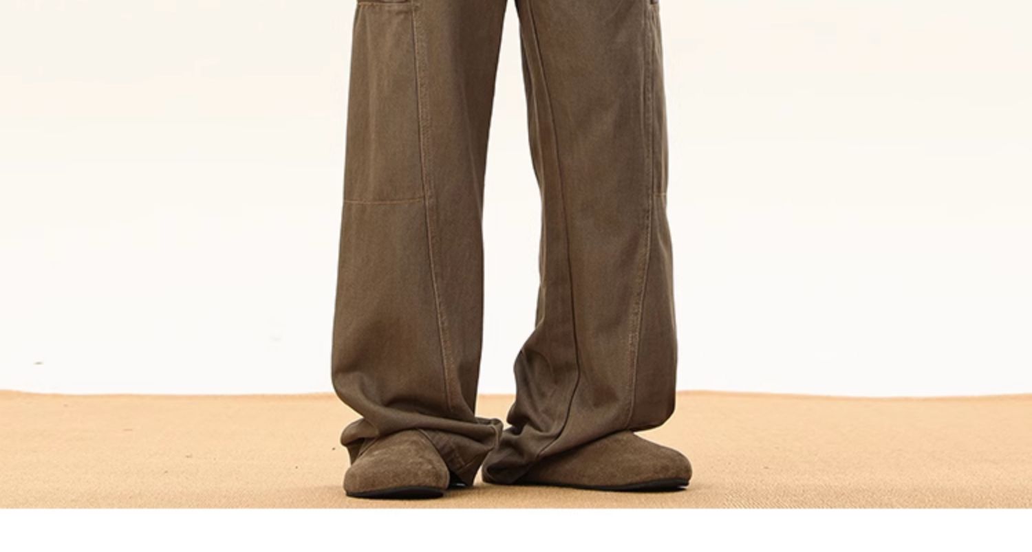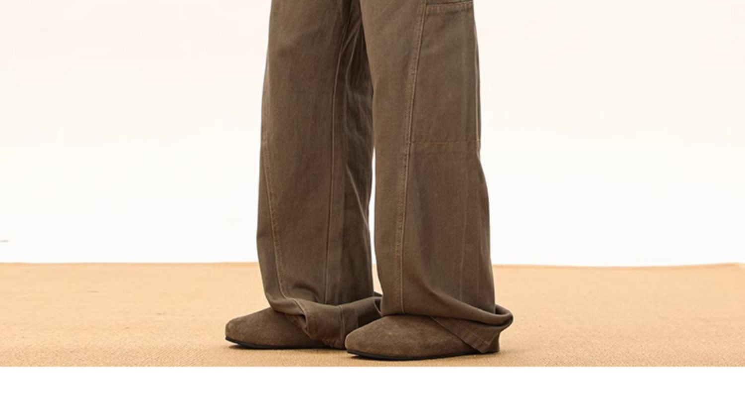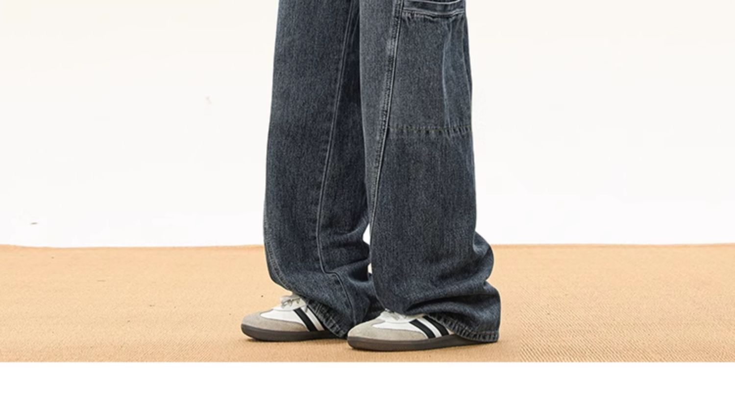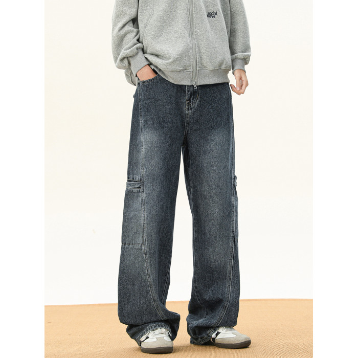 美拉德棕色牛仔褲男秋季潮牌做舊濶腿長褲高街設計感百搭工裝褲子