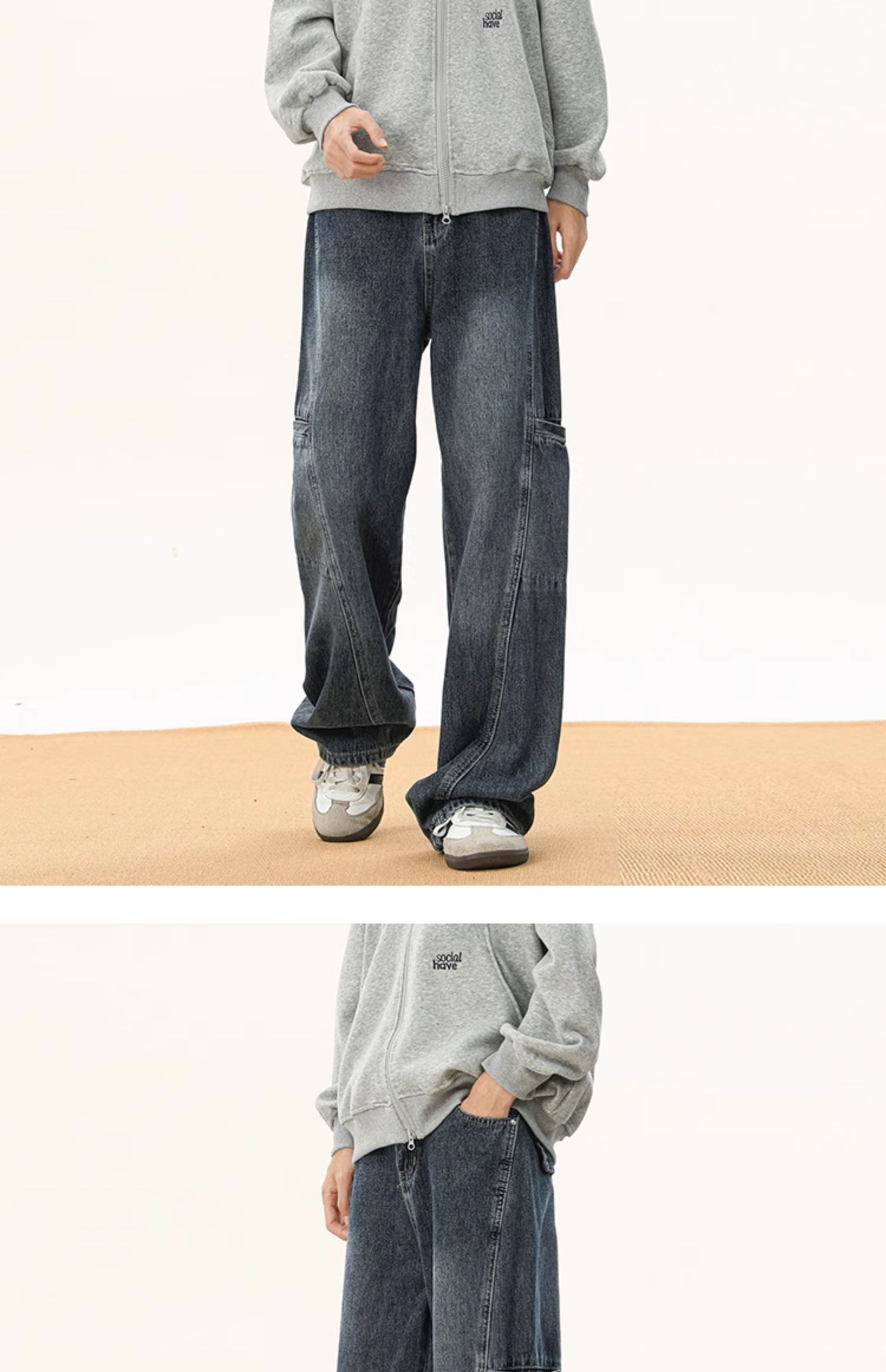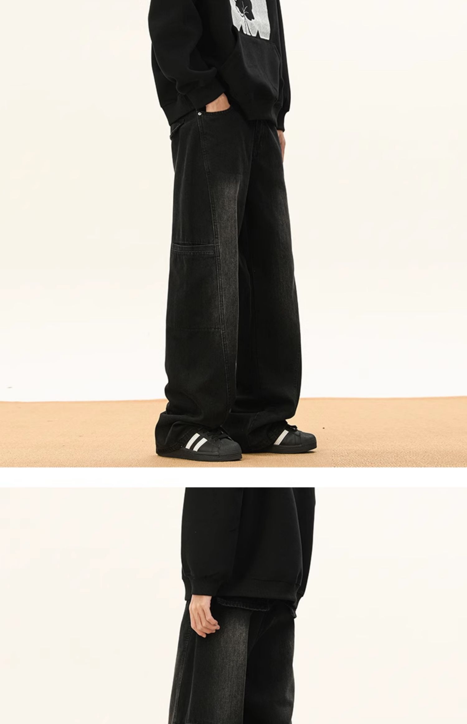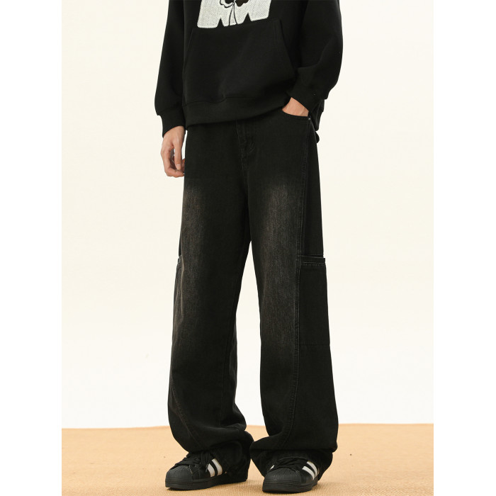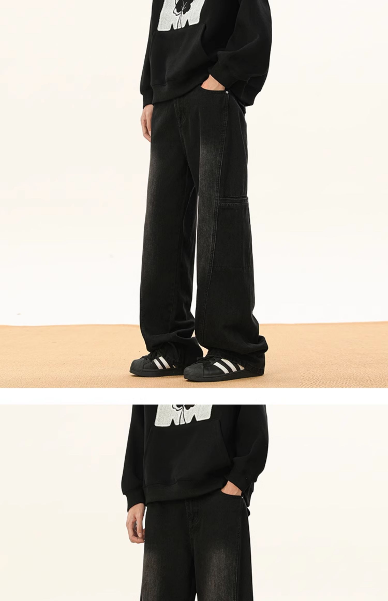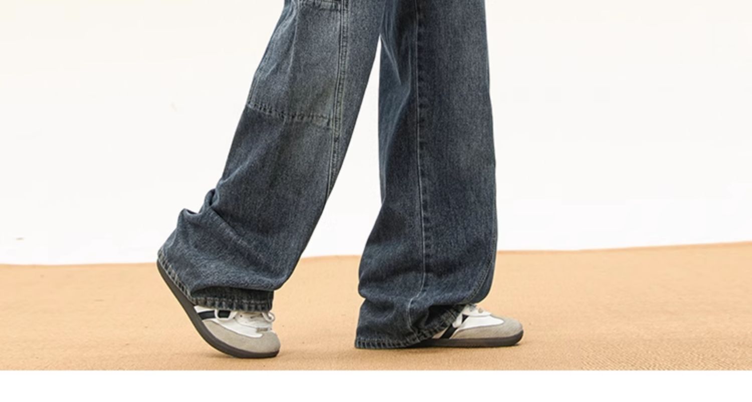 美拉德棕色牛仔褲男秋季潮牌做舊濶腿長褲高街設計感百搭工裝褲子