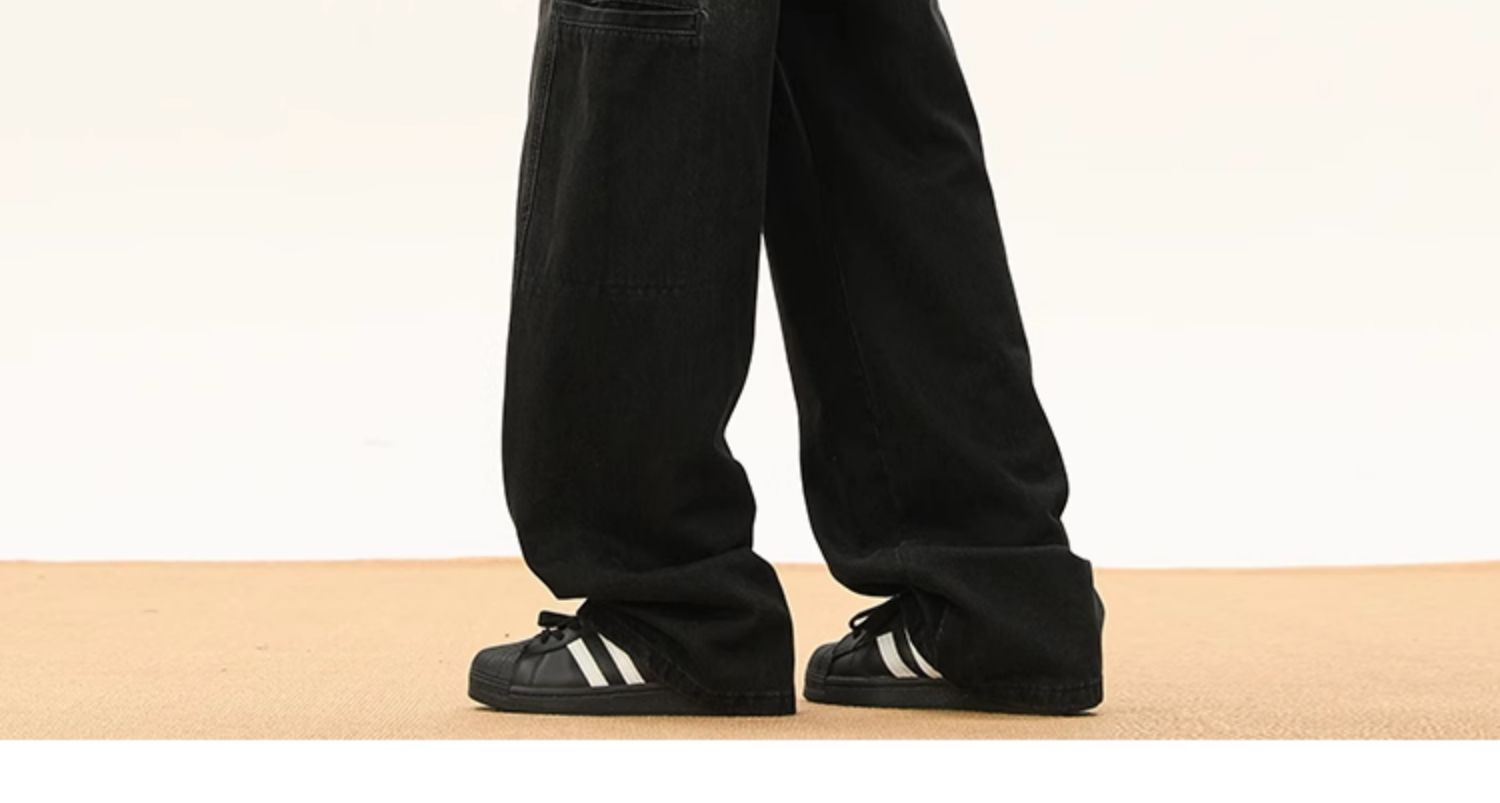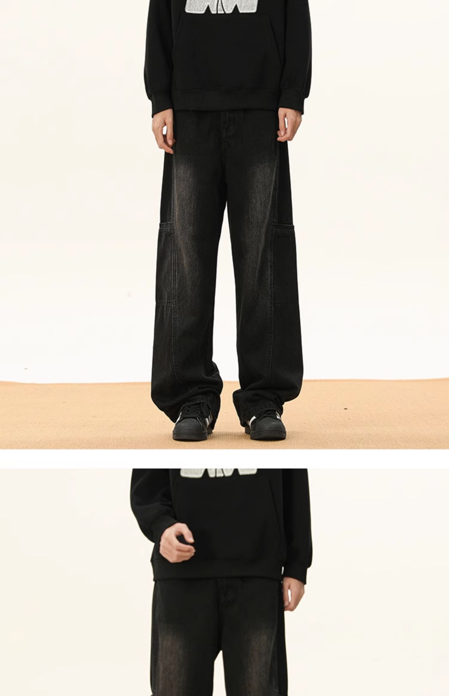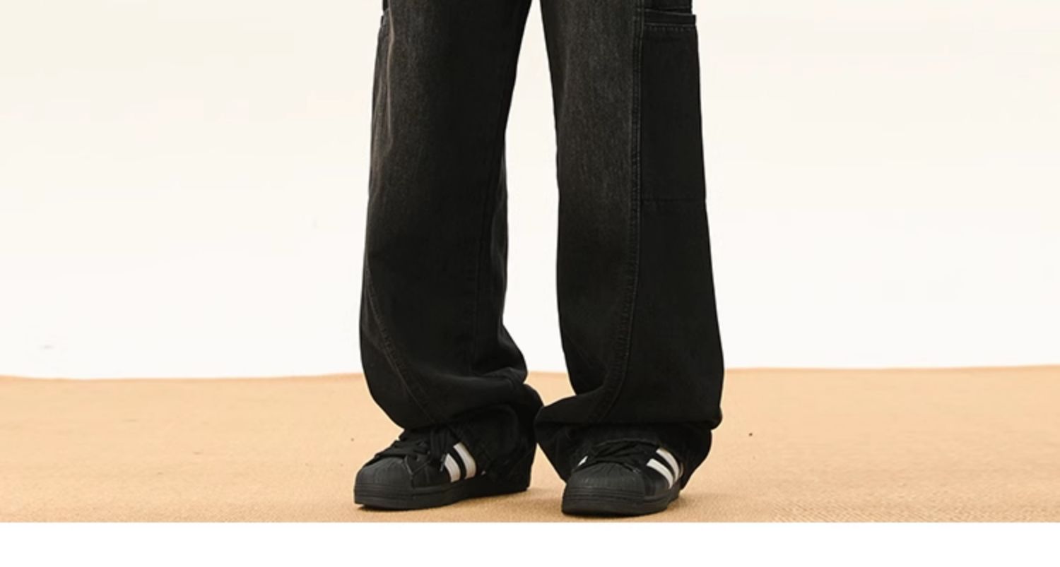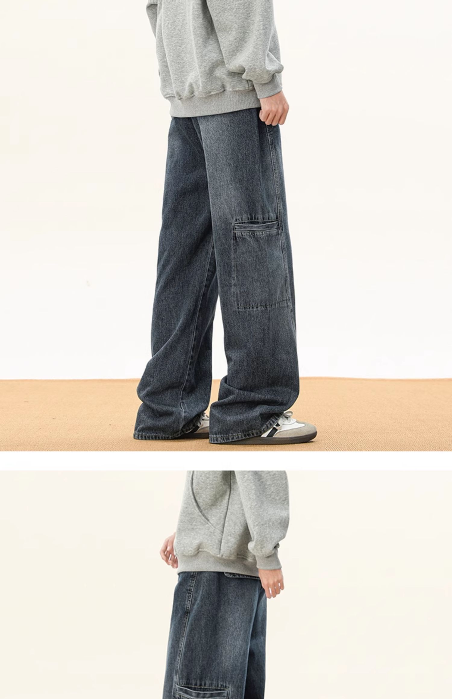 美拉德棕色牛仔褲男秋季潮牌做舊濶腿長褲高街設計感百搭工裝褲子