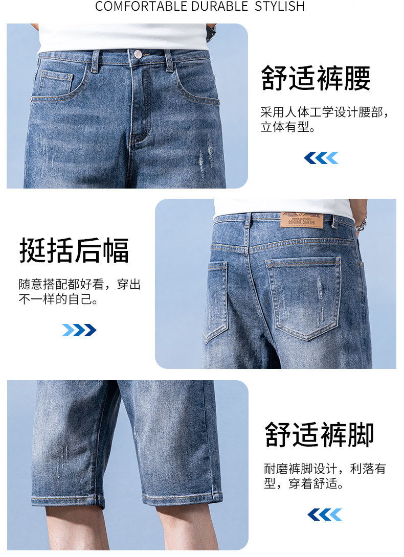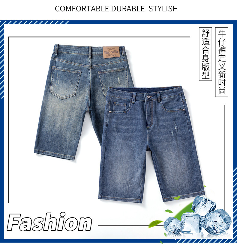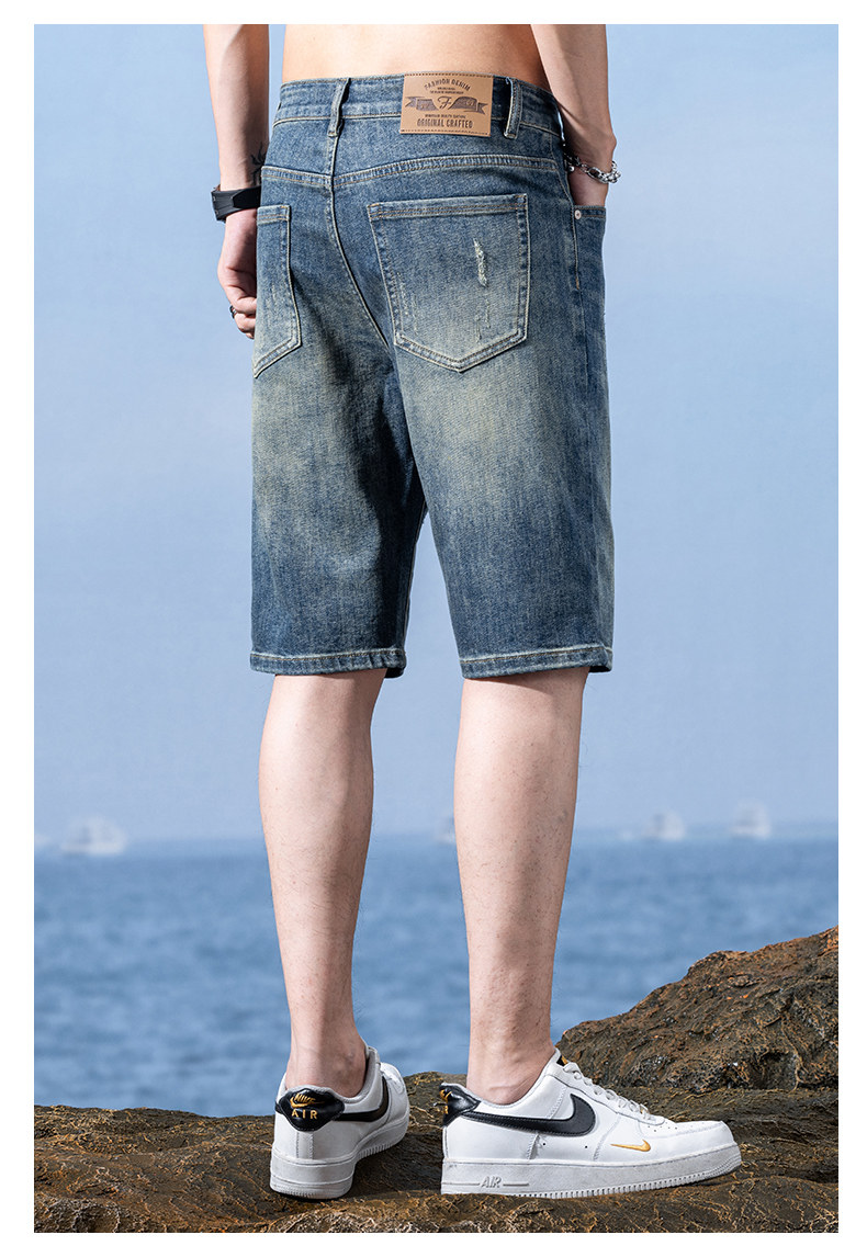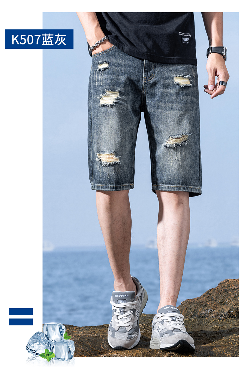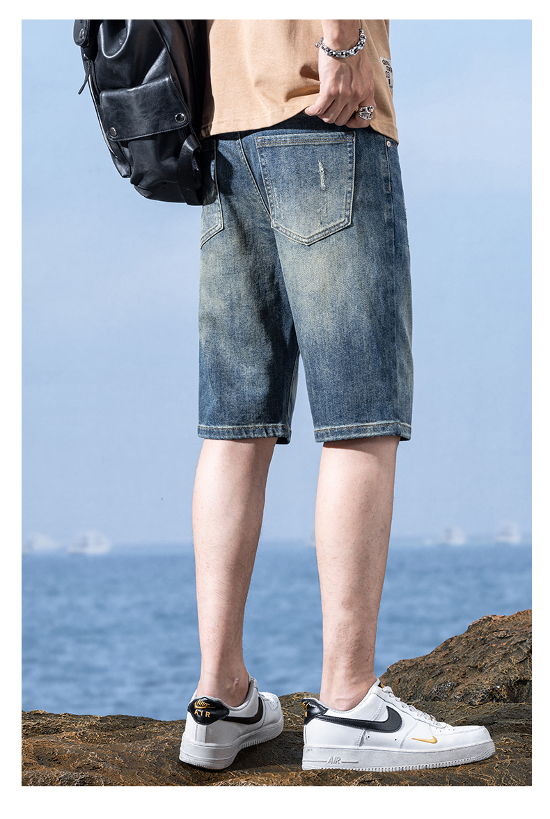 真維斯牛仔短褲男美式街頭夏季薄款寬松破洞牛仔褲中褲子五分褲男