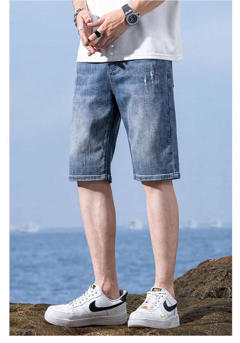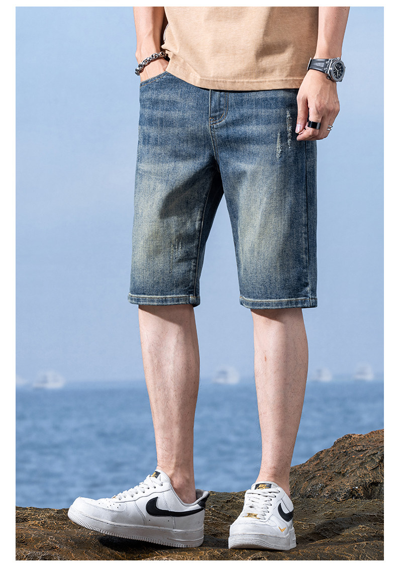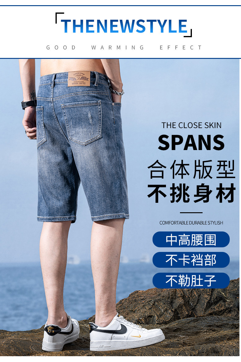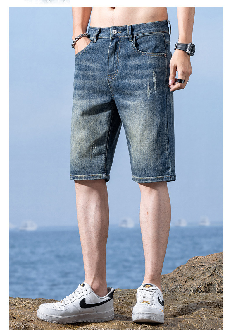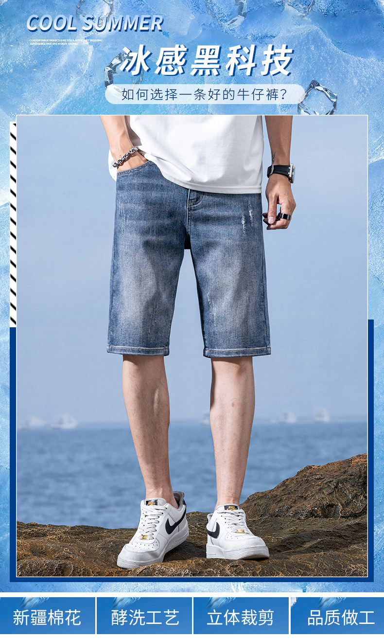 真維斯牛仔短褲男美式街頭夏季薄款寬松破洞牛仔褲中褲子五分褲男