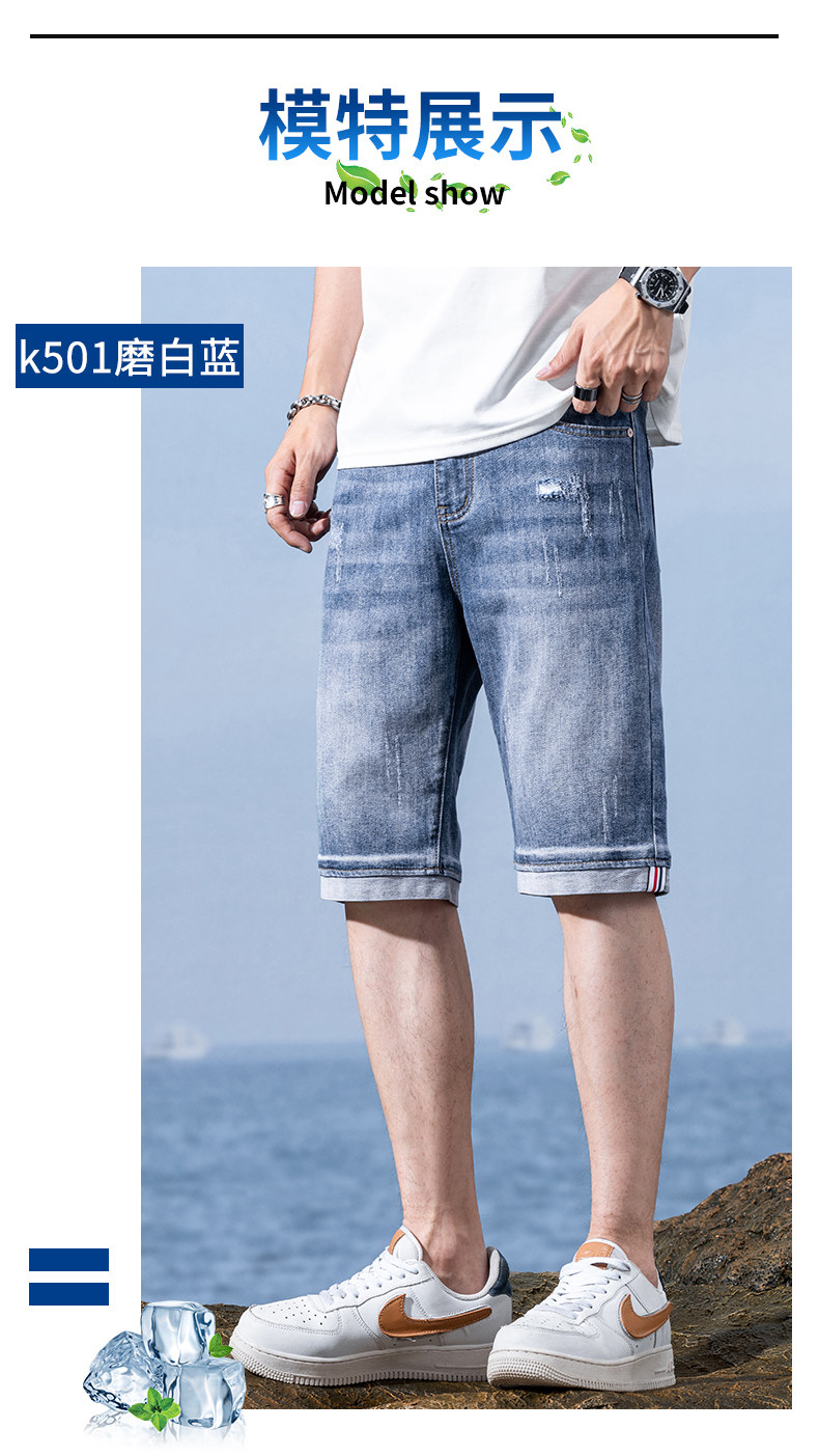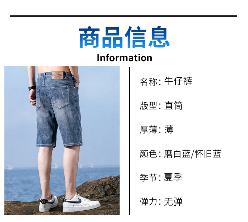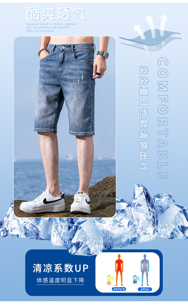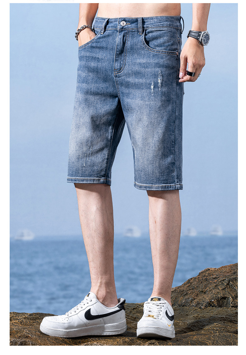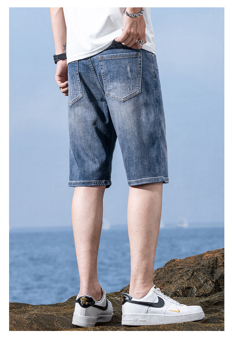 真維斯牛仔短褲男美式街頭夏季薄款寬松破洞牛仔褲中褲子五分褲男