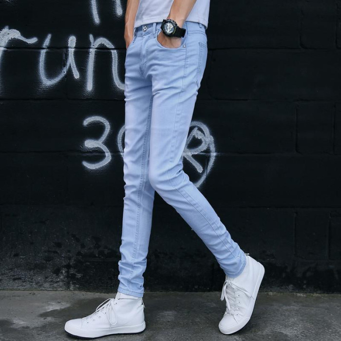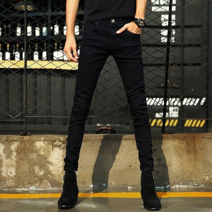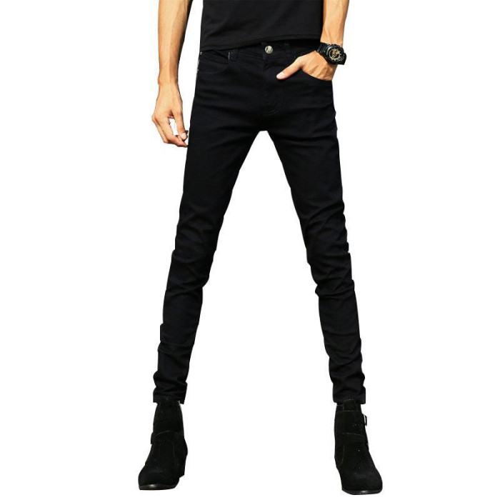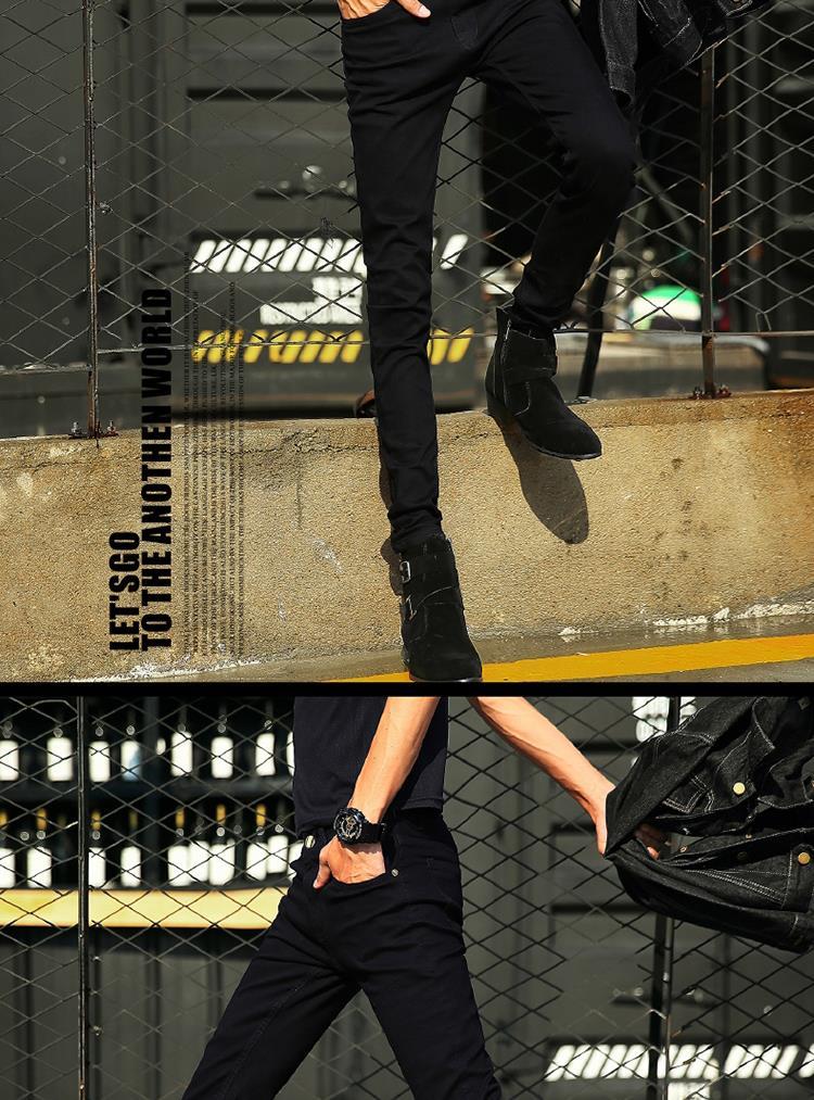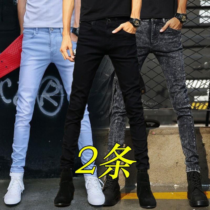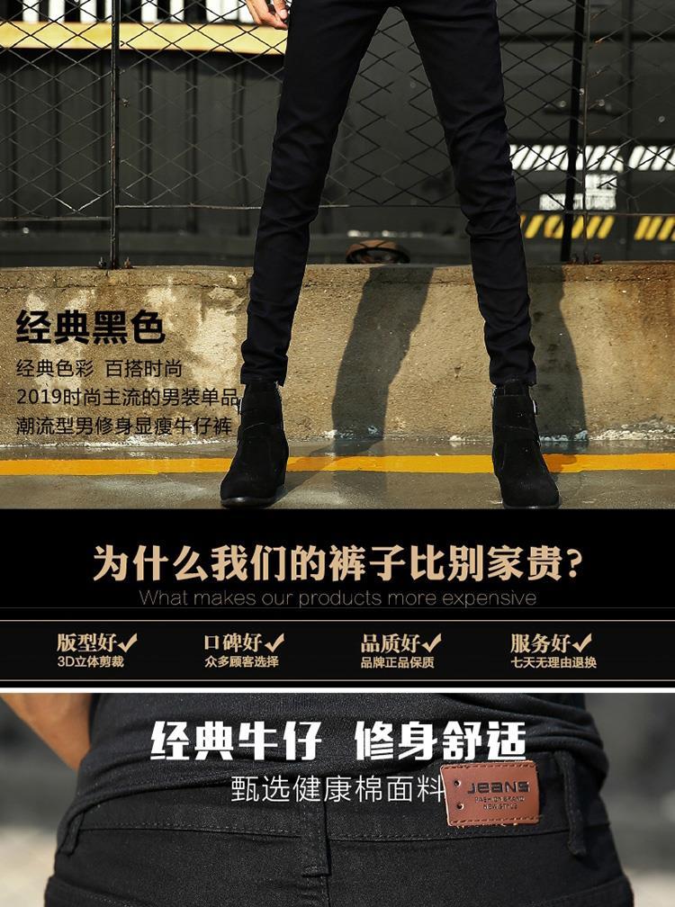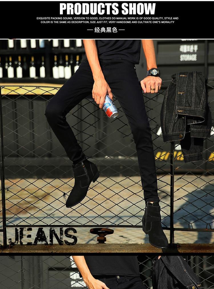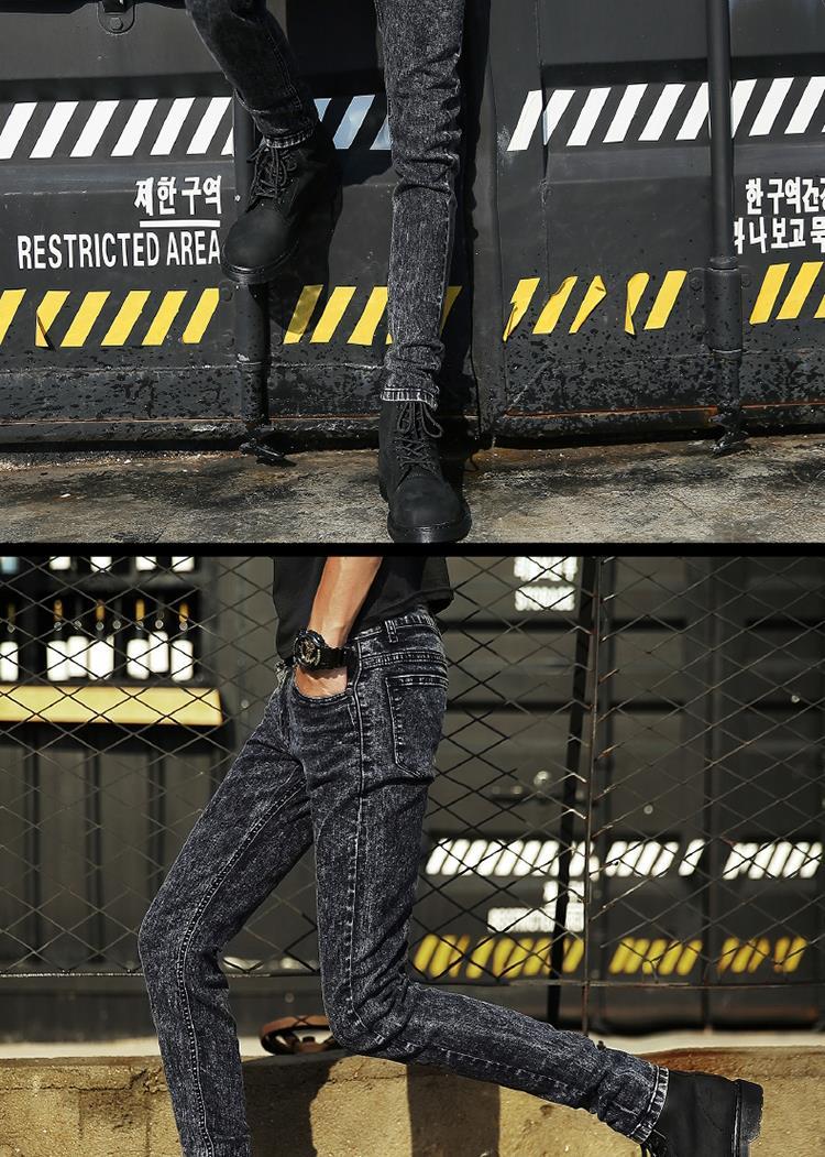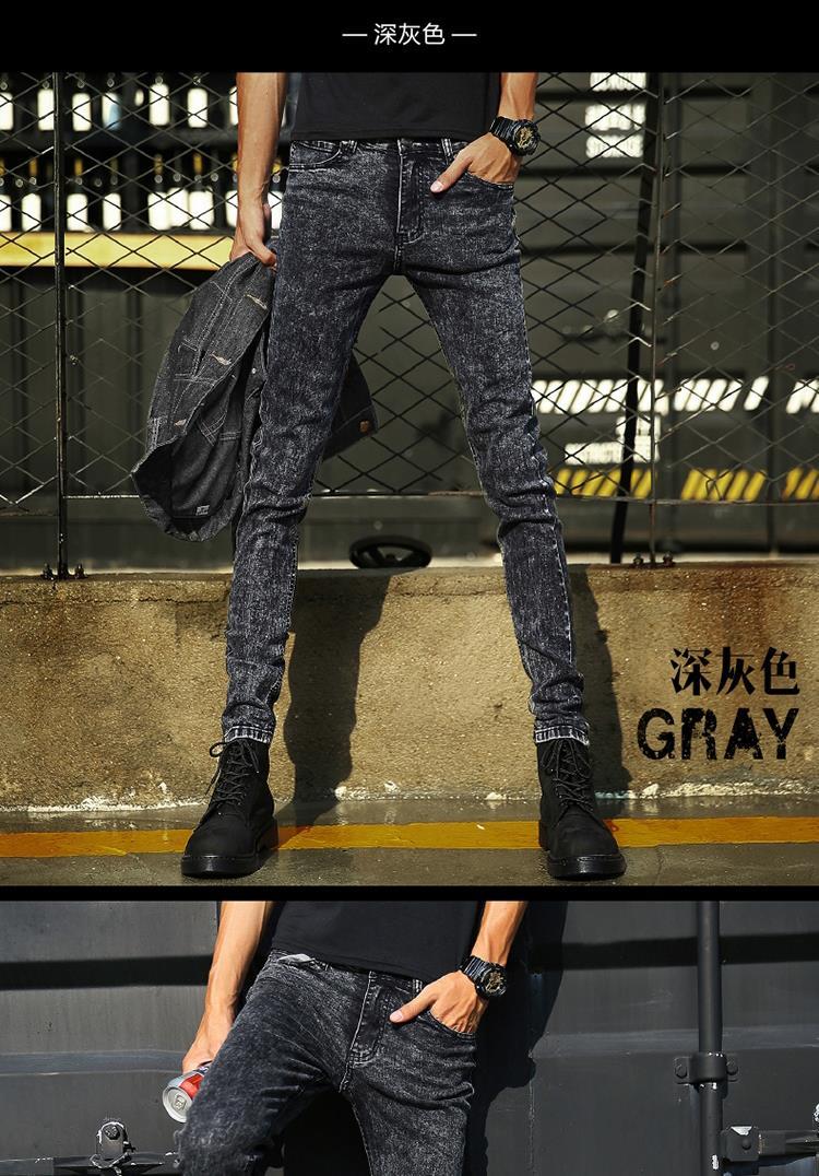 雪花灰彈力褲子男韓版百搭緊身小腳休閒褲春秋季純黑色牛仔長褲男