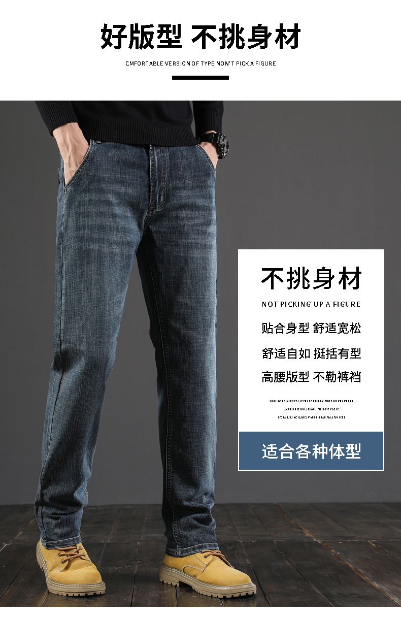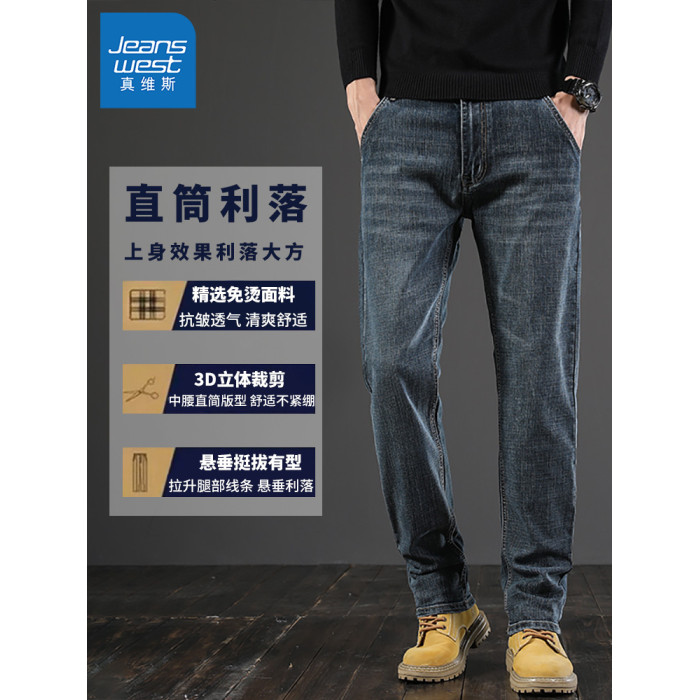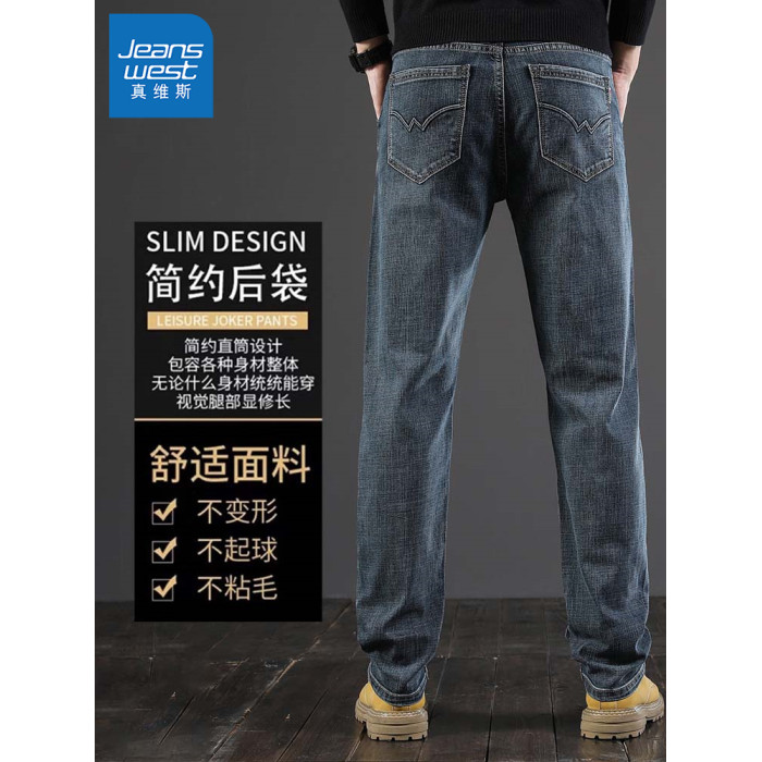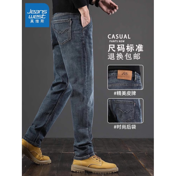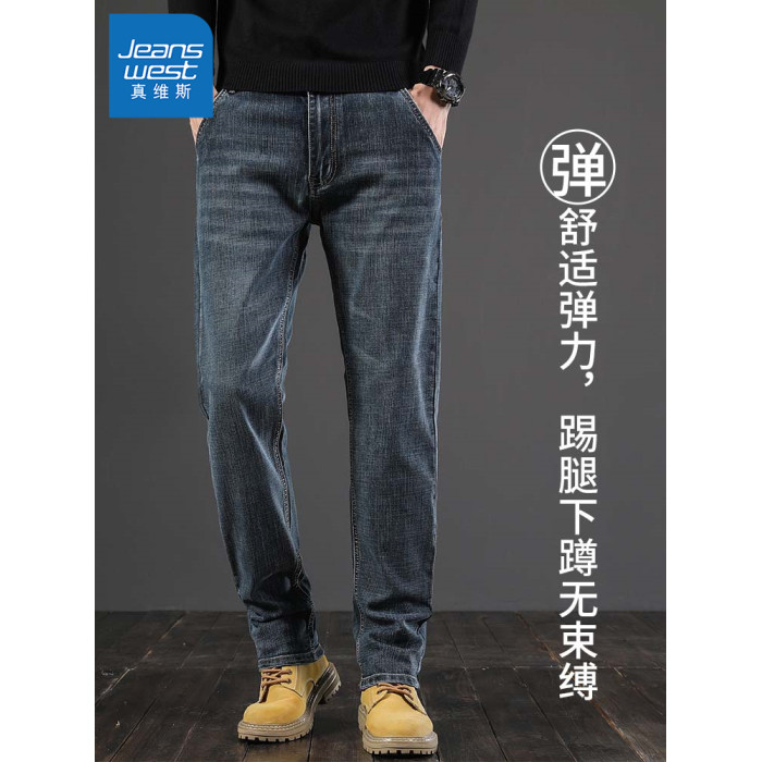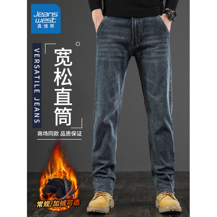 真維斯男士牛仔褲2025秋冬新款寬松直筒男褲高級彈力商務加絨褲子