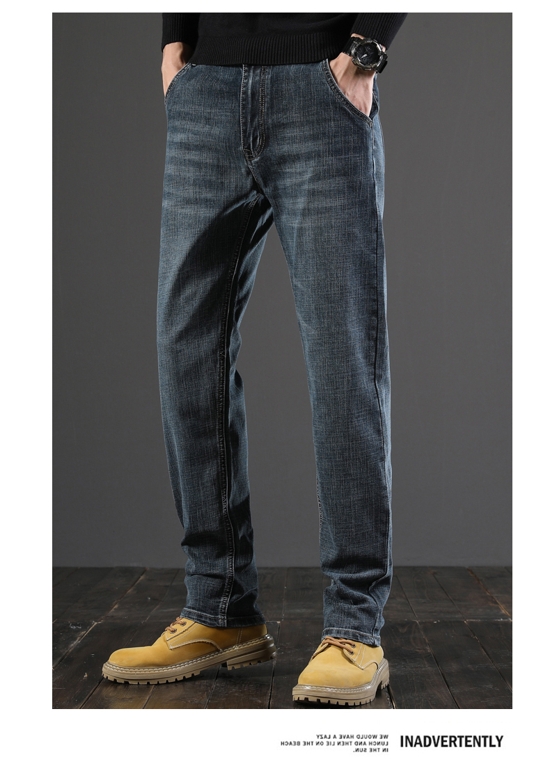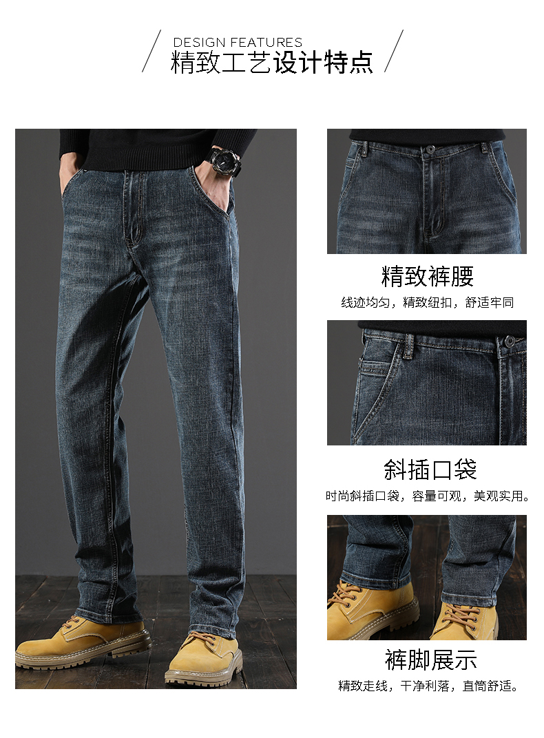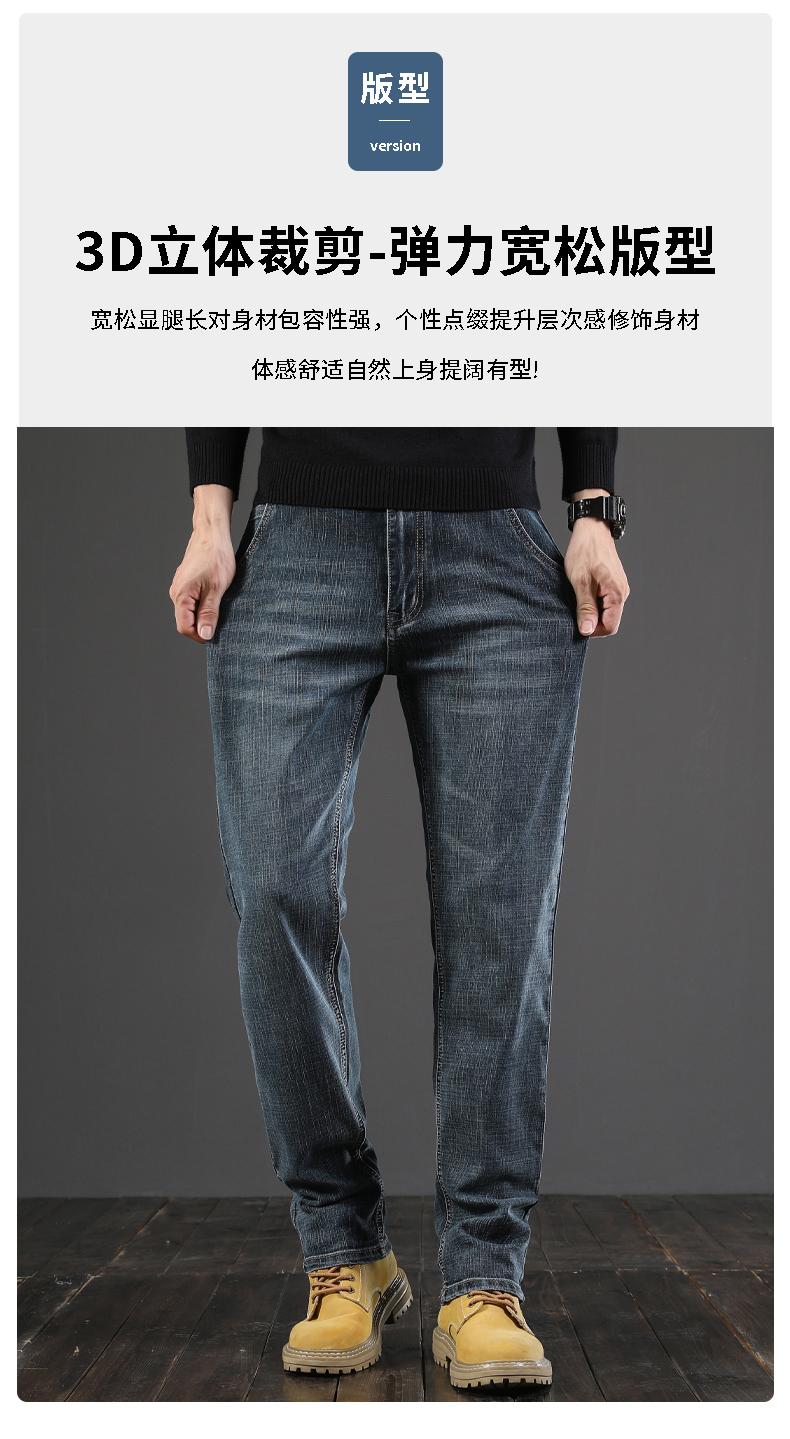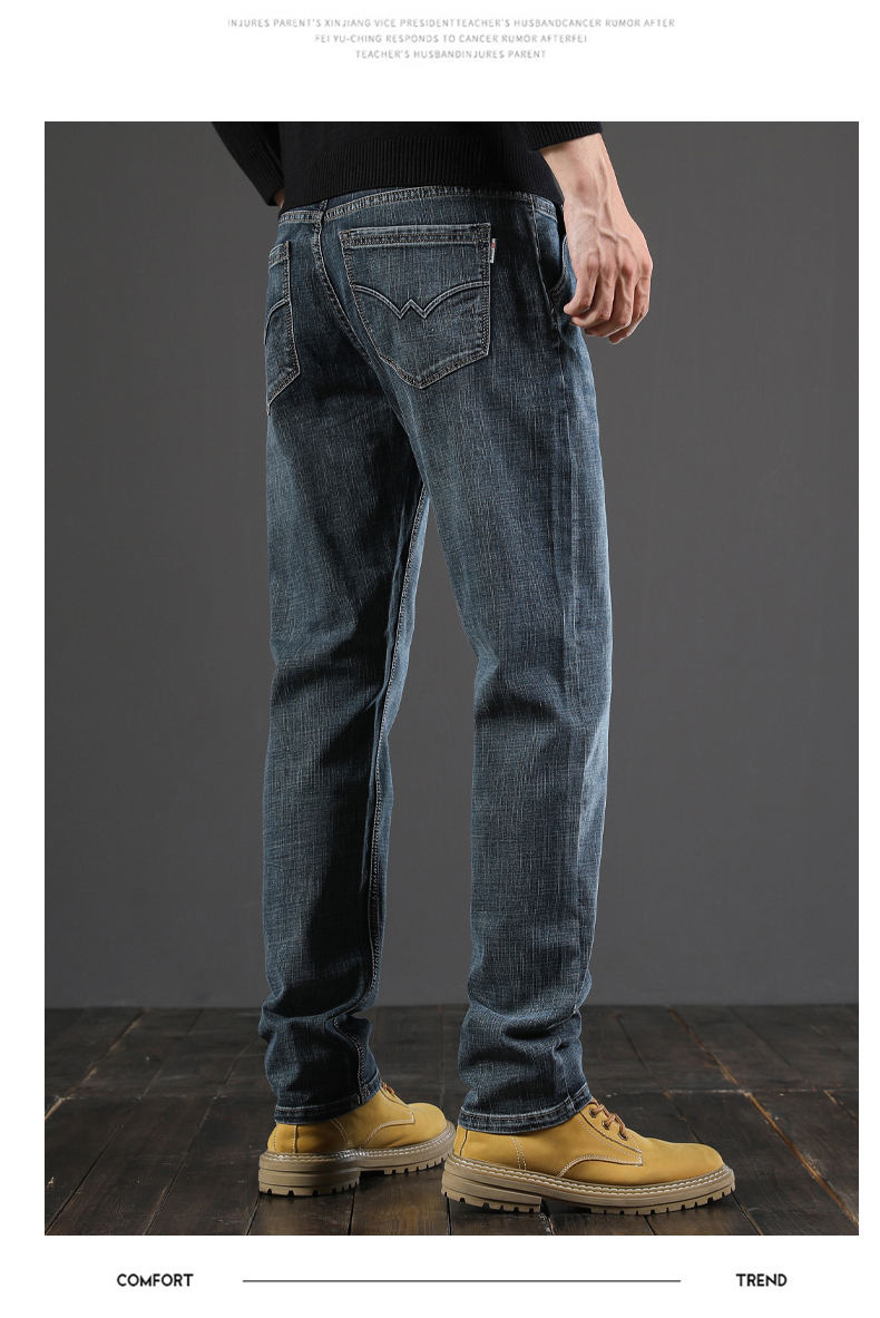 真維斯男士牛仔褲2025秋冬新款寬松直筒男褲高級彈力商務加絨褲子