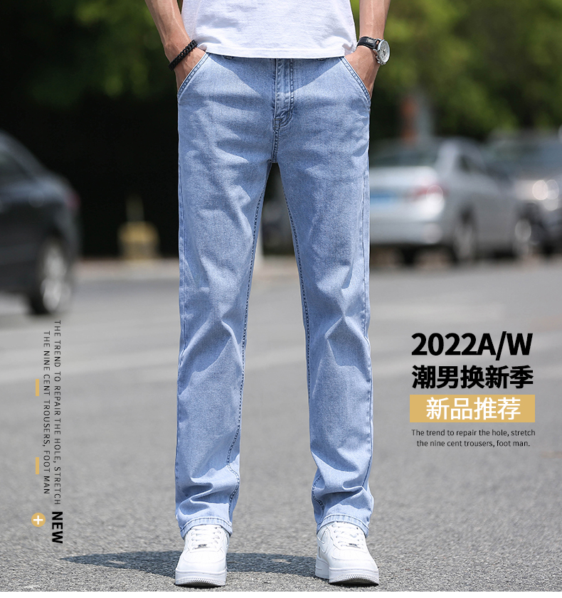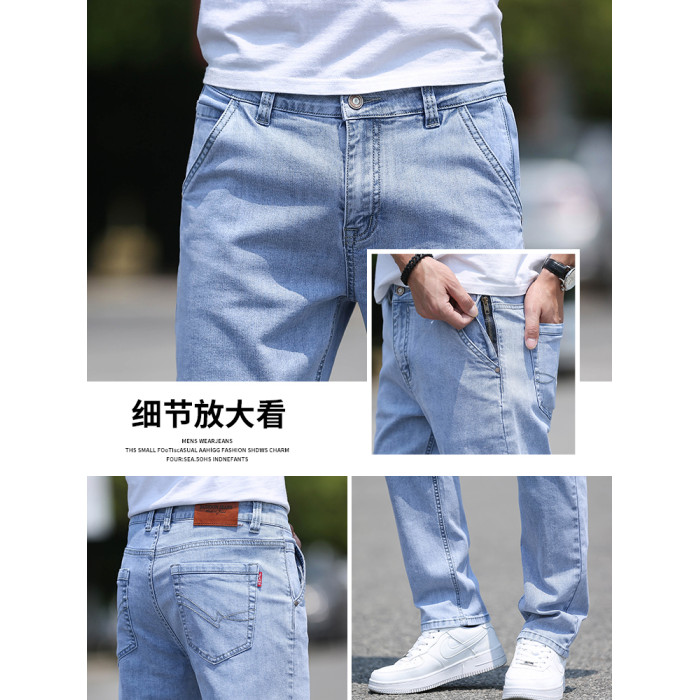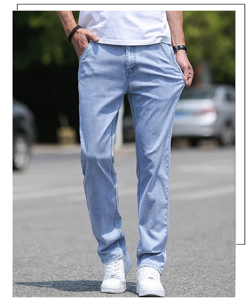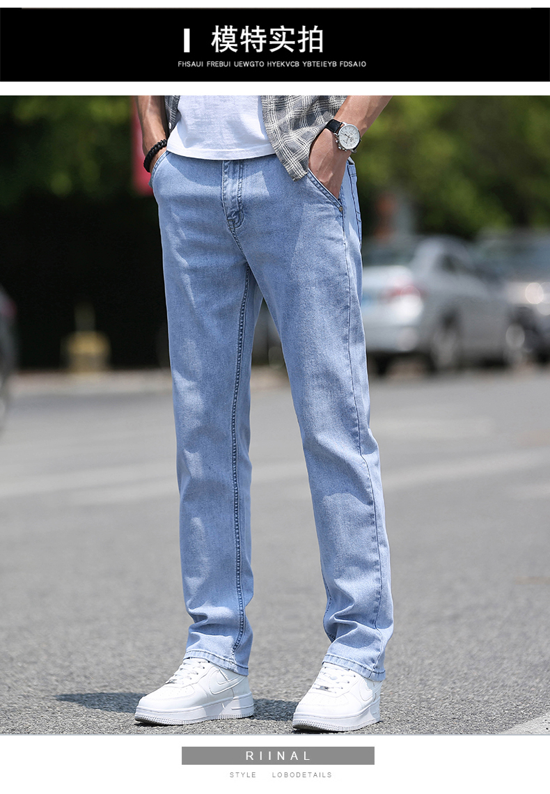 高級牛仔褲男夏季薄款2025新款寬松直筒水洗長褲潮流男士褲子淺色