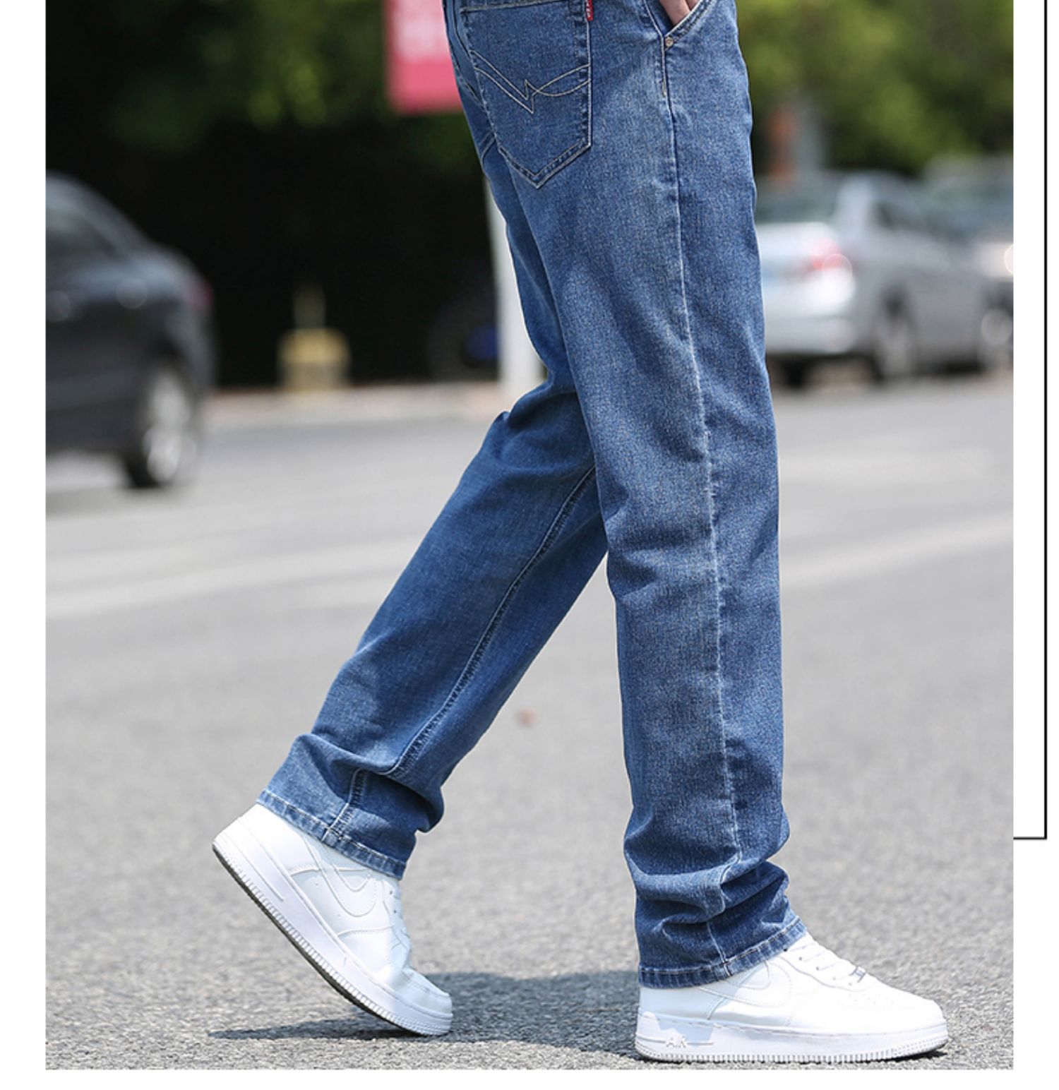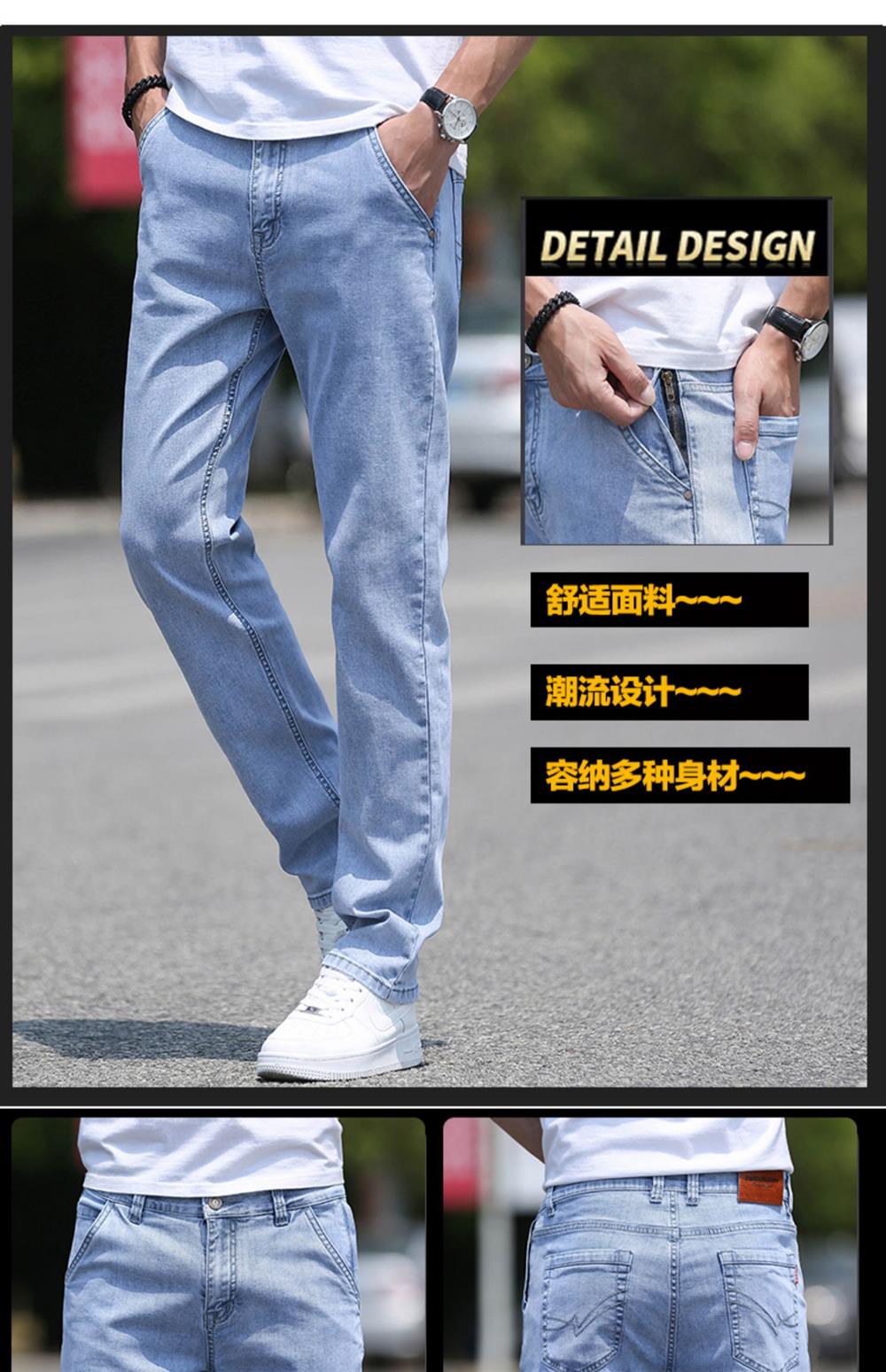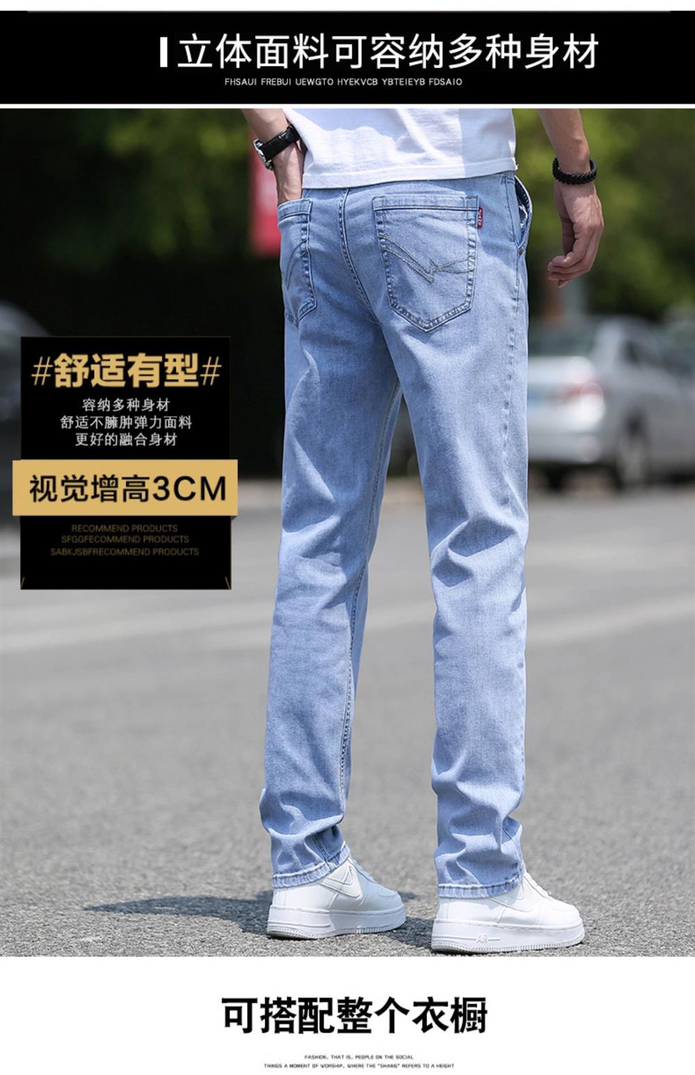 高級牛仔褲男夏季薄款2025新款寬松直筒水洗長褲潮流男士褲子淺色