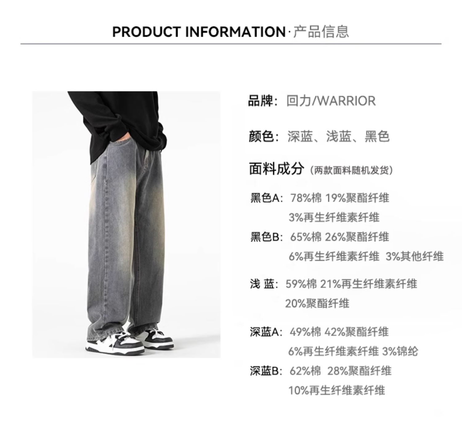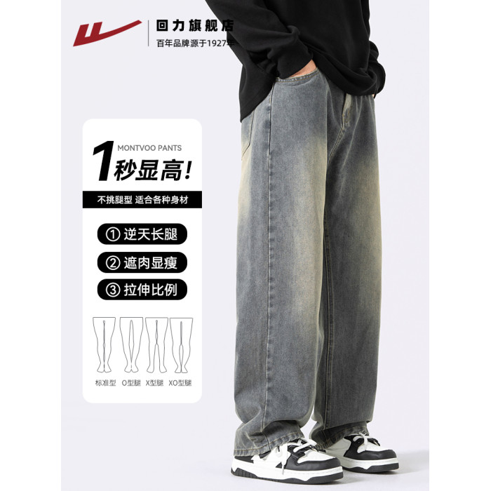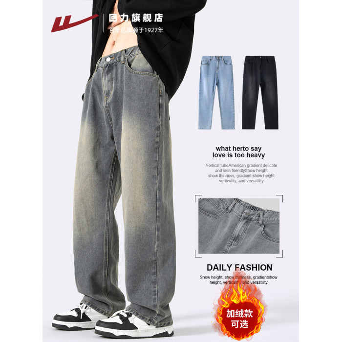 迴力牛仔褲男款2025秋冬新款美式復古寬松直筒褲休閒加絨長褲子男