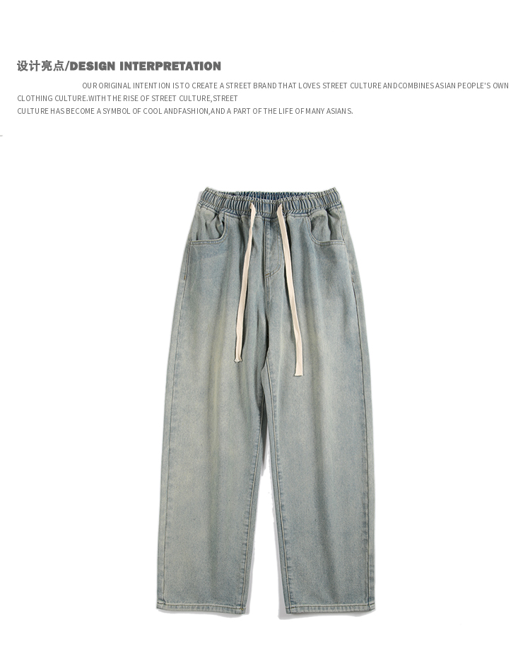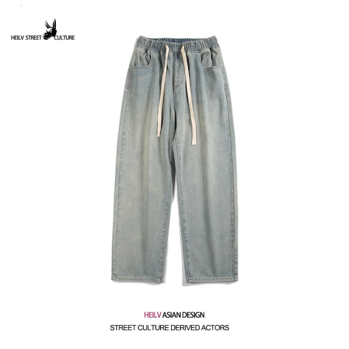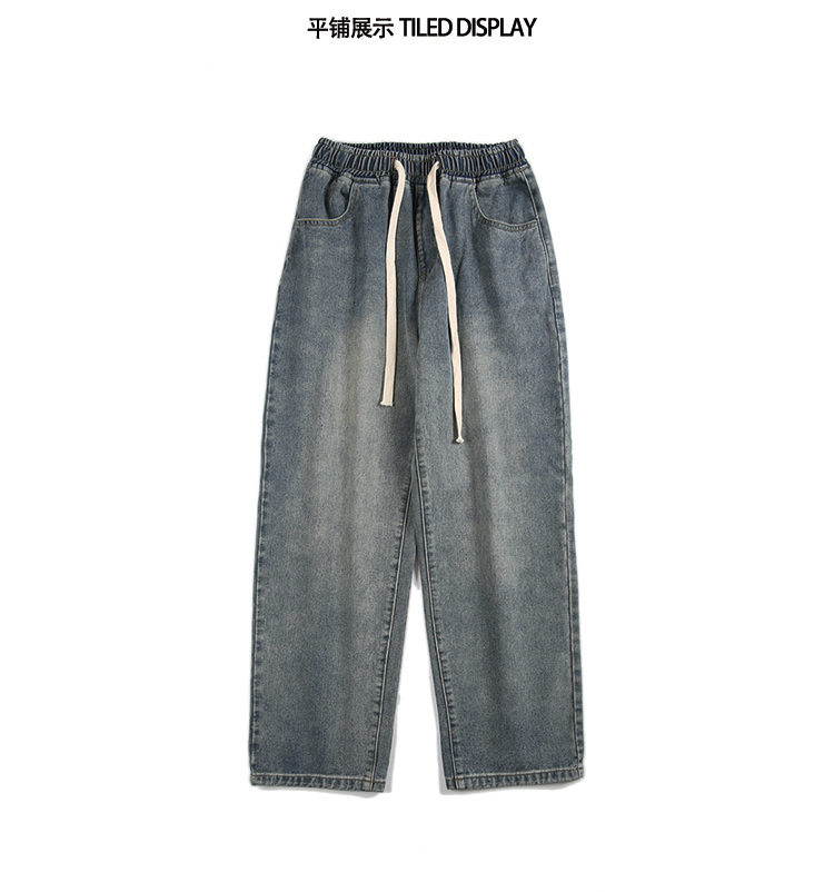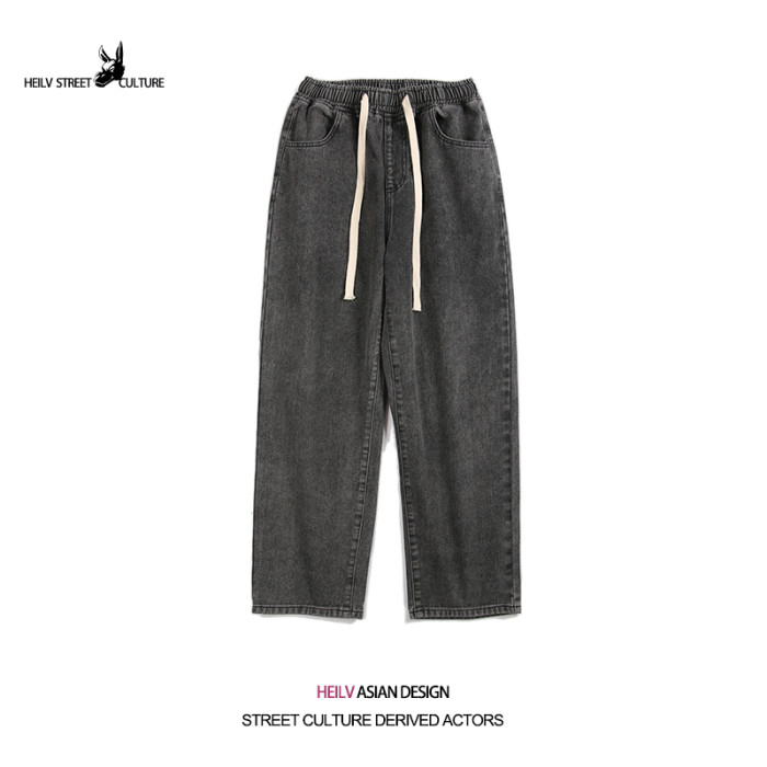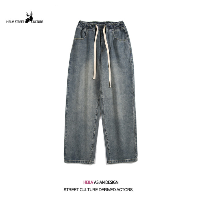 黑驢街頭日系復古水洗做舊牛仔褲男秋季潮牌寬松濶腿休閒直筒長褲