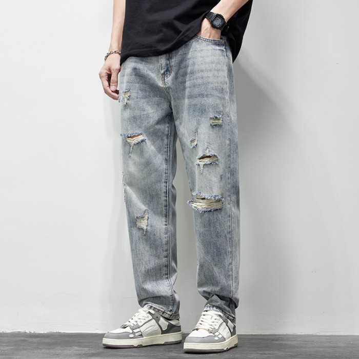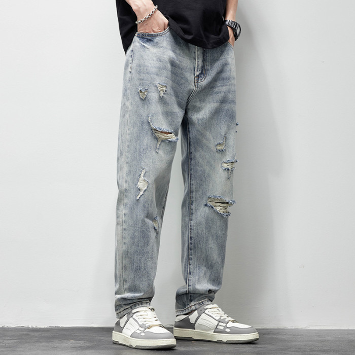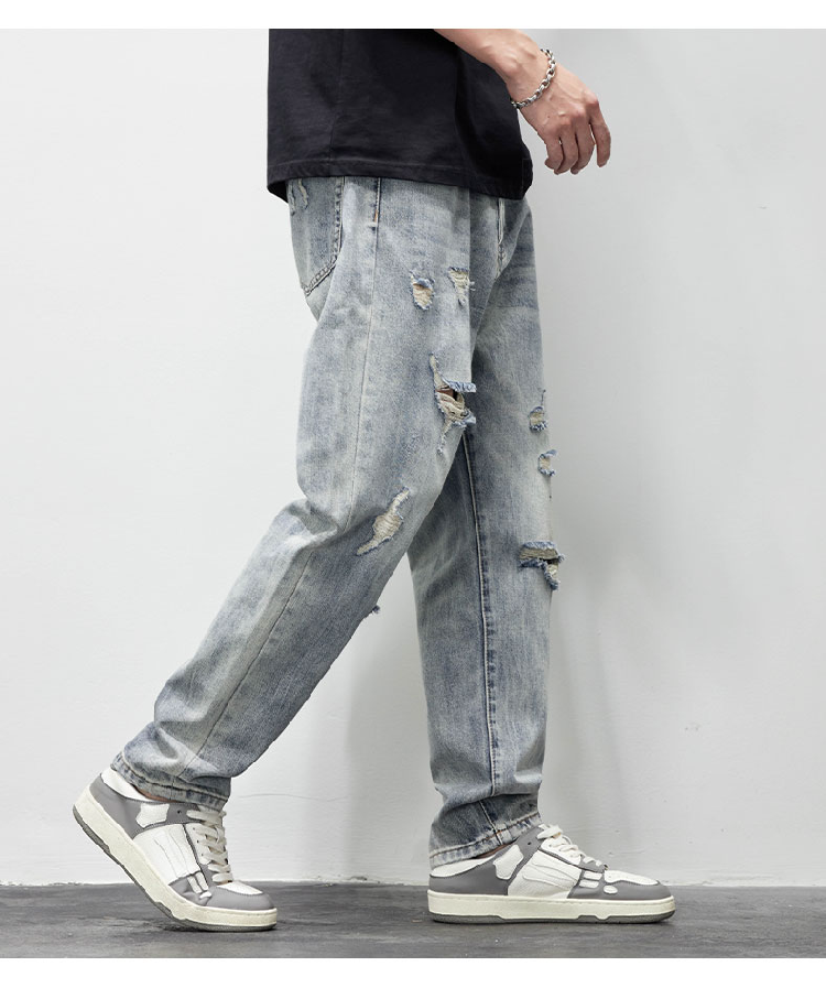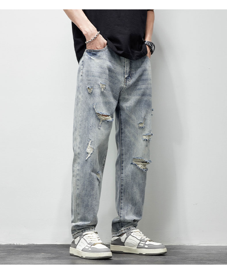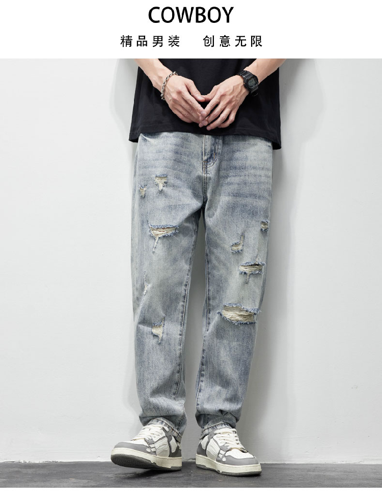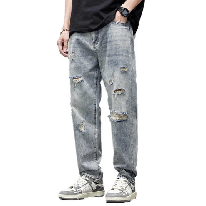 破洞牛仔褲男2025新款春夏季水洗褲子男寬松直筒休閒百搭乞丐長褲