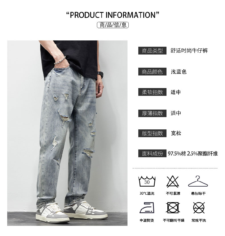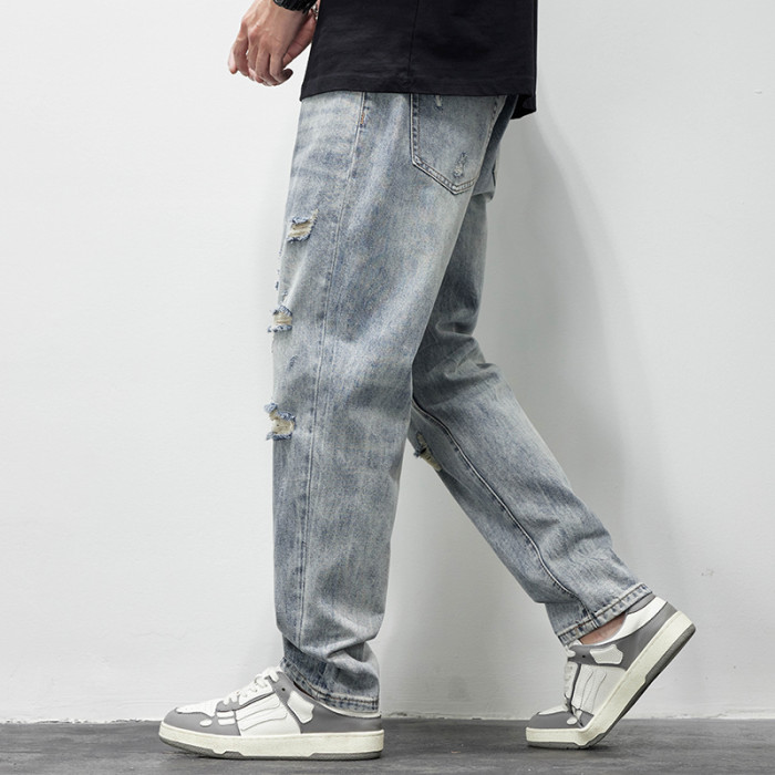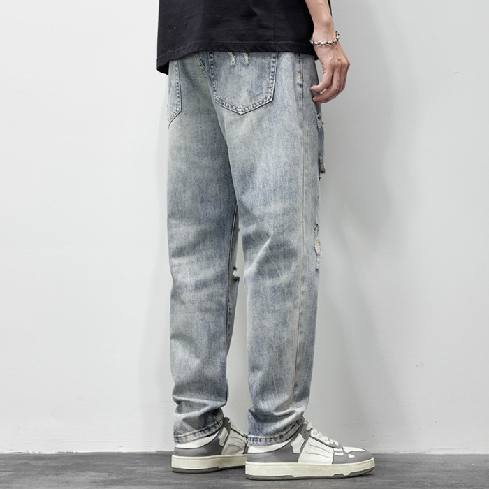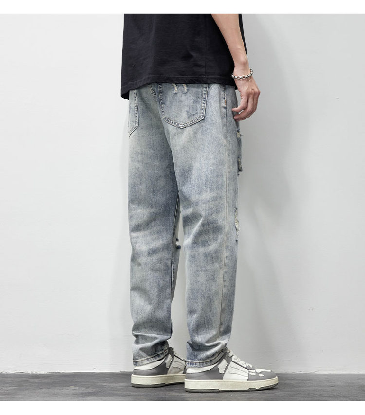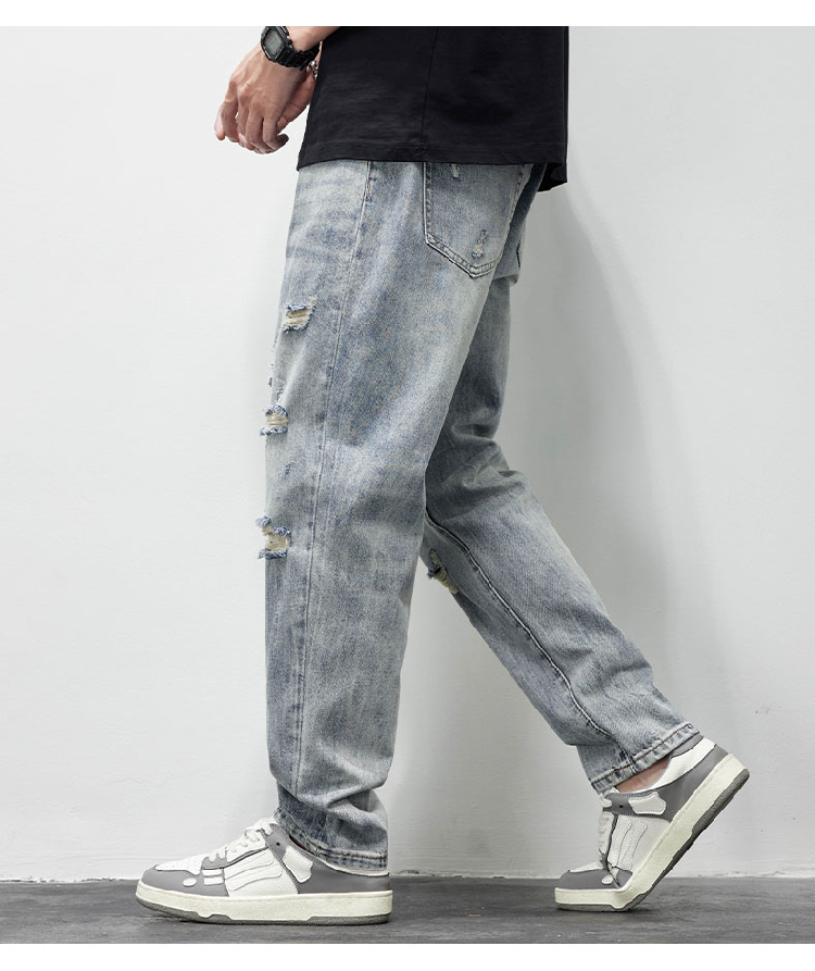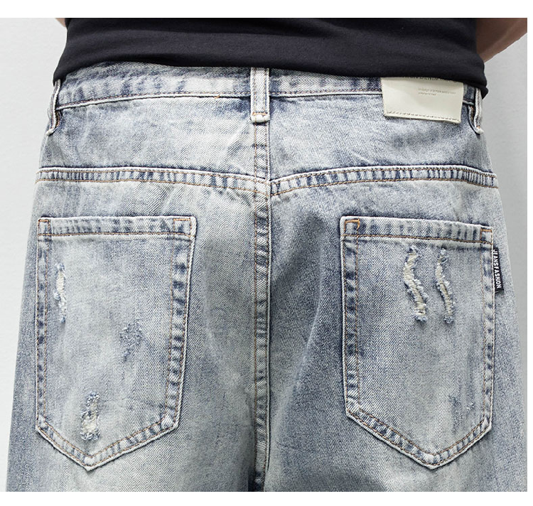 破洞牛仔褲男2025新款春夏季水洗褲子男寬松直筒休閒百搭乞丐長褲