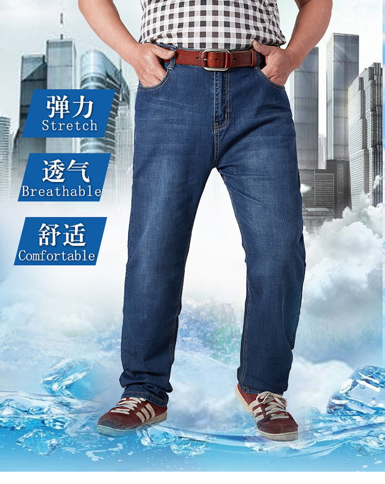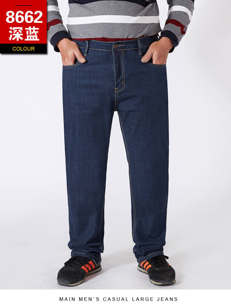 秋季男士高彈力胖人特大號加肥加大碼休閒直筒寬鬆高腰肥佬牛仔褲