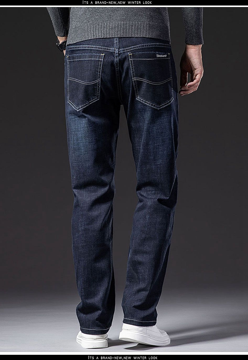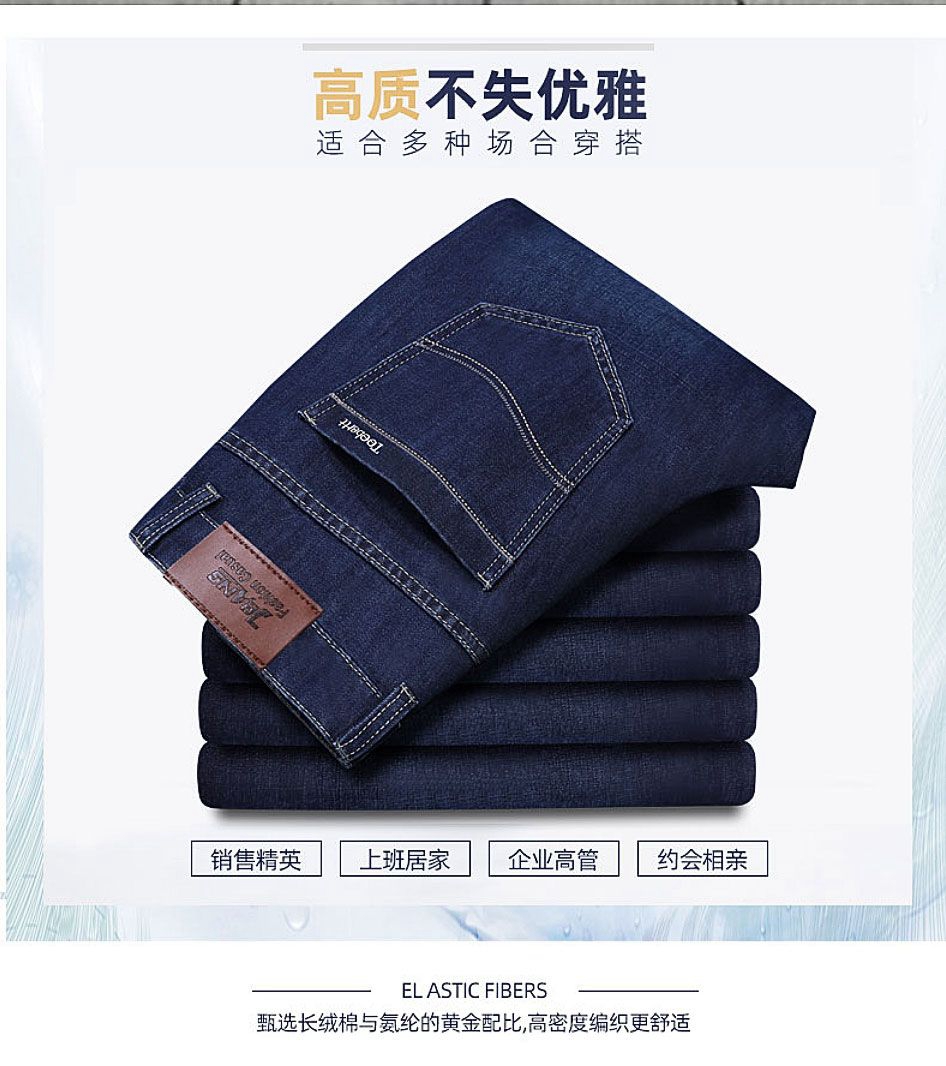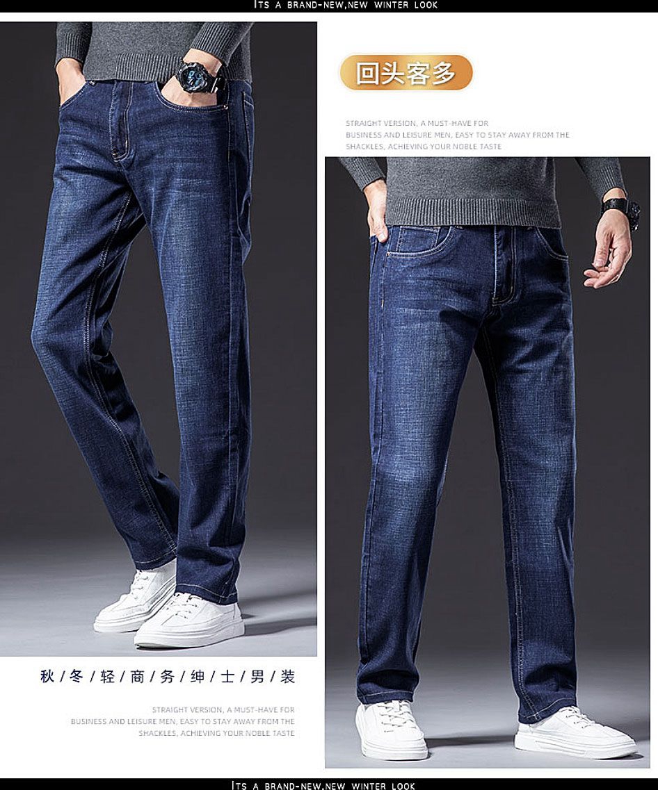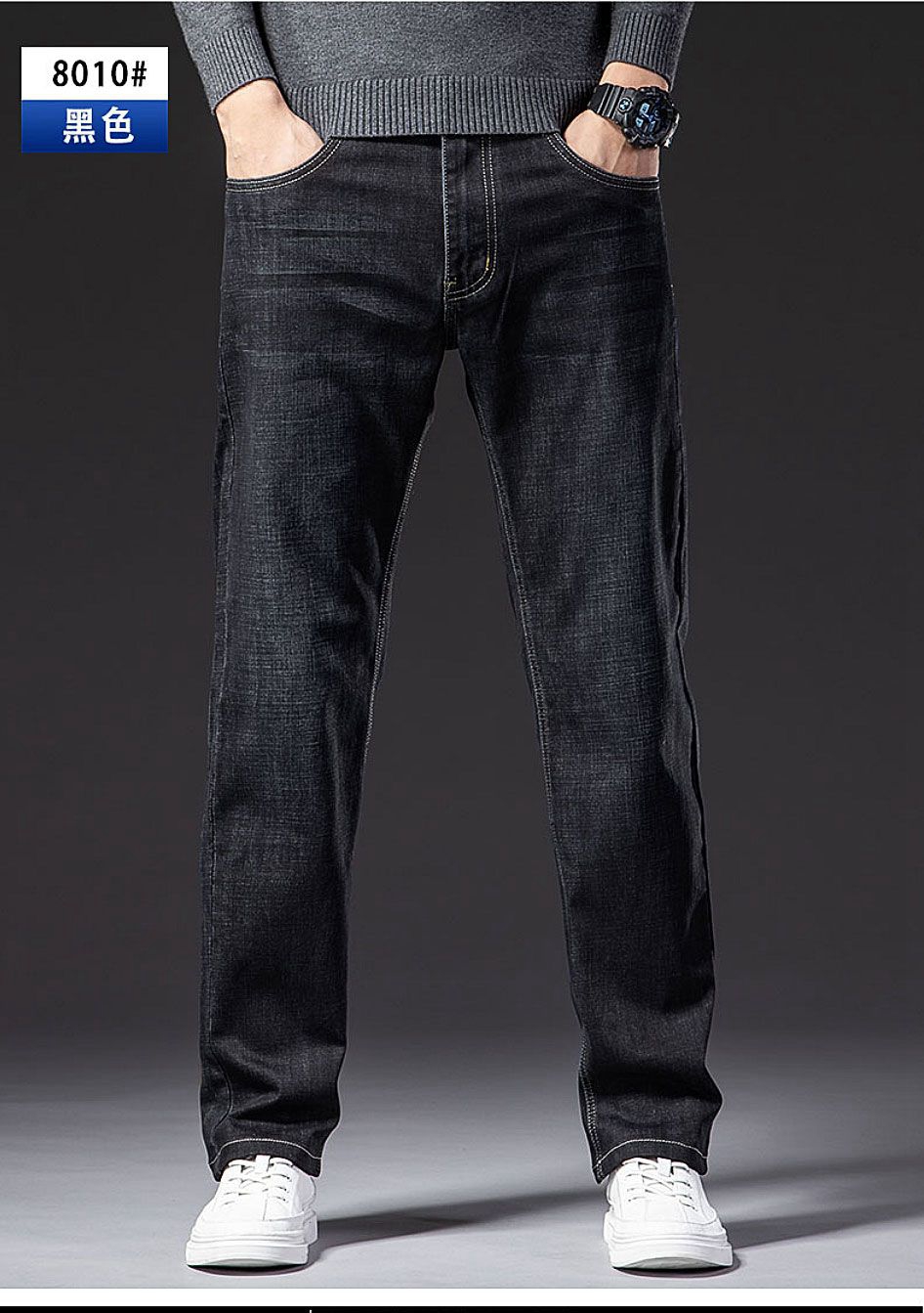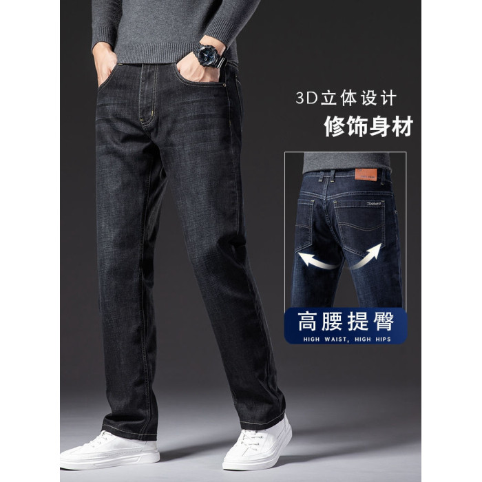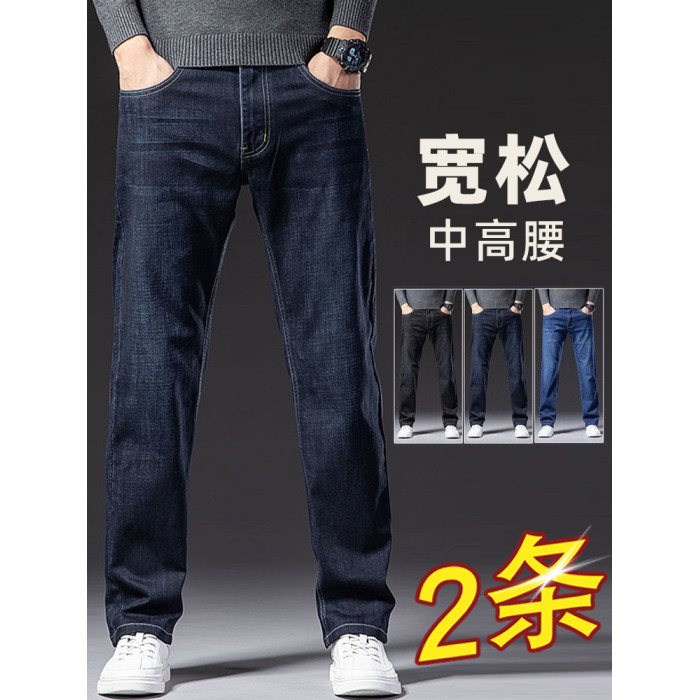 牛仔褲男寬松直筒秋冬厚款彈力中老年男士春秋休閒冬季加絨長褲子