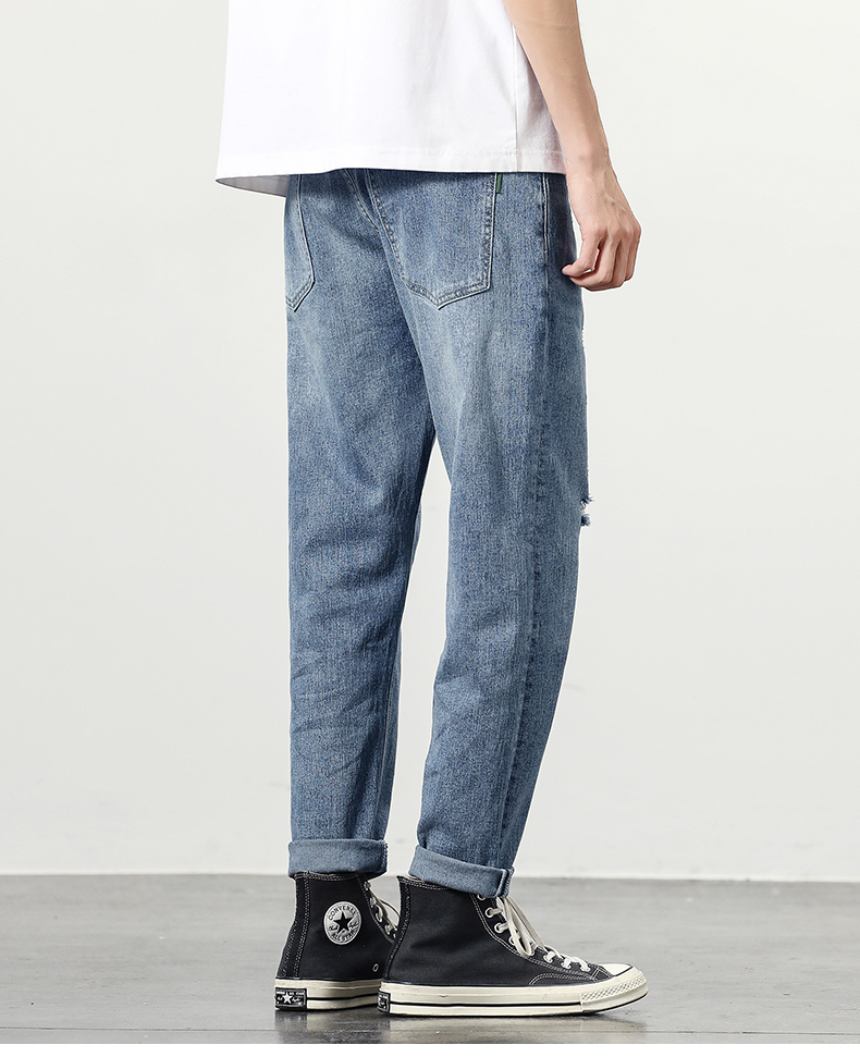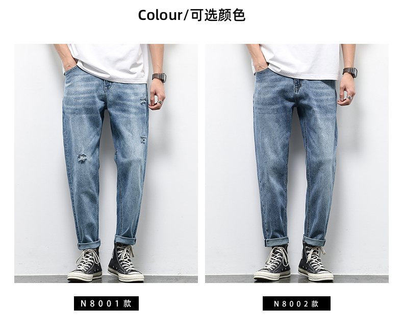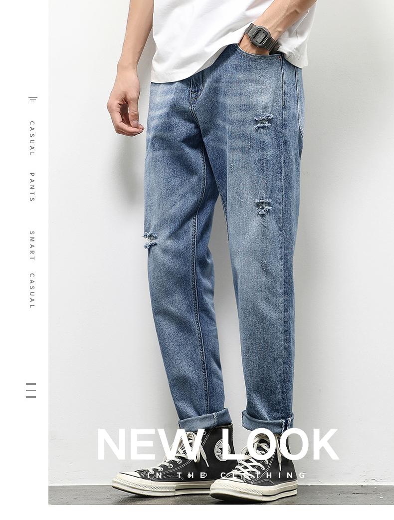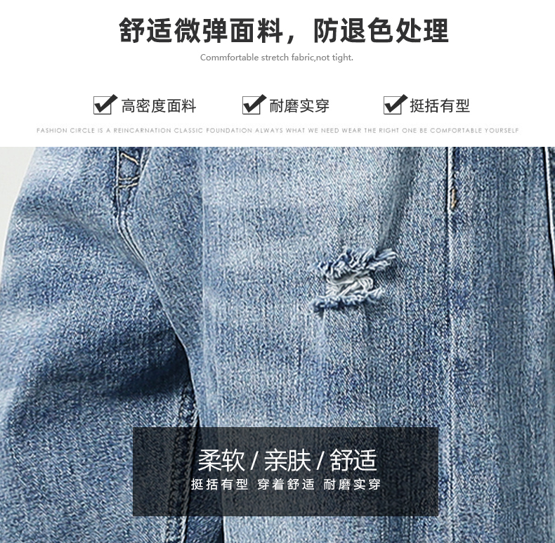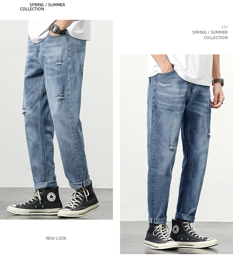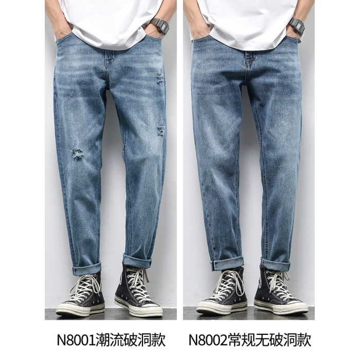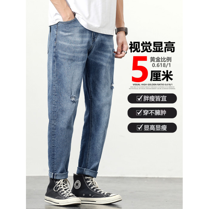 夏季薄款水洗淺色牛仔褲男寬松直筒破洞潮牌九分錐形長褲2025新款