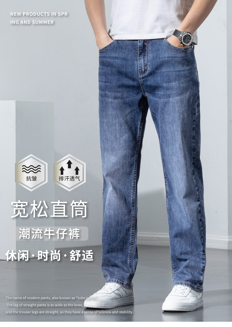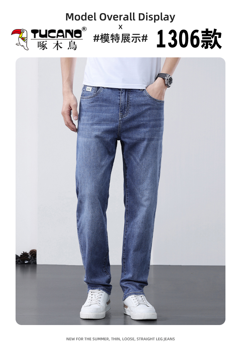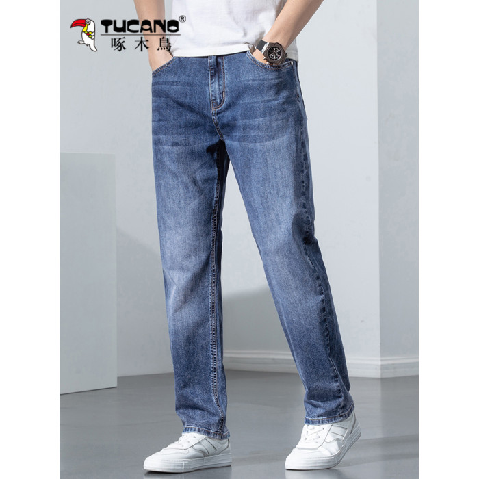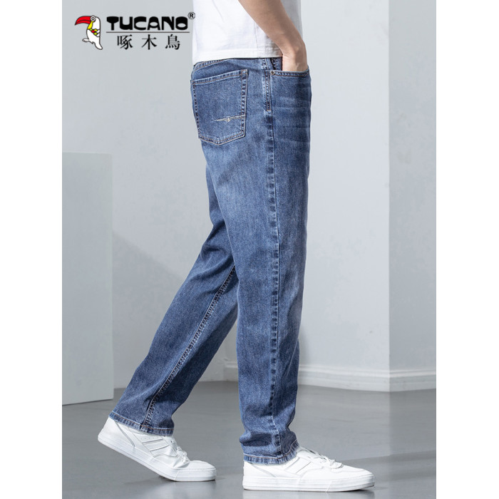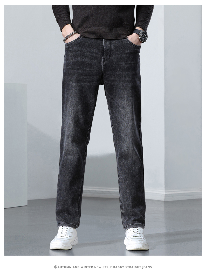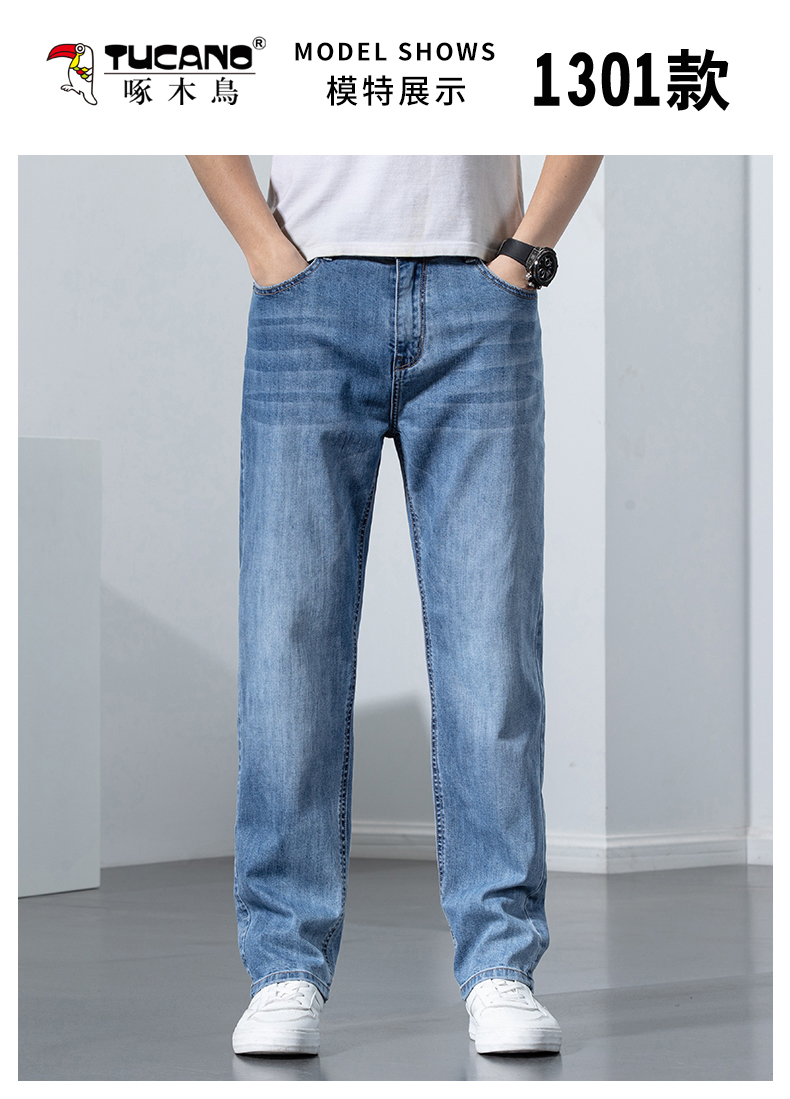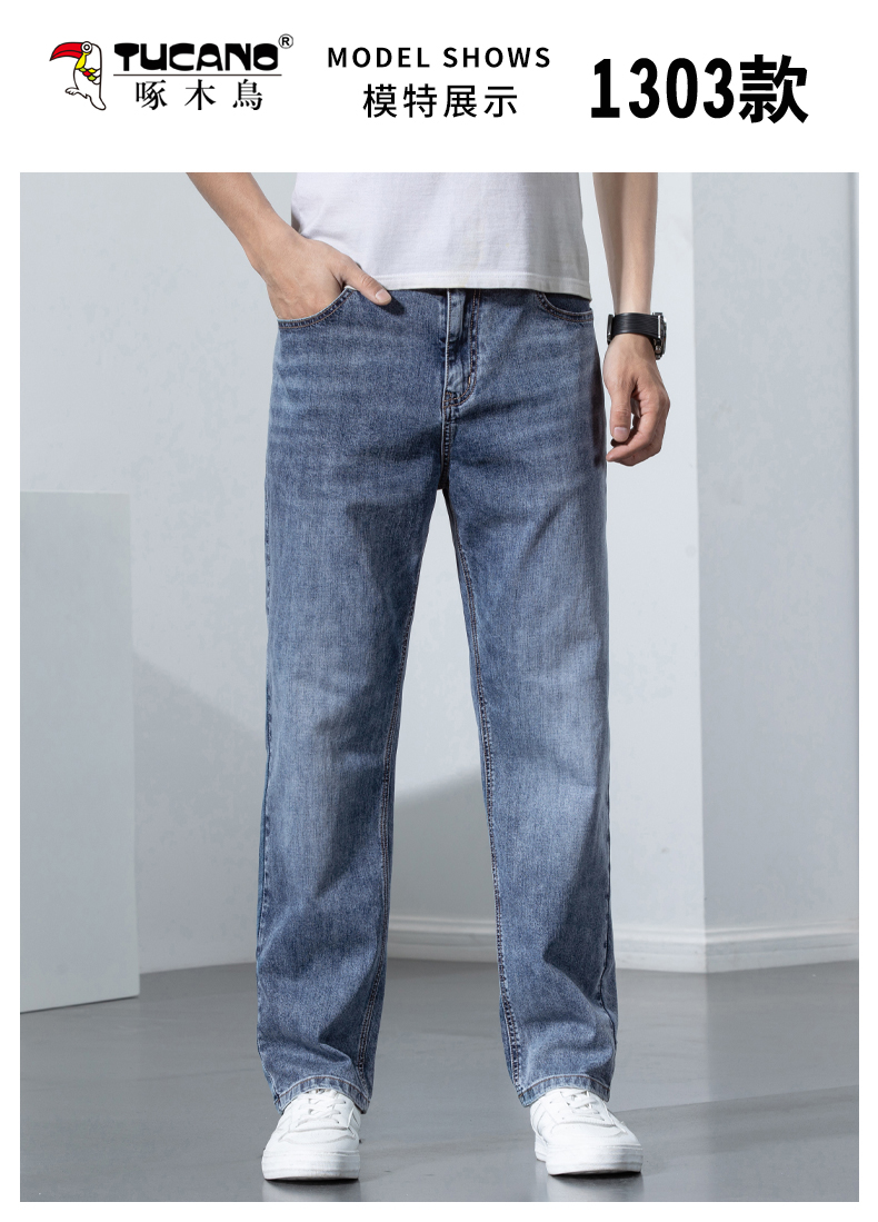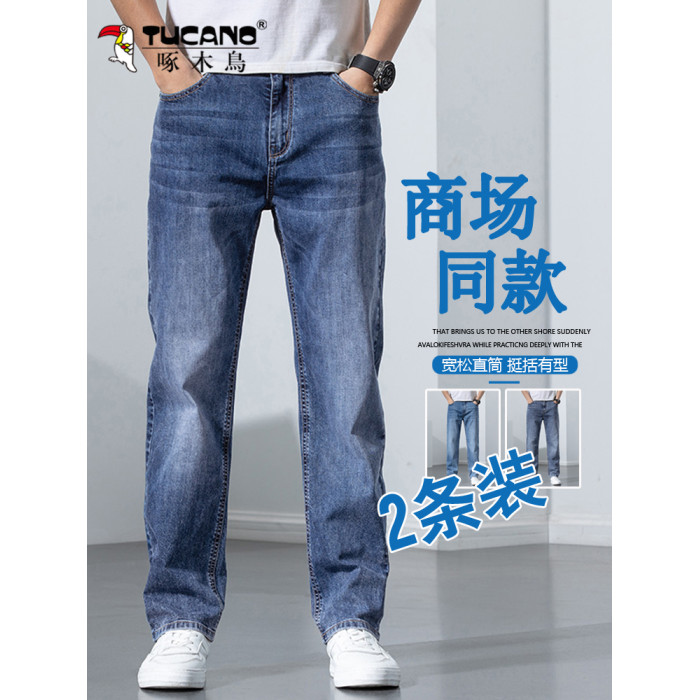 2025新款秋冬季啄木鳥牛仔褲男士寬松直筒商務休閒百搭長褲子男