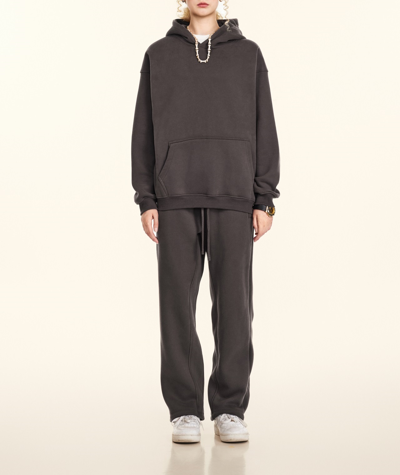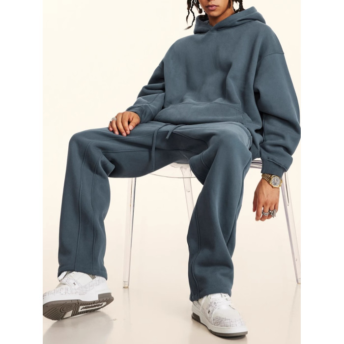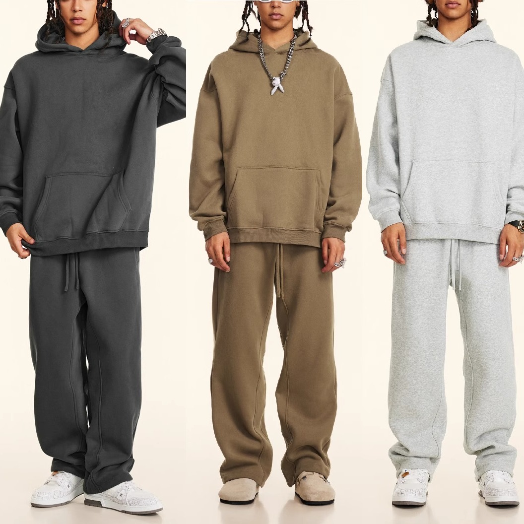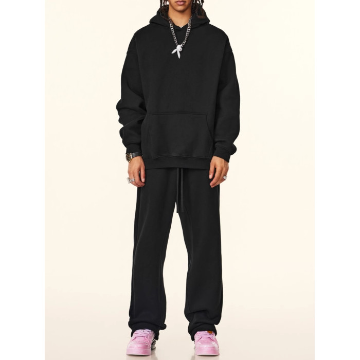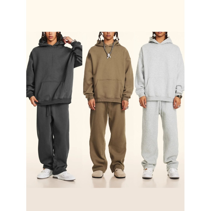 秋冬FOG純色美式加絨加厚連帽衛衣套裝寬松休閒運動直筒衛褲情侶
