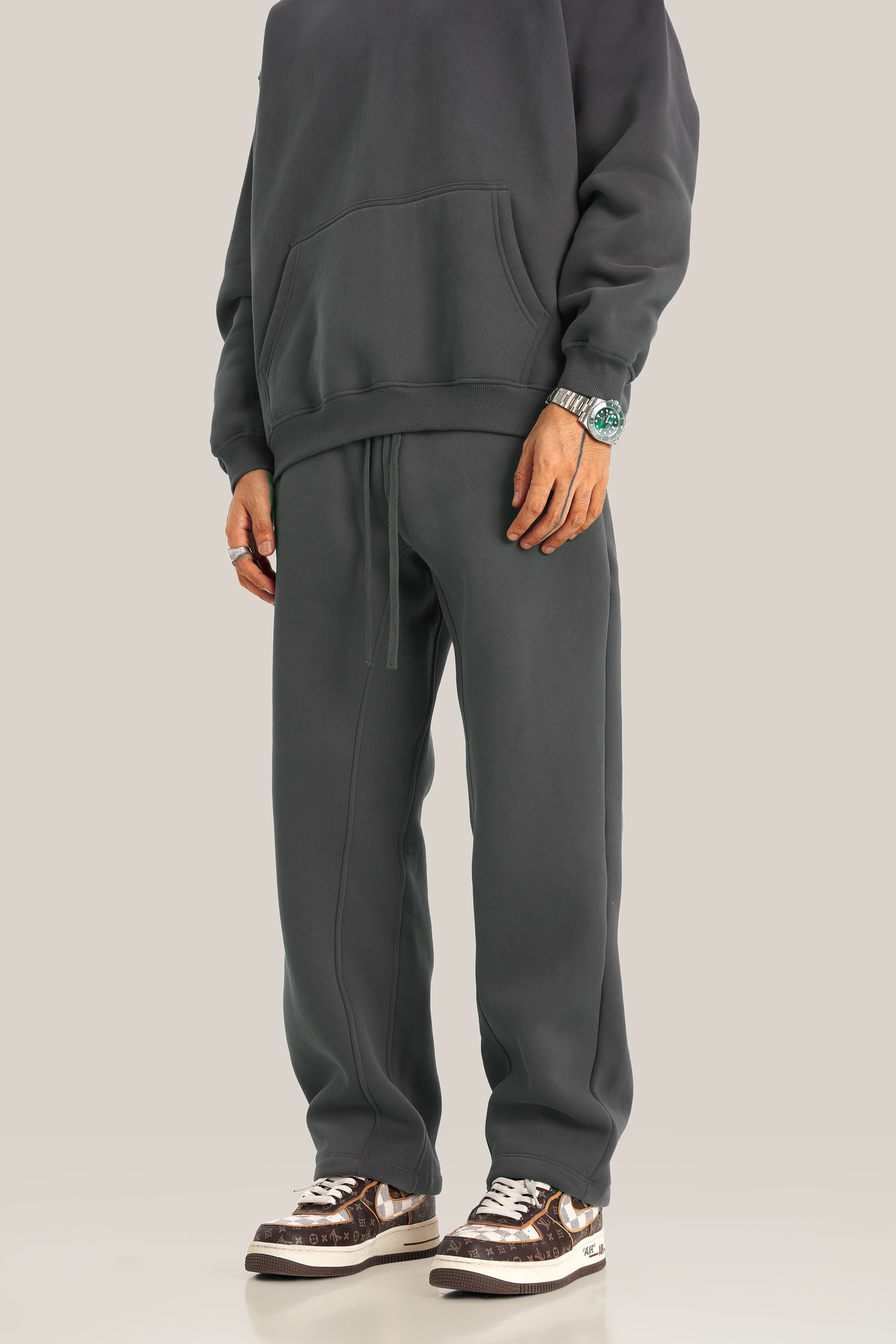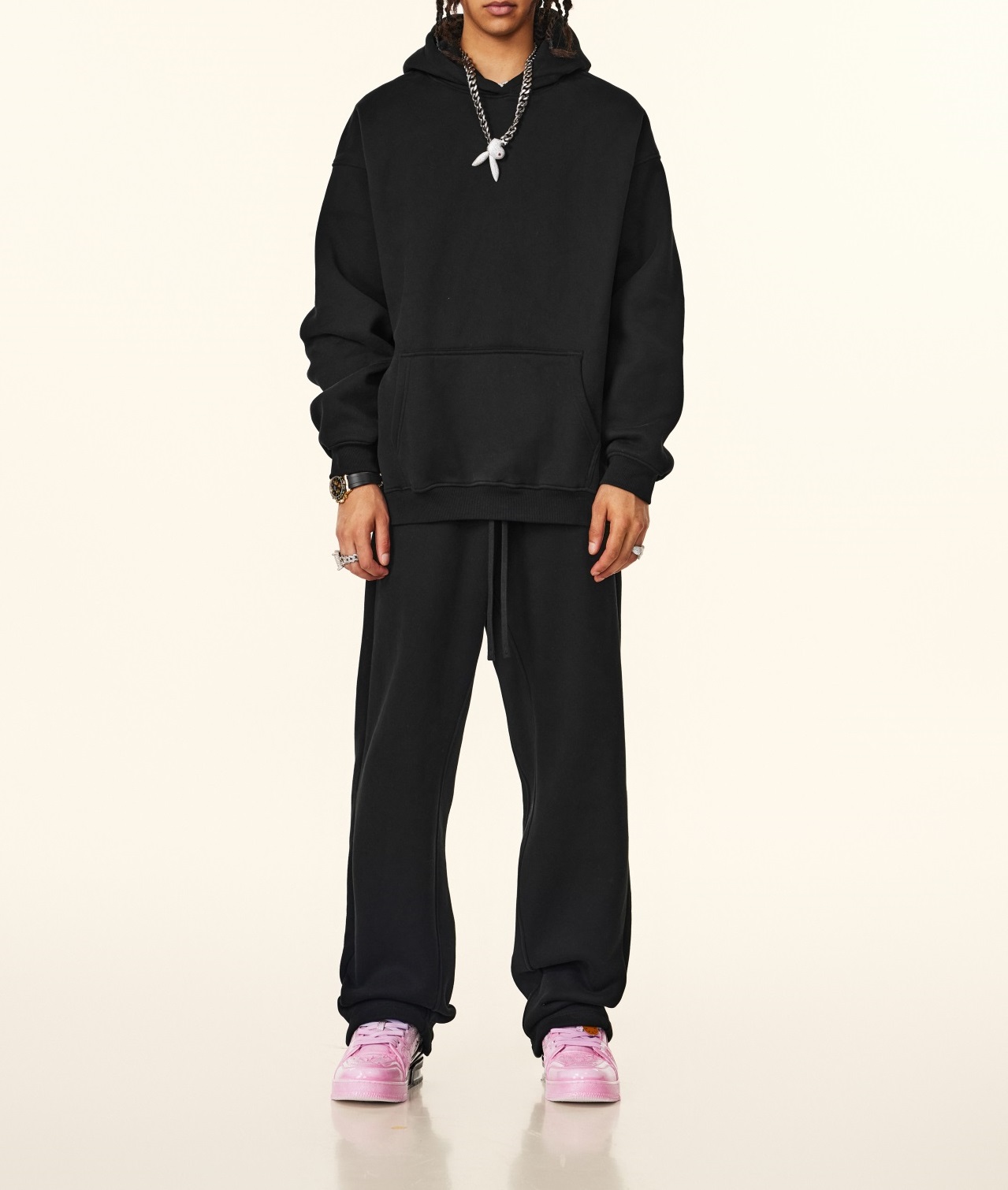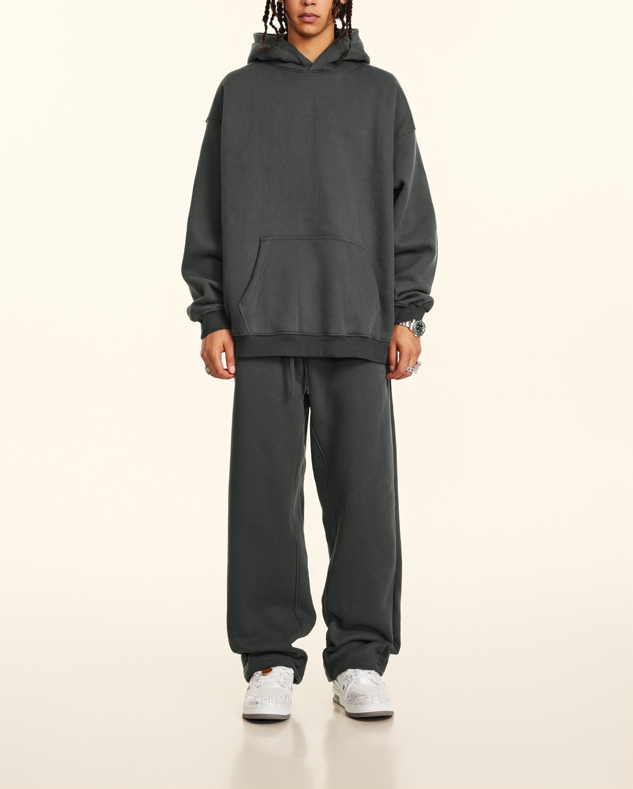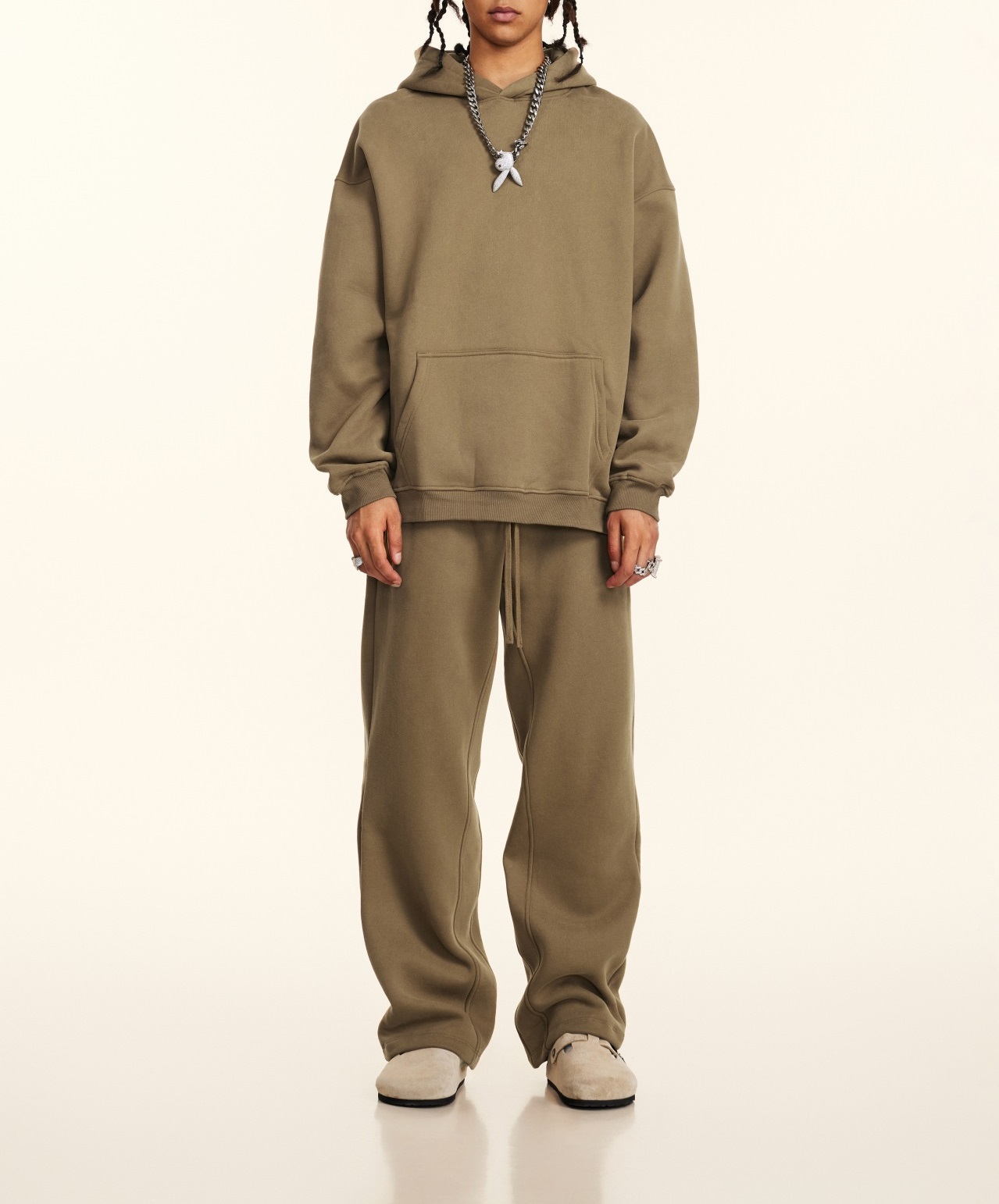 秋冬FOG純色美式加絨加厚連帽衛衣套裝寬松休閒運動直筒衛褲情侶