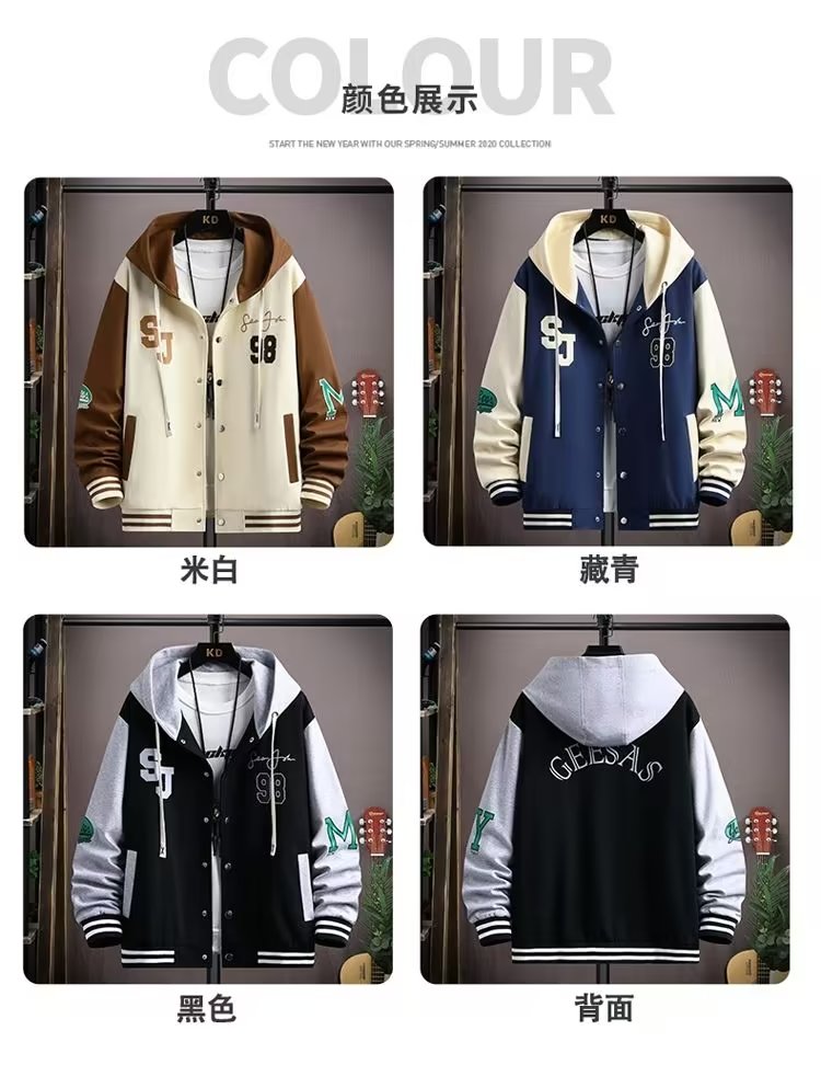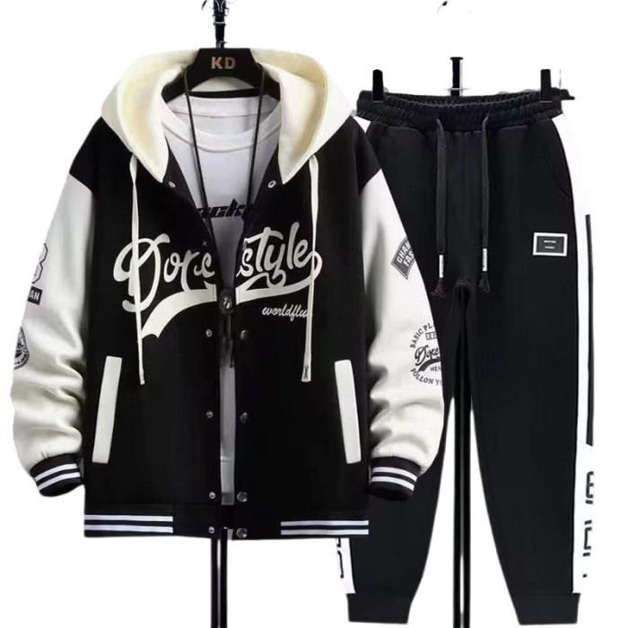 衛衣開衫外套男大碼套裝青少年春秋款運動初中學生帥氣男裝棒球服