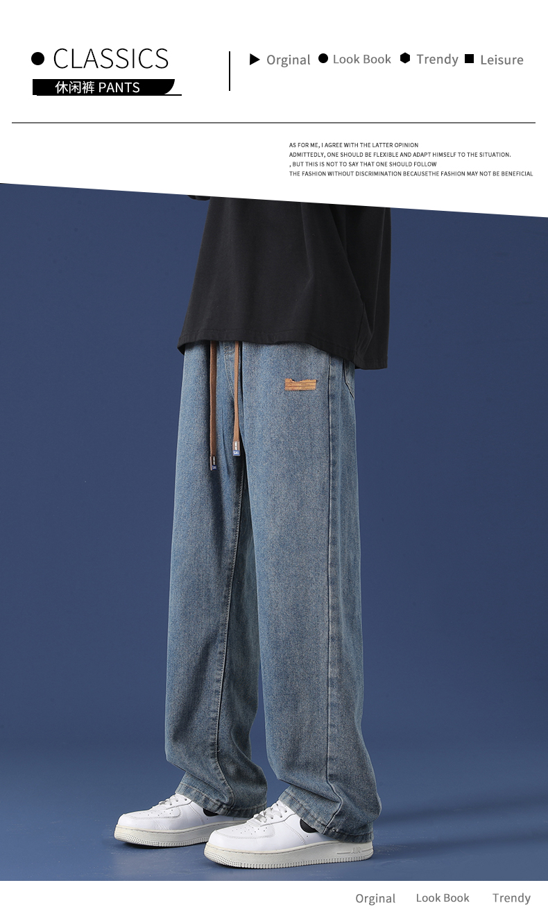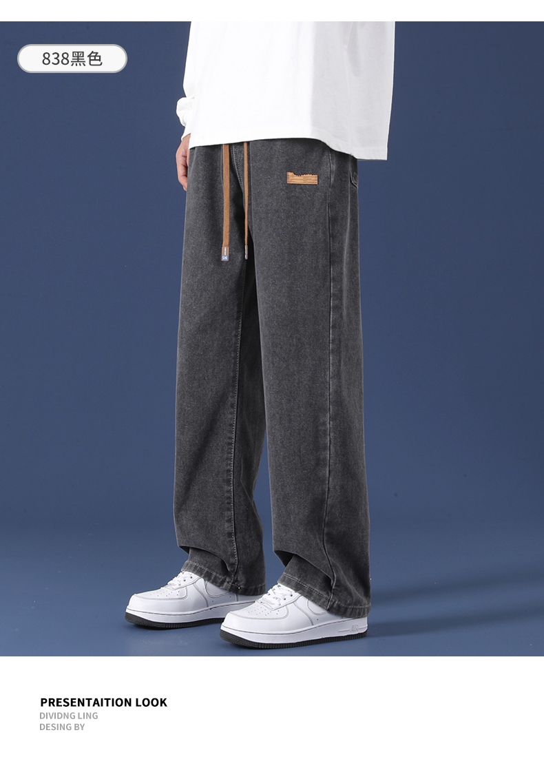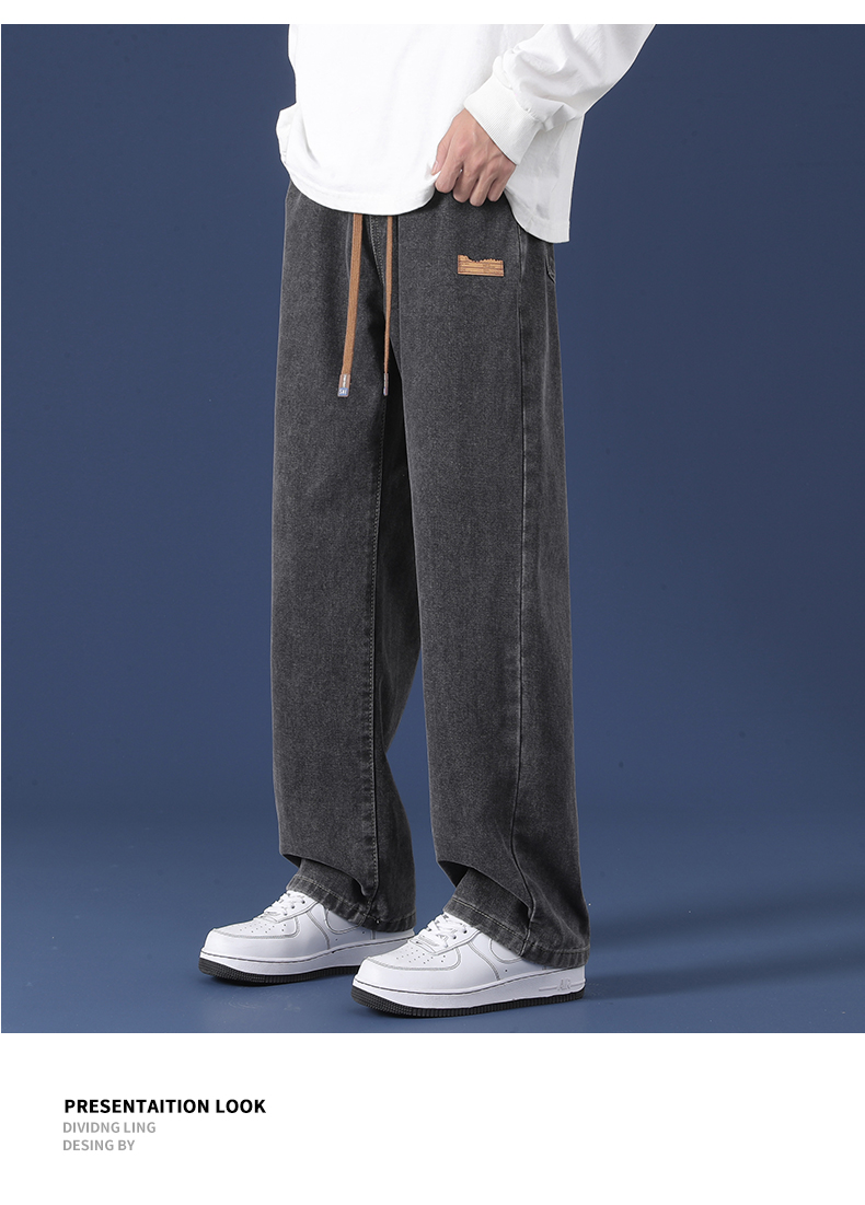 牛仔褲男冬季新款寬松直筒濶腿長褲男生2025潮牌工裝休閒褲子男款