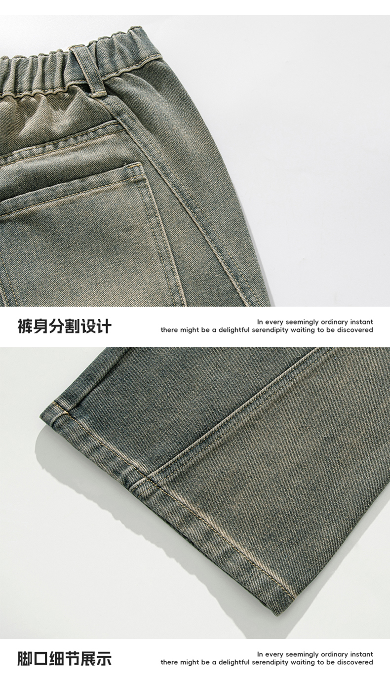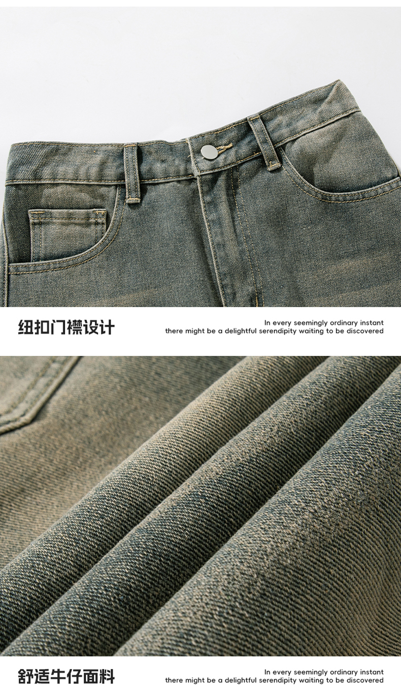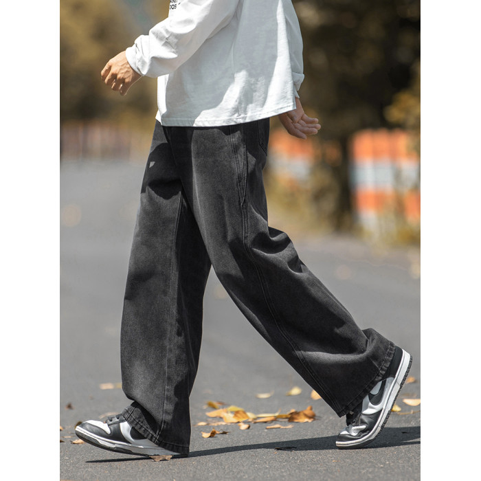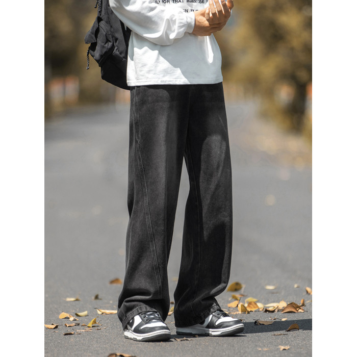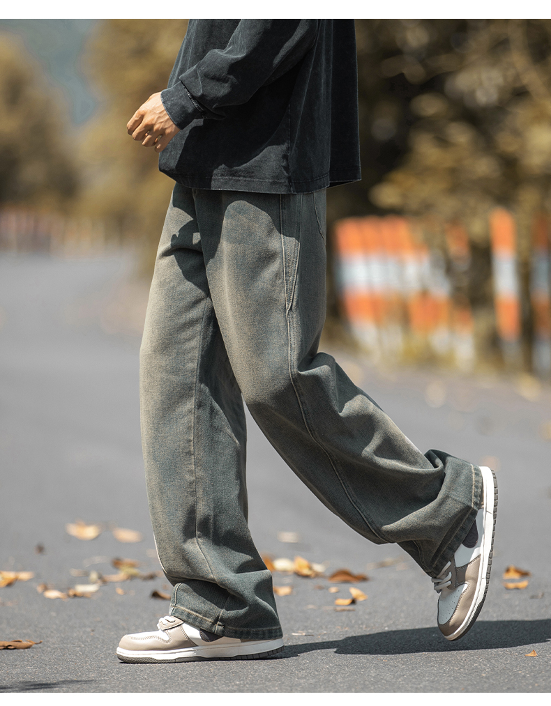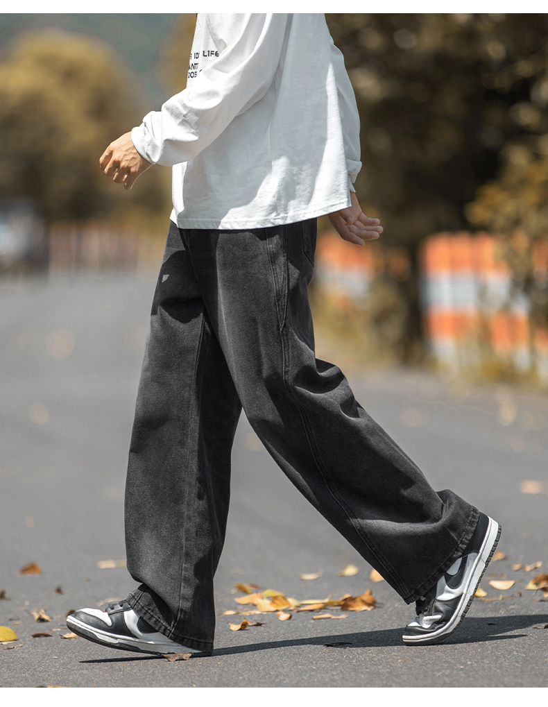 設計感復古水洗牛仔褲高街直筒寬松長褲秋季美式潮牌微濶褲子男款