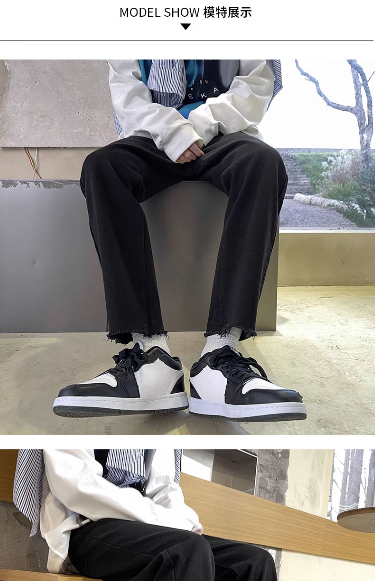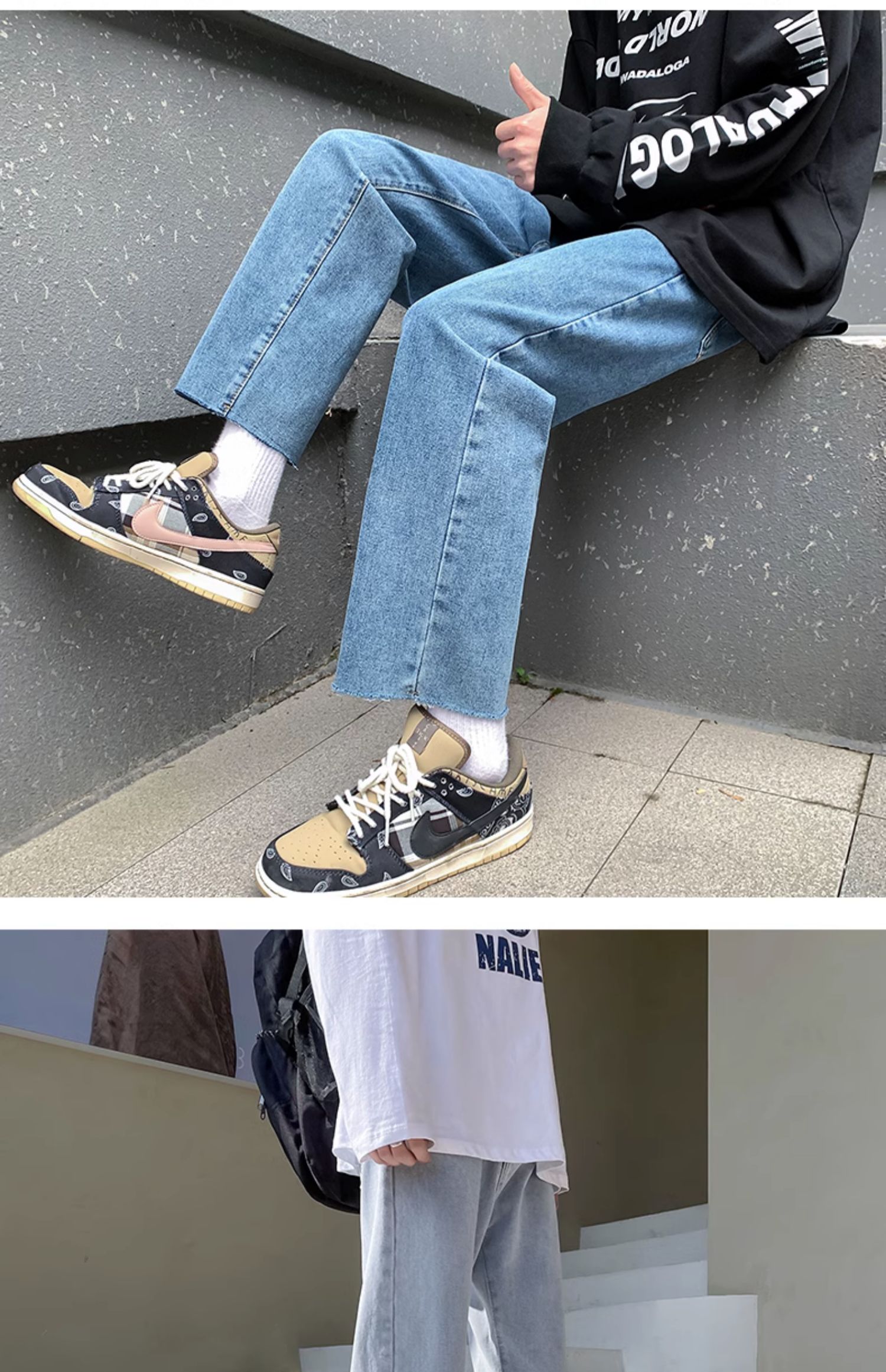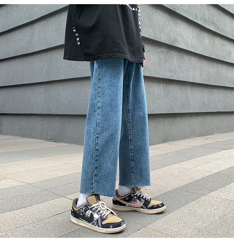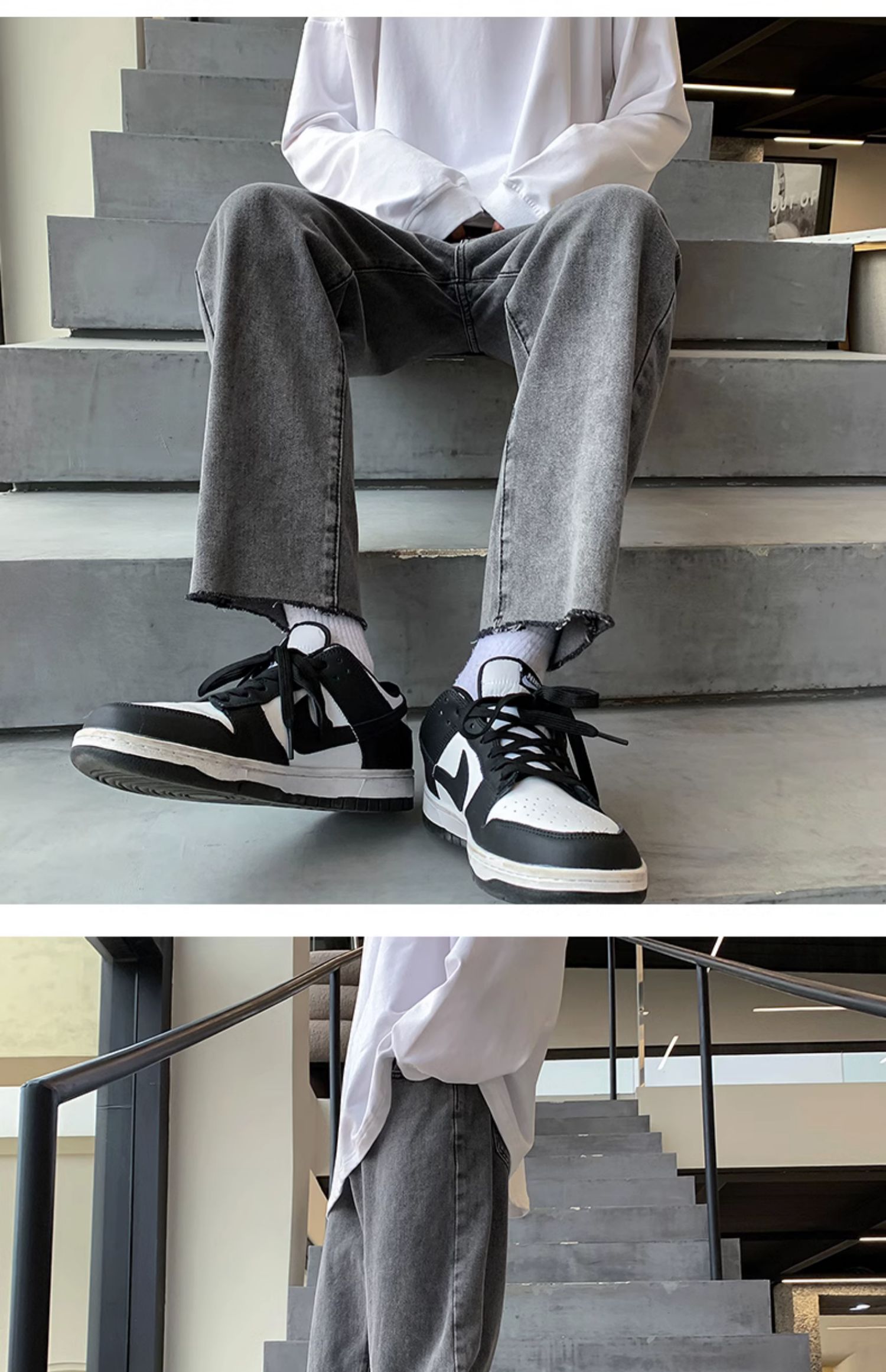 2025學生黑色牛仔褲男毛邊直筒九分褲休閒百搭修身潮牌秋季褲子男