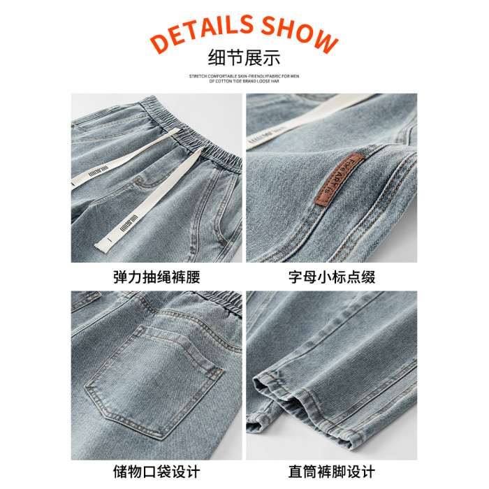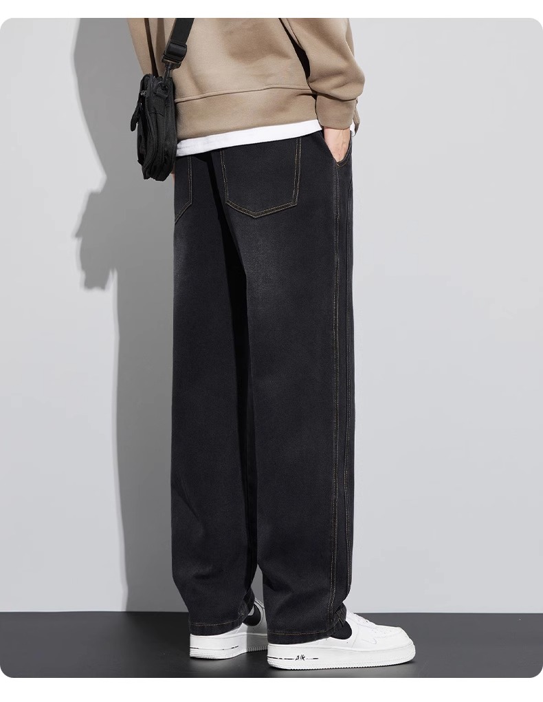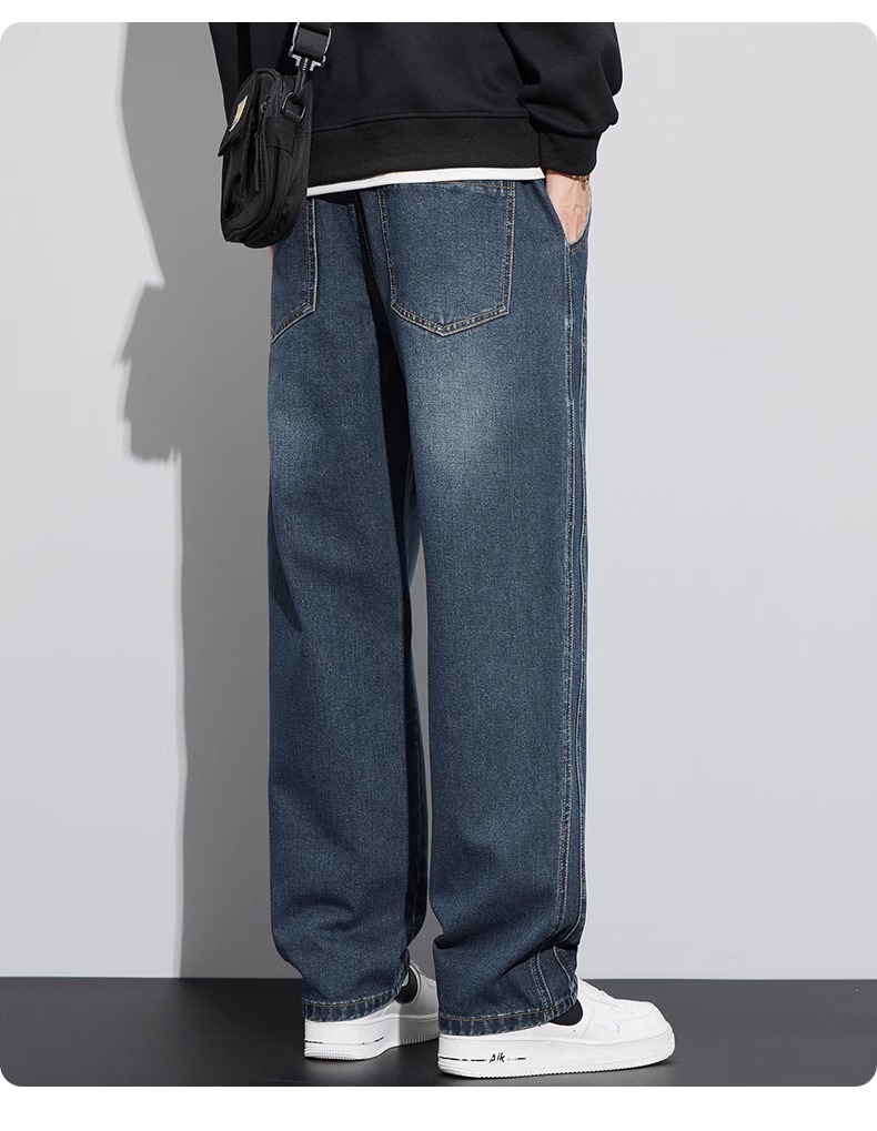 廣州新塘牛仔褲男款寬松加絨加厚松緊腰2025新款十三行直筒褲