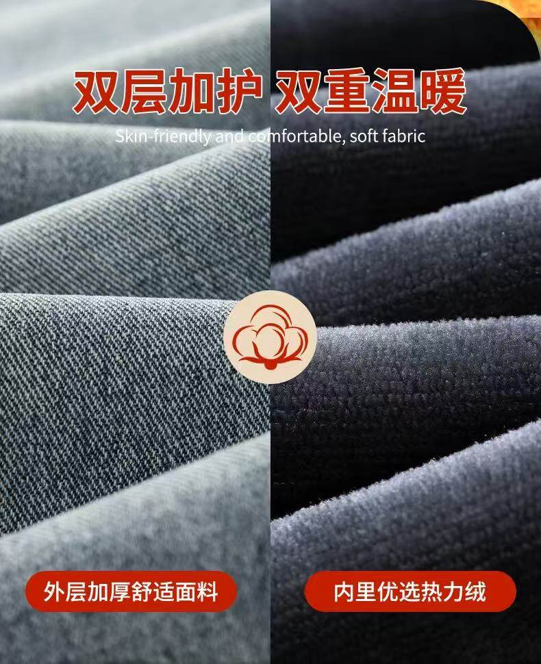 廣州新塘牛仔褲男款寬鬆加絨加厚松緊腰2025新款十三行直筒褲
