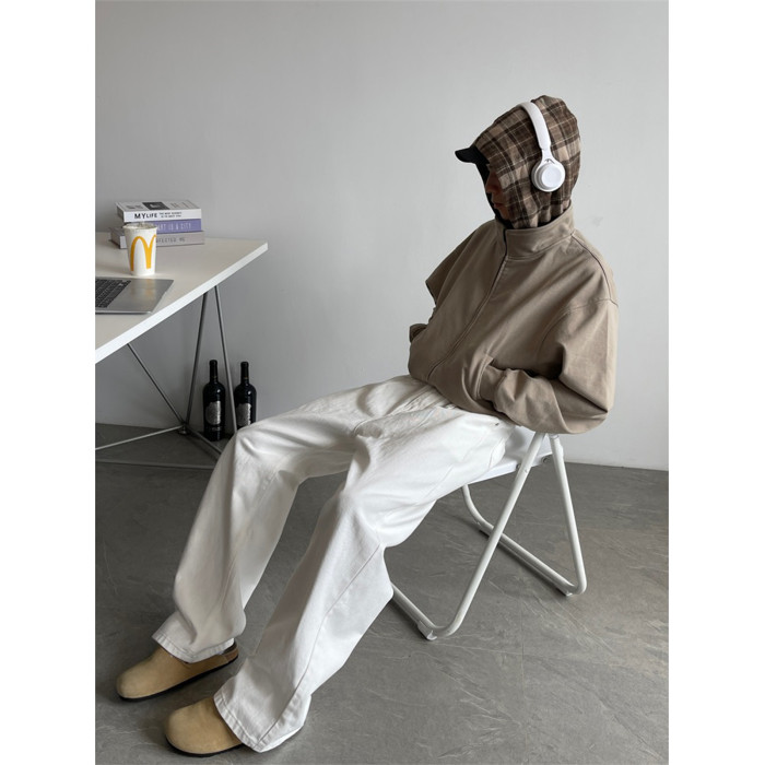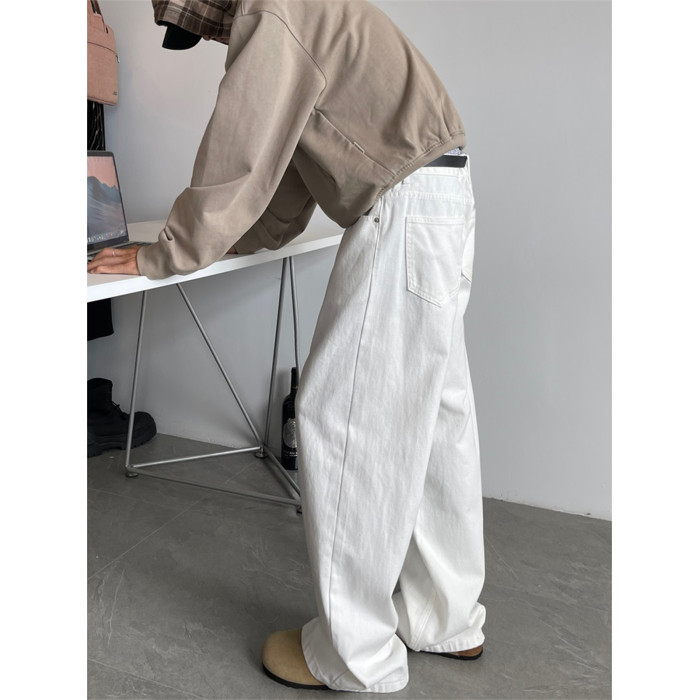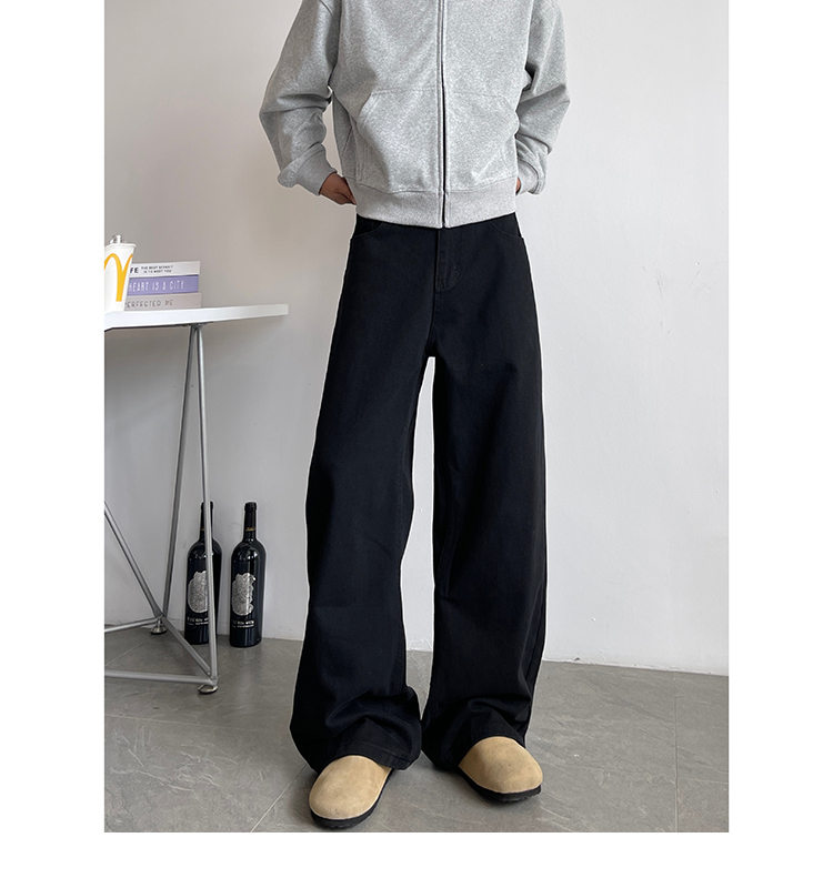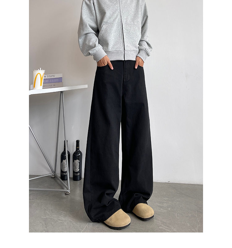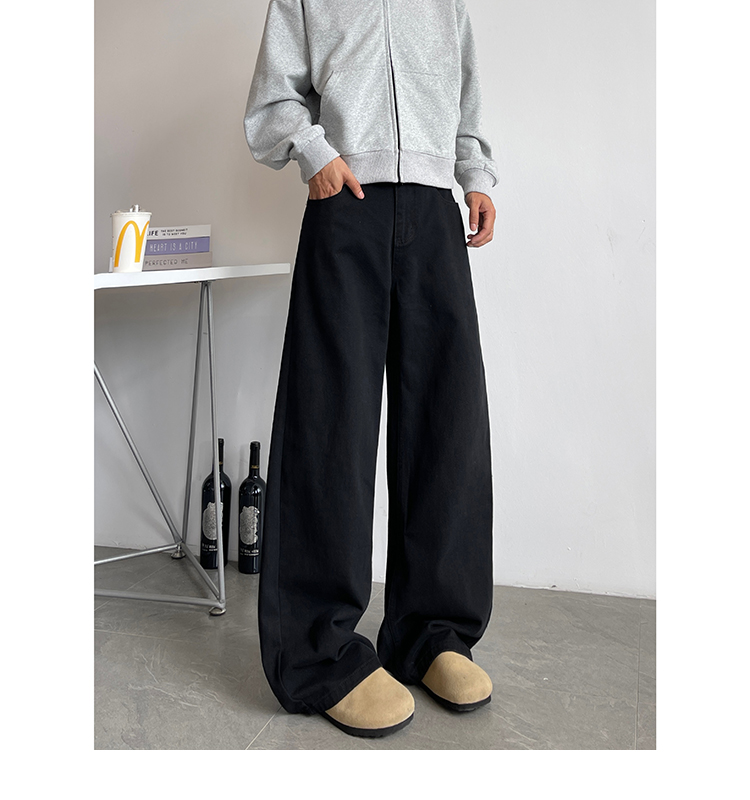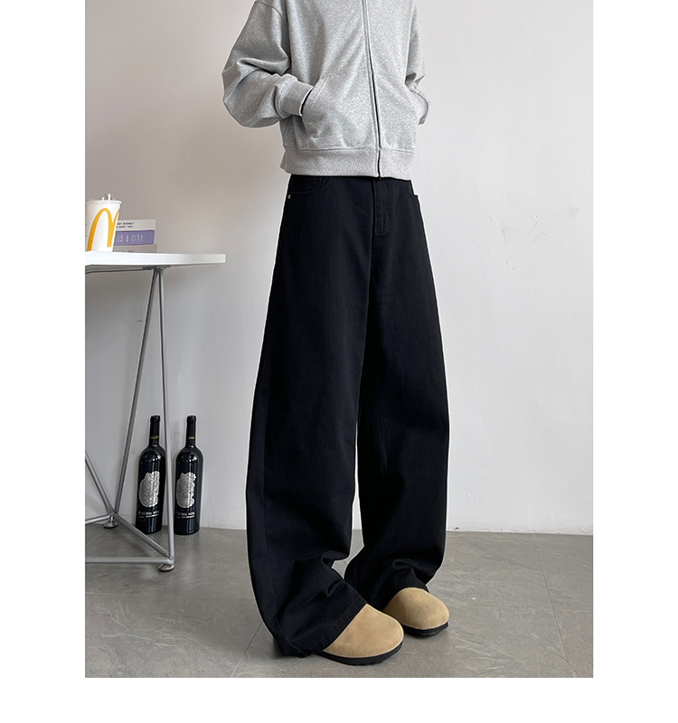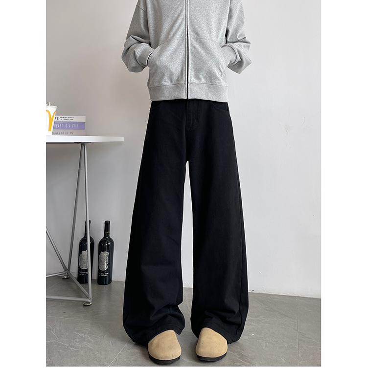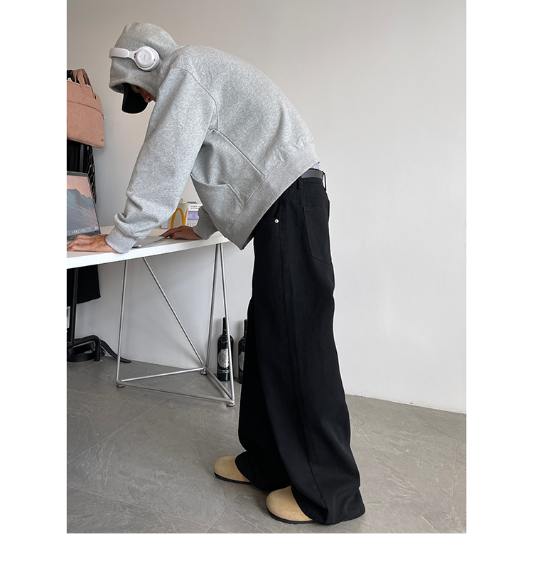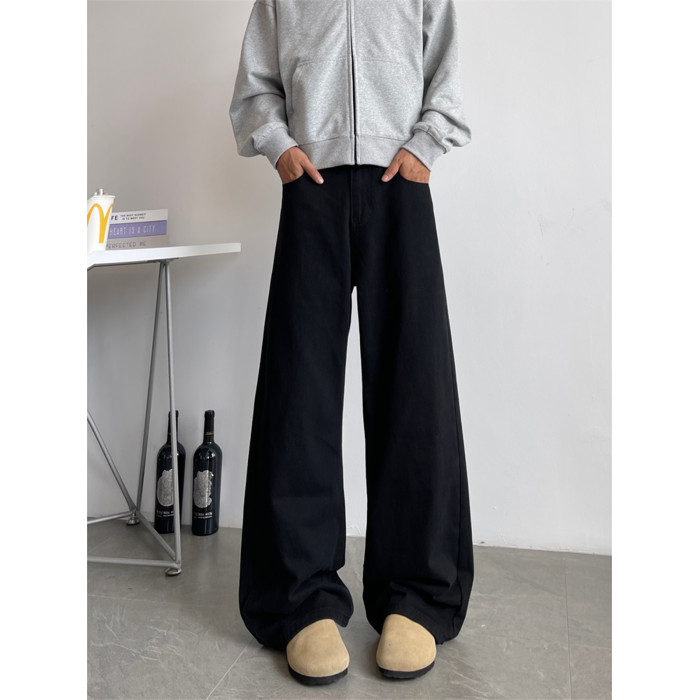 cleanfit黑色彎刀牛仔褲男潮牌新款美式寬松高級感直筒濶腿長褲子