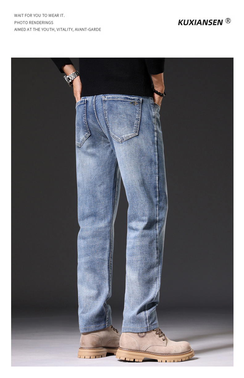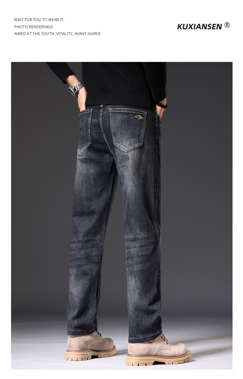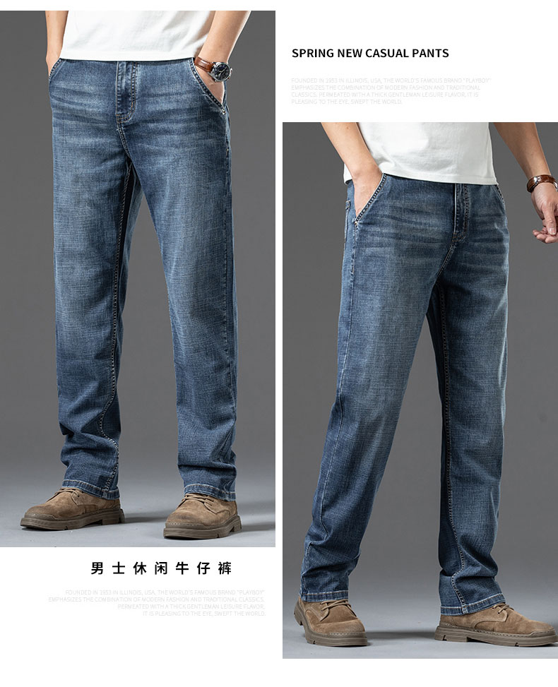 加長牛仔褲男士大碼高個子寬松直筒彈力胖子加肥加大195春秋季